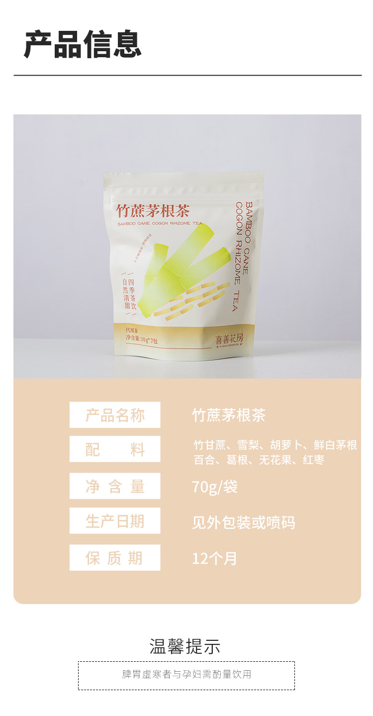 喜善花房竹蔗茅根茶3袋