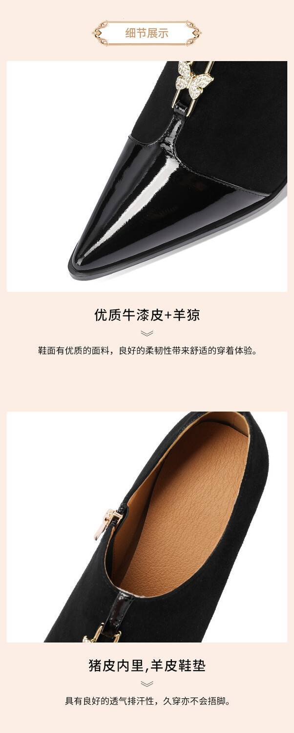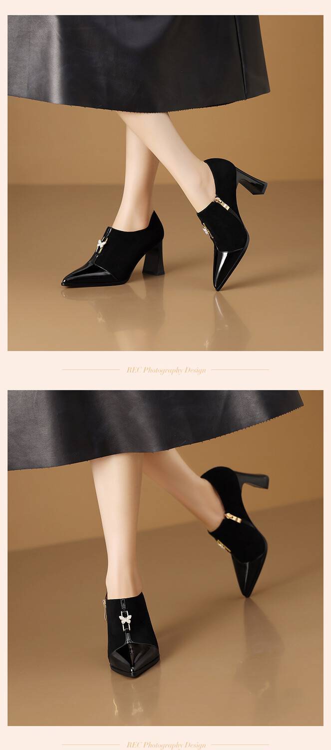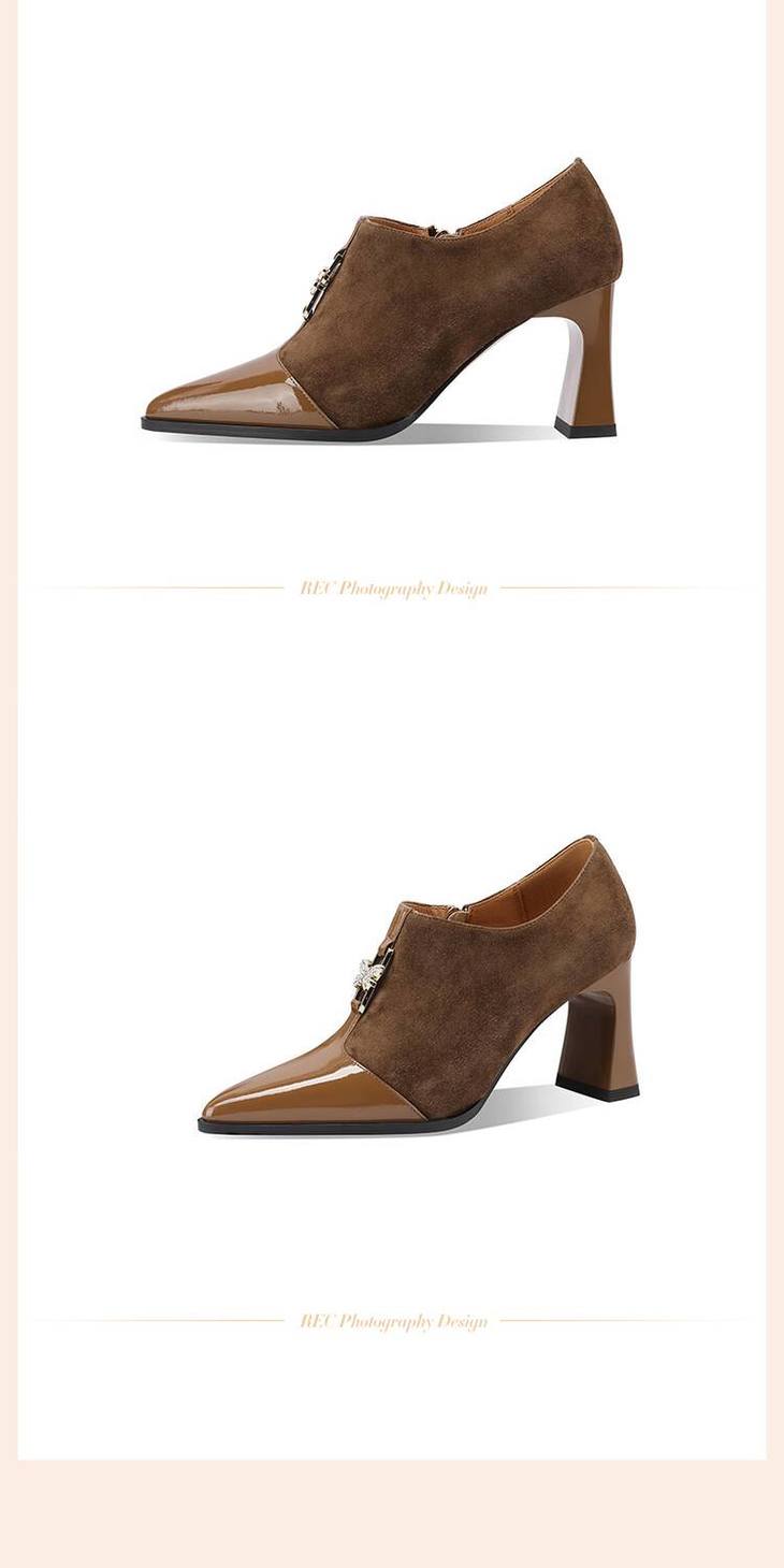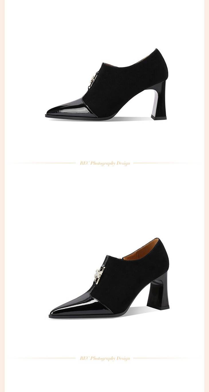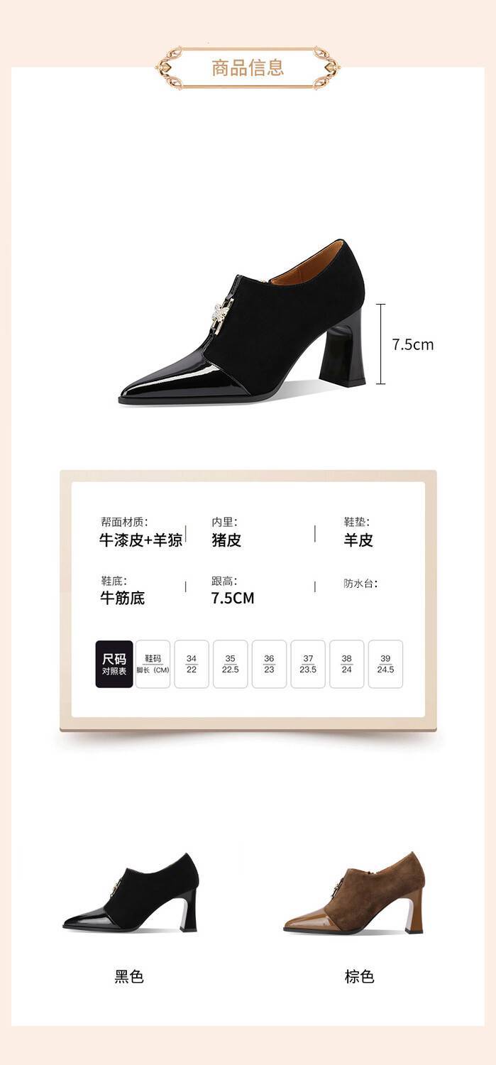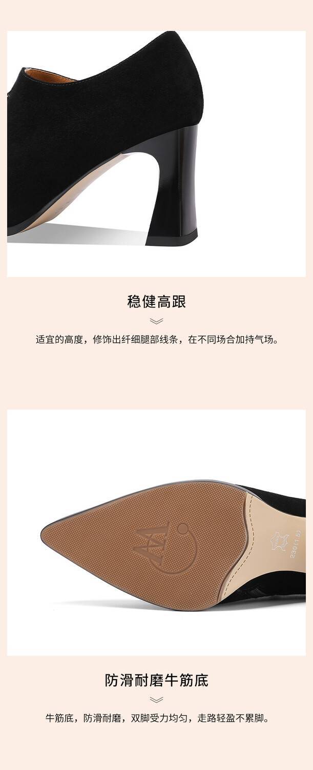 【预售5天】真皮单鞋羊翻皮复古尖头粗跟短靴女秋春季新款深口中跟及踝靴HY&H3501