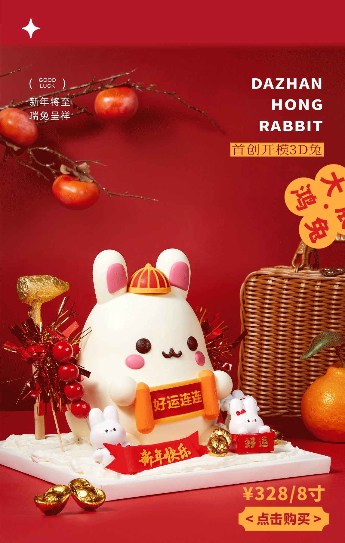大展宏兔(新年重磅推荐,能砸开金元财宝,超大只兔子,8寸适合6-10人食用)(春节)