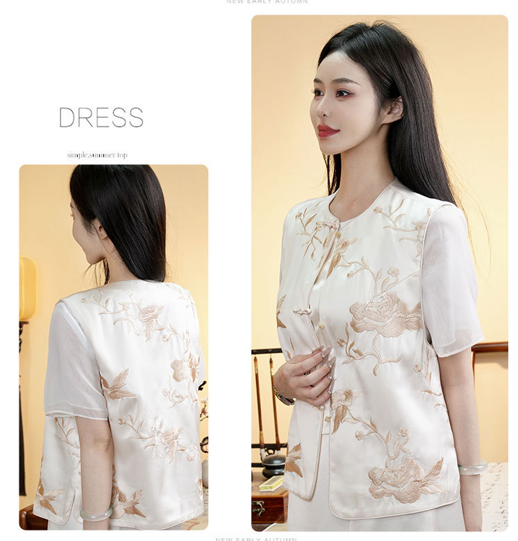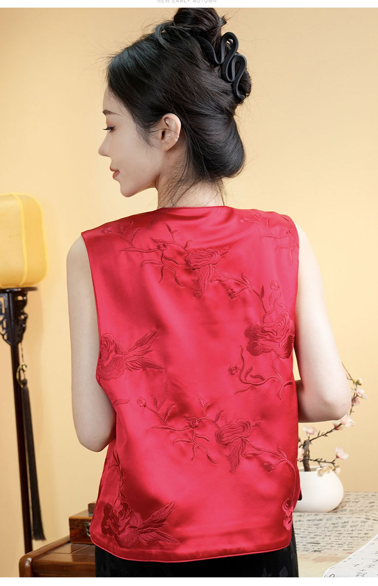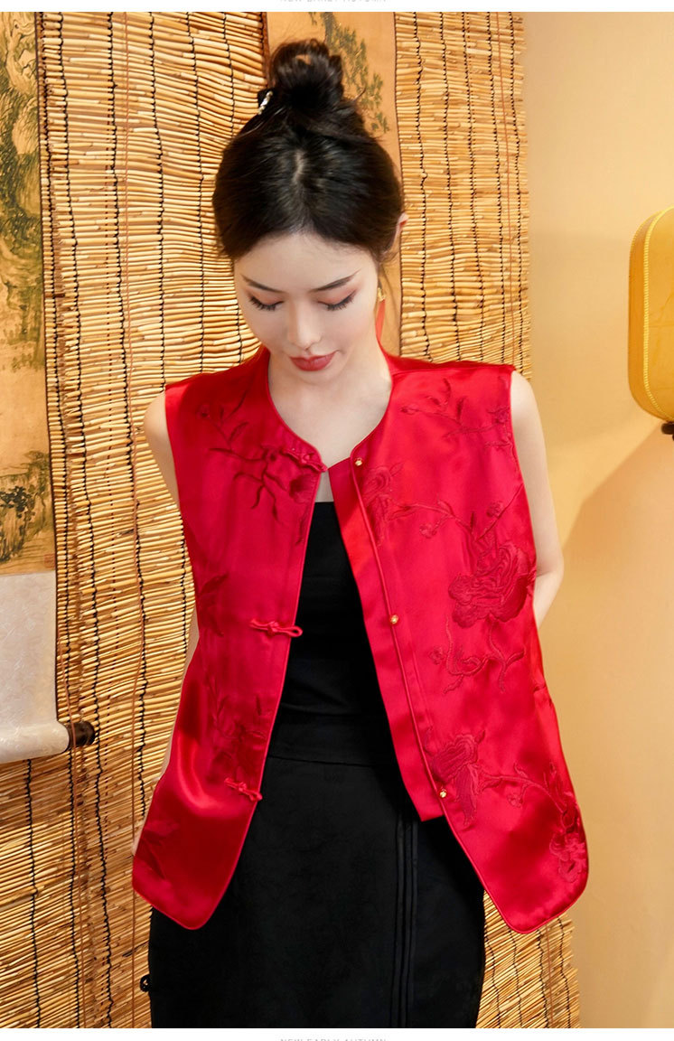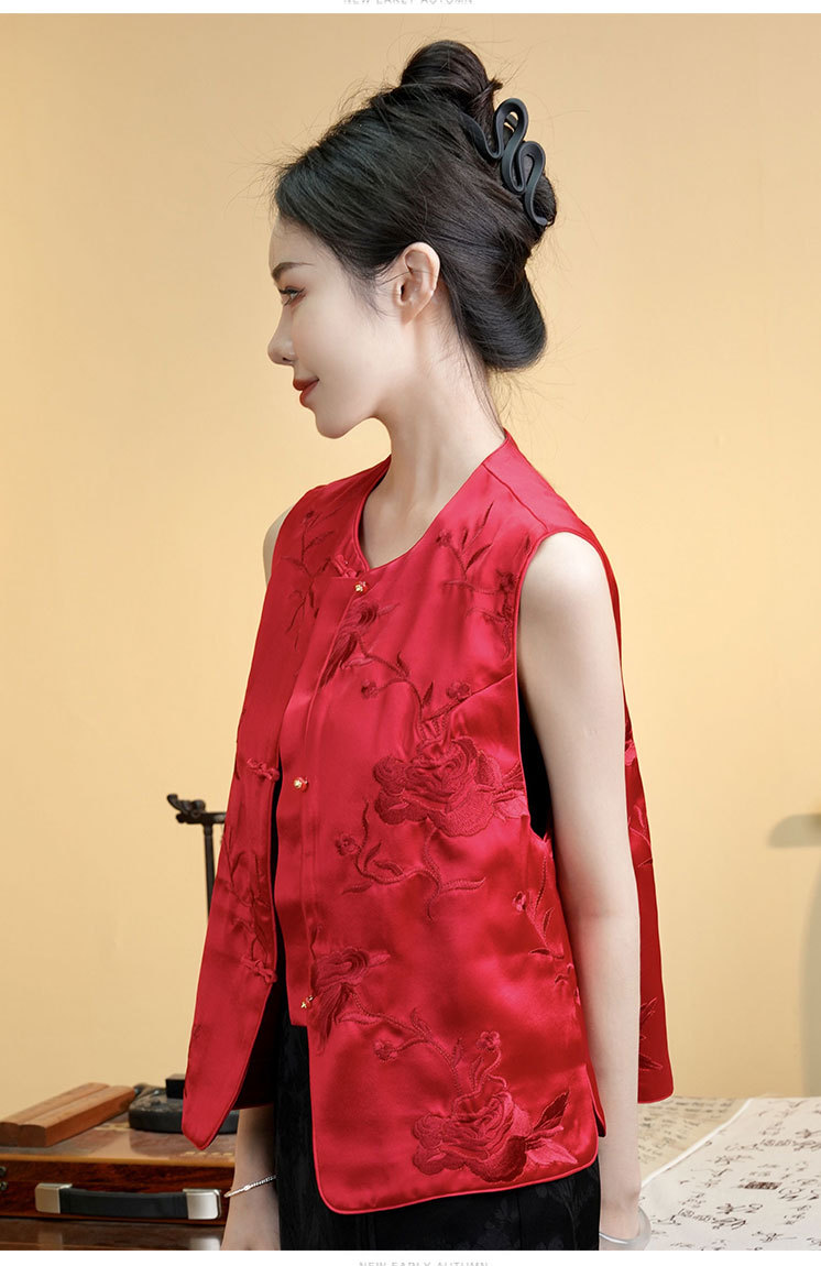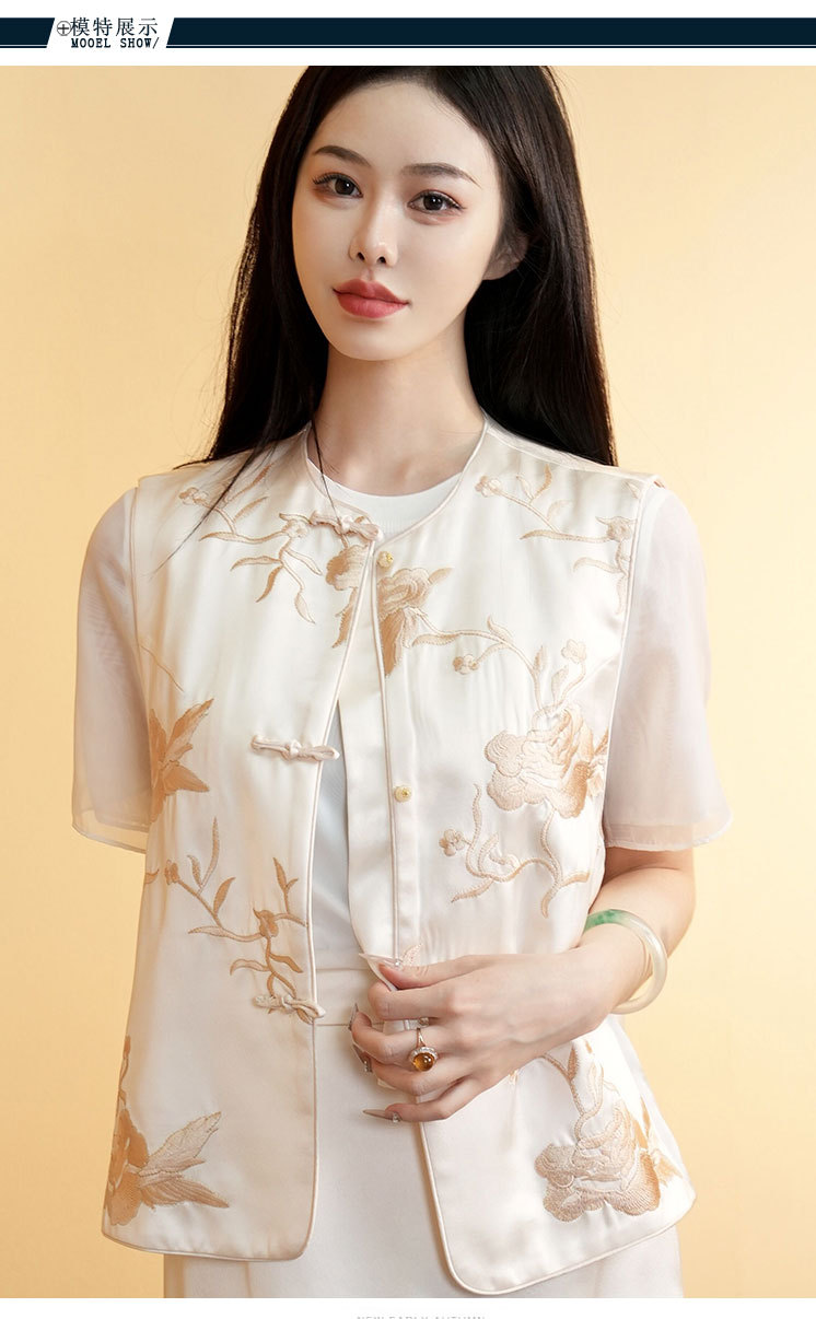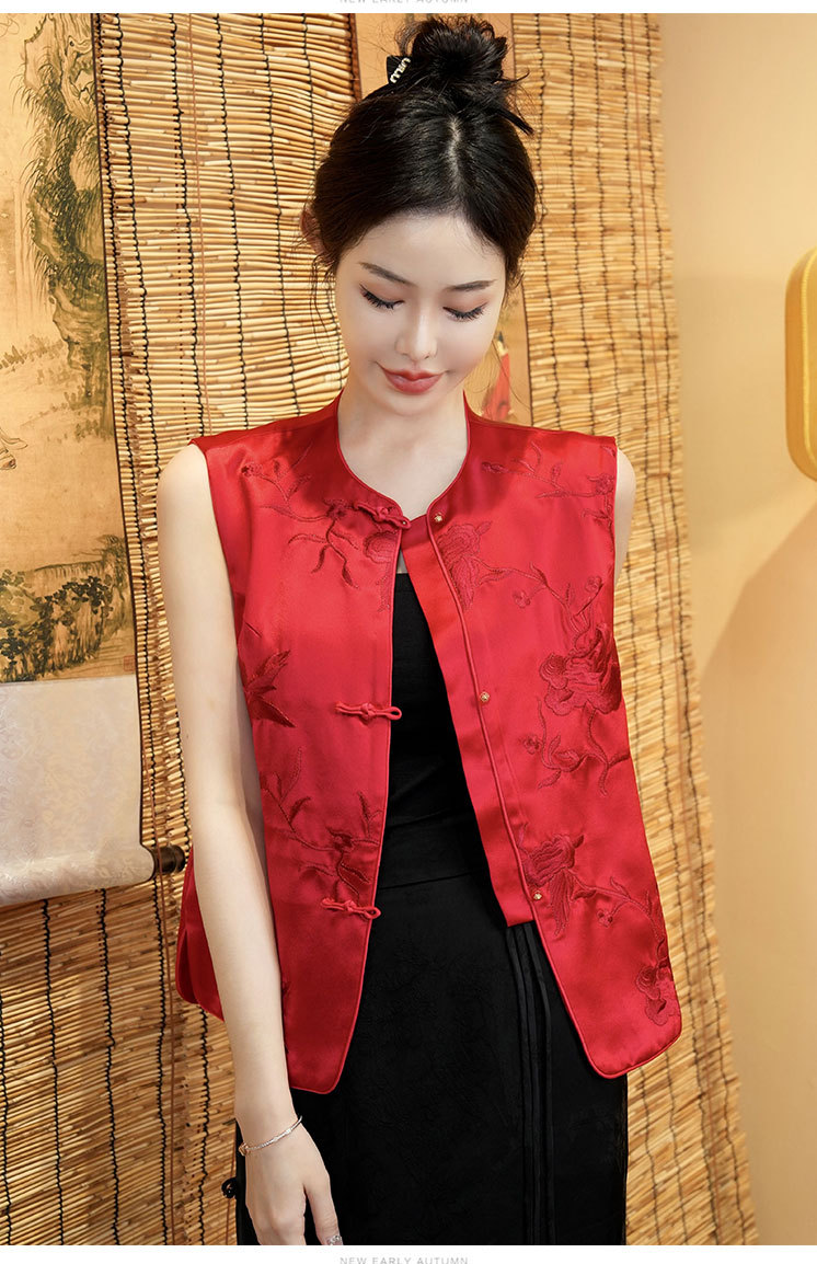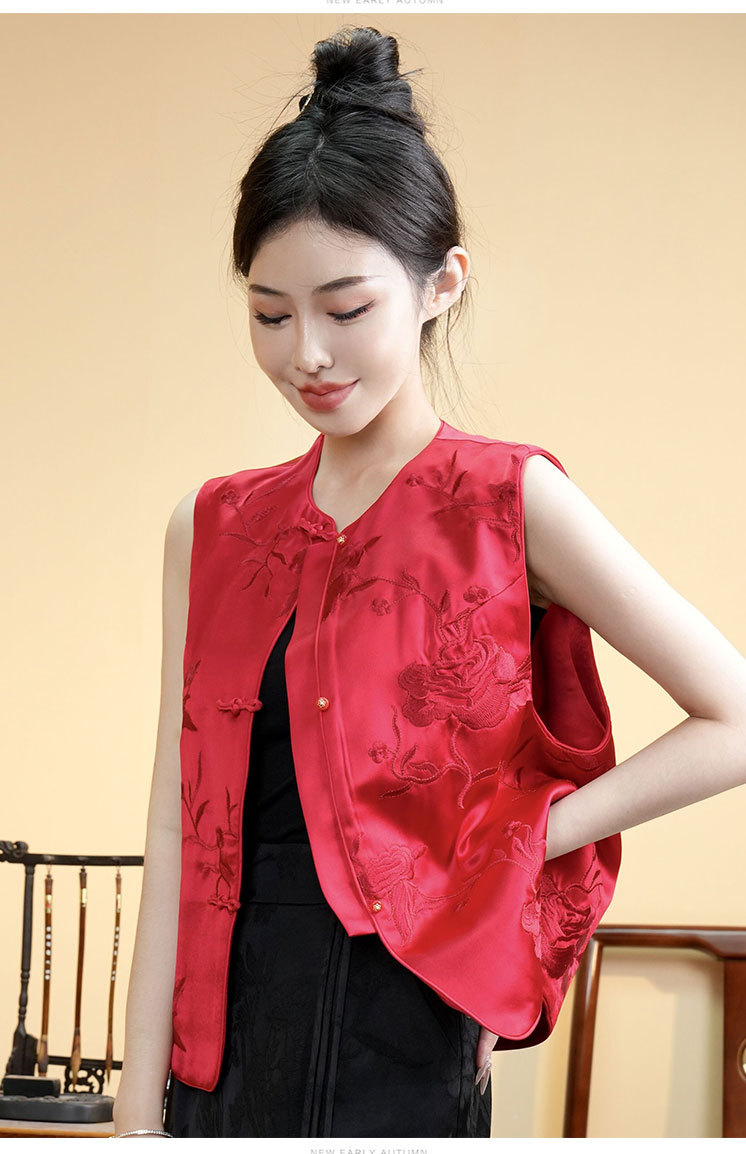 复古民族风,改良盘扣圆领坎肩重工刺绣背心马甲OG-9721