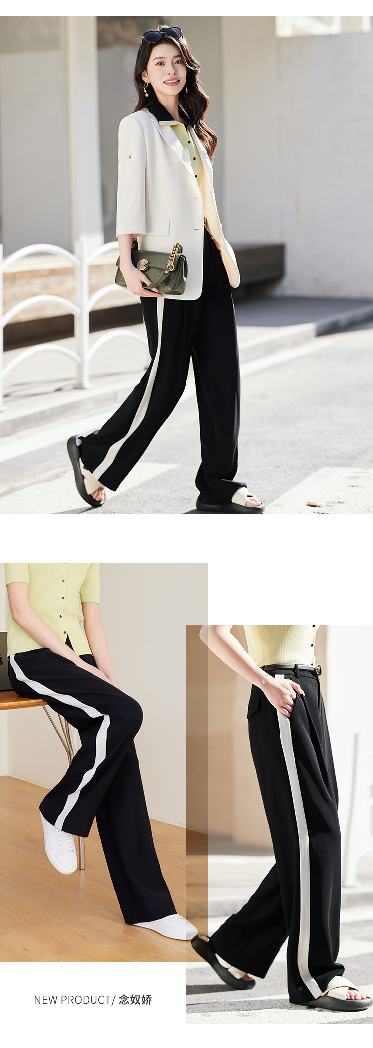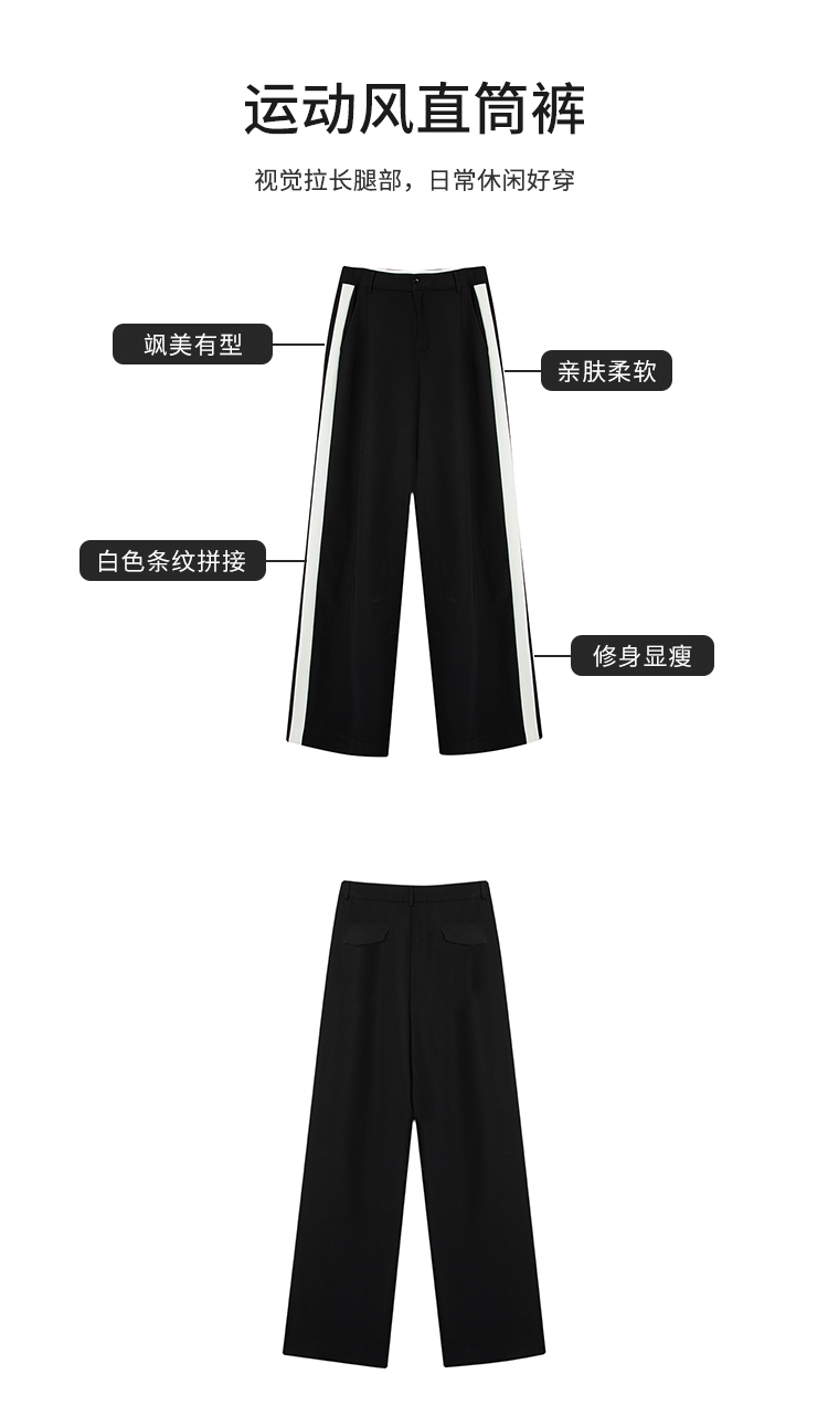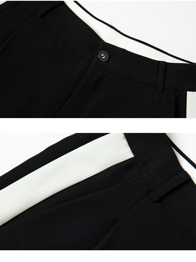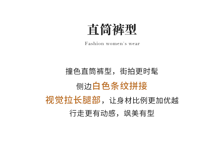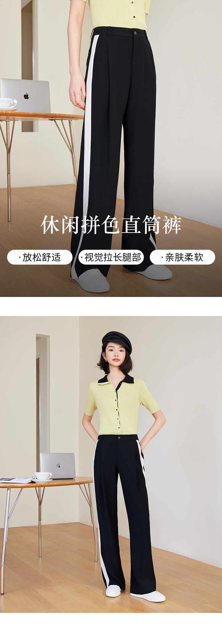 【商场同款】CNT4356 “ 摩登率性直筒裤 ” 长直筒裤型 悬垂抗皱的材质舒适好穿 更带来都市的松弛时髦感 侧面米白拼接,色调鲜明 行走间灵动帅气