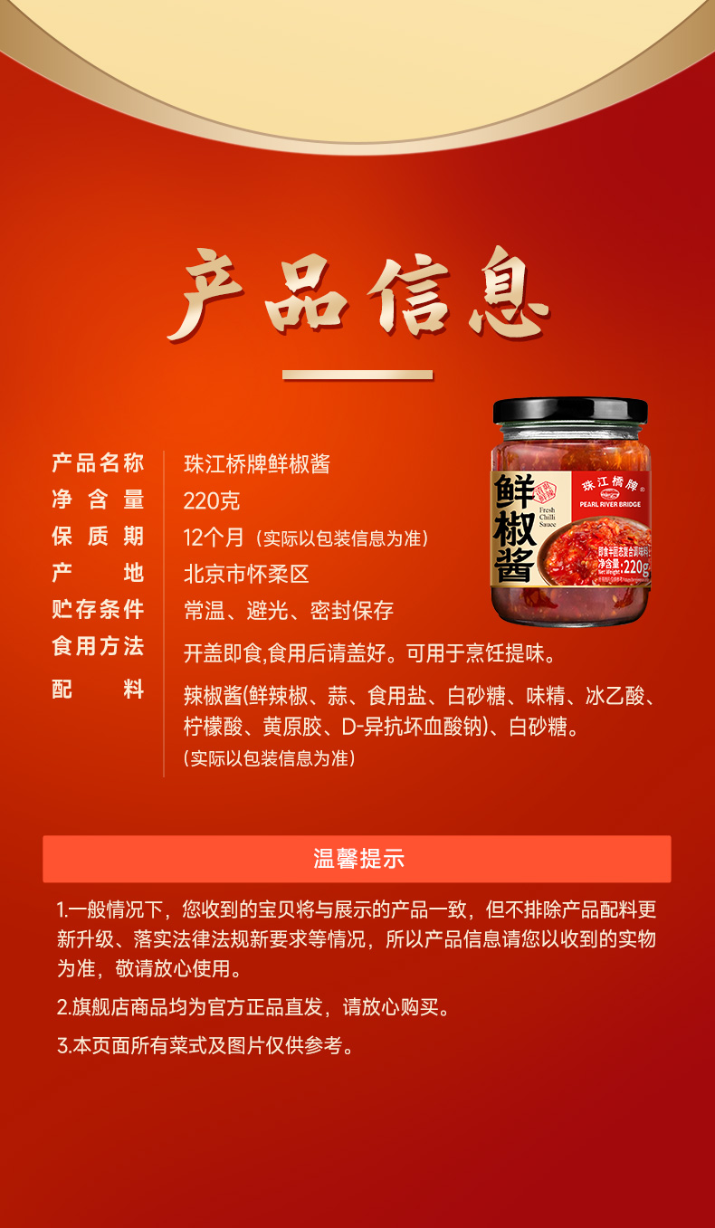 【新品】珠江桥牌 鲜椒酱220g