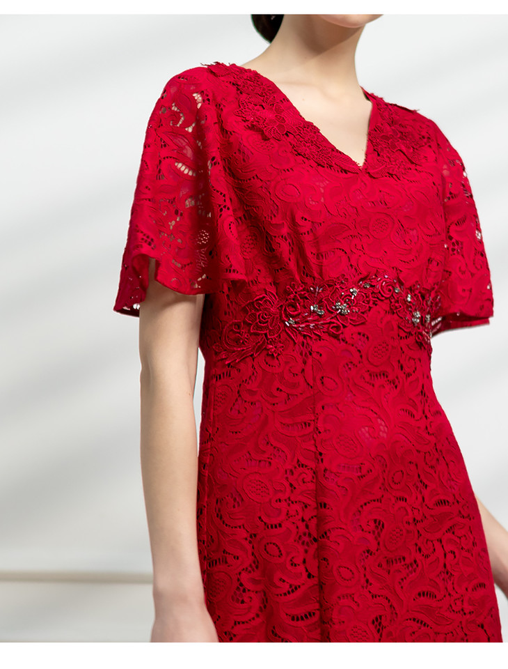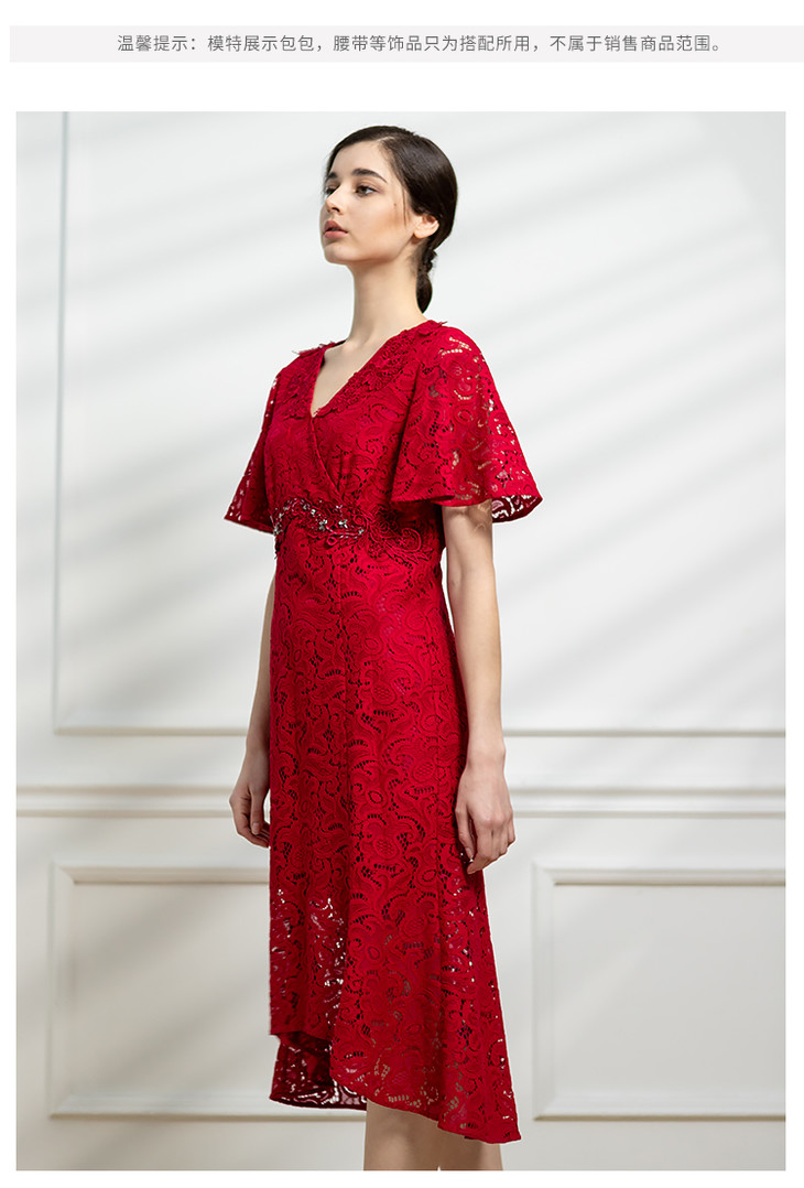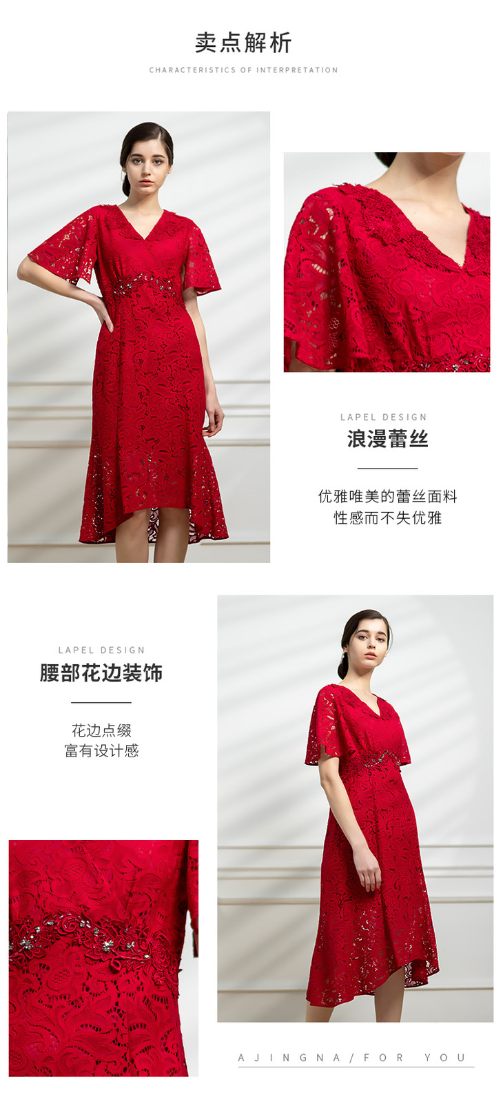 【特价不退换】阿菁娜红色婚庆新娘装蕾丝连衣裙A25X212181
