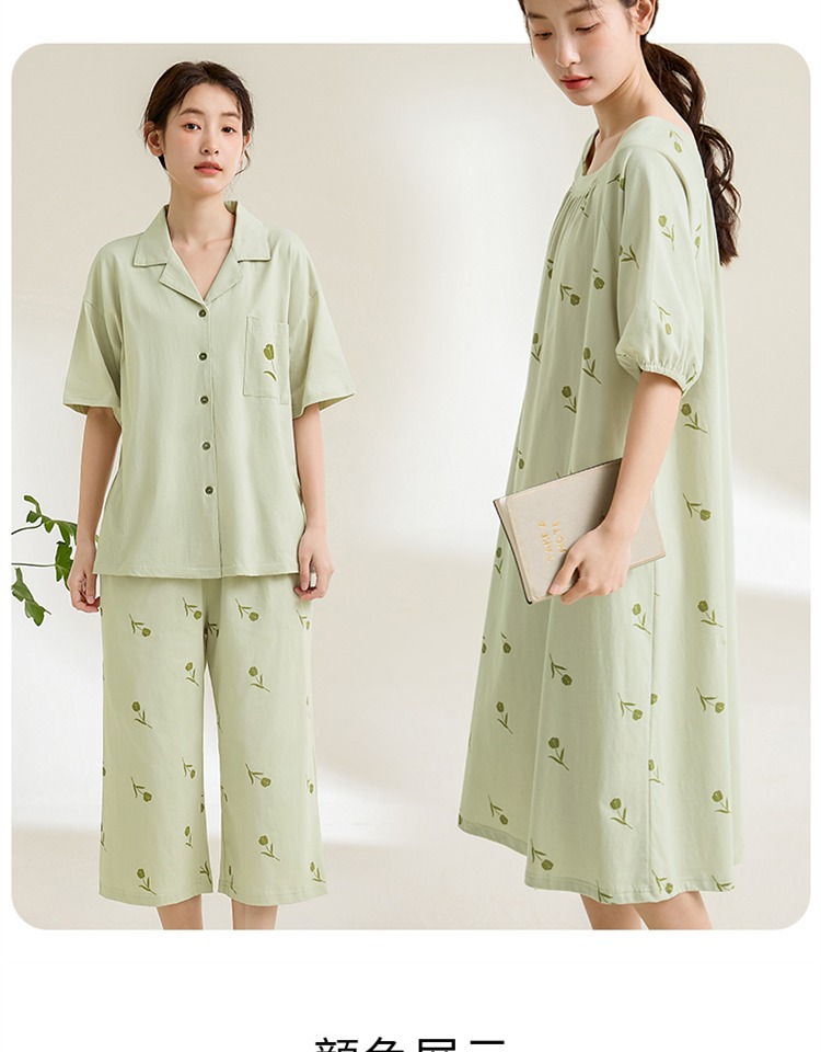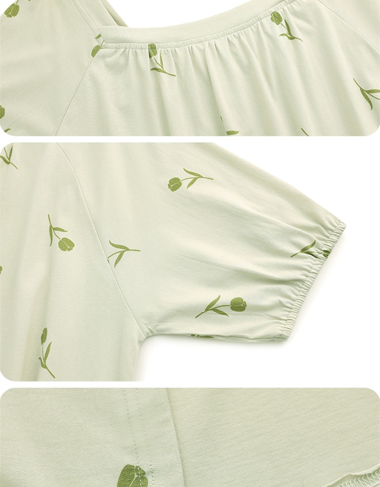 (合作款)芬腾【带胸垫】防凸点新款女士纯棉短袖长裤家居服套装yc0209009
