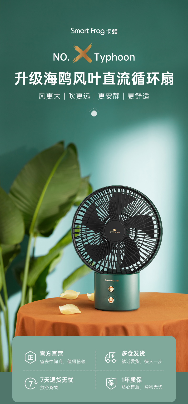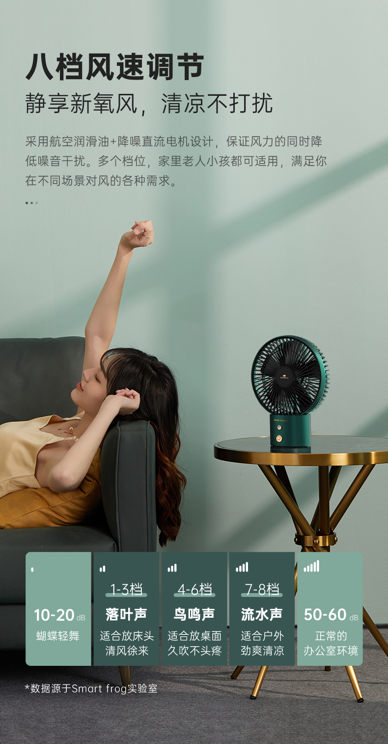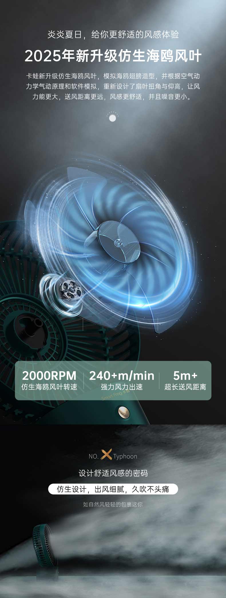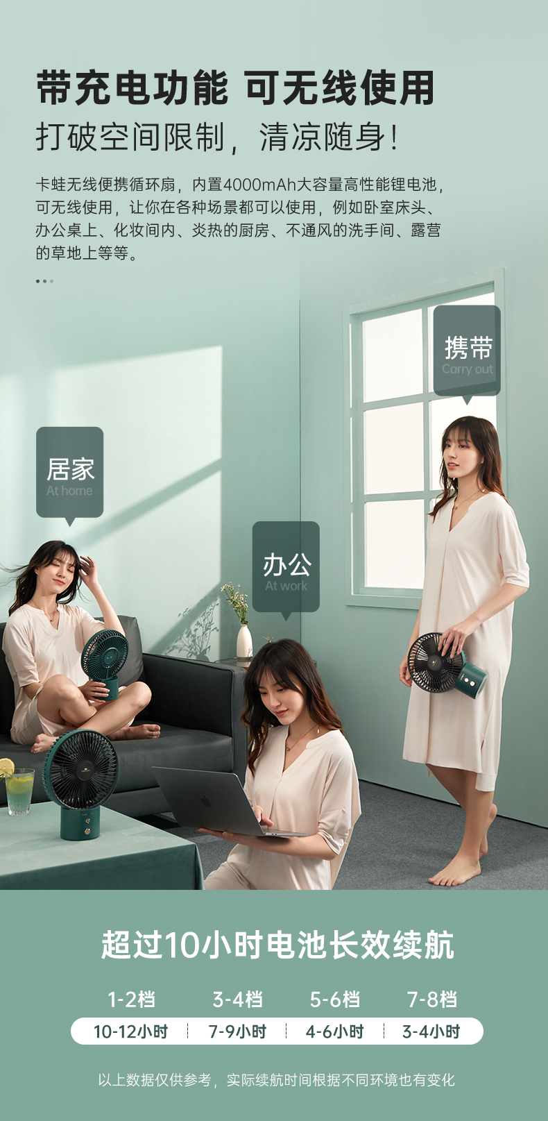 【无线便携 清凉随身】卡蛙 X台风桌面小风扇 升级海鸥风叶 直流循环 八档风速可调 风更大更远更静 出风细腻 久吹不头痛 带充电功能 各种场景可使用 长效续航KW-MF600