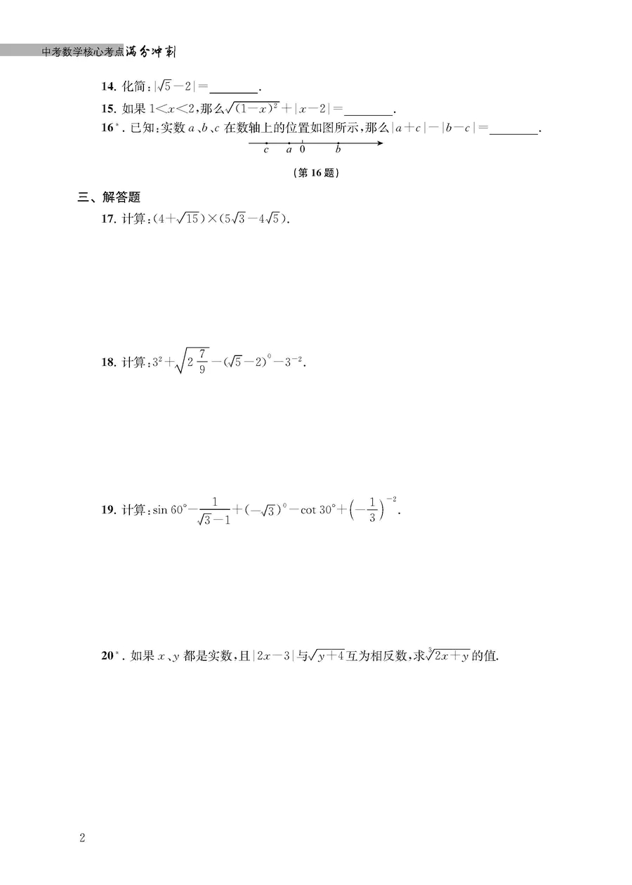 中考数学核心考点满分冲刺 考点梳理 分层练习 冲刺基础题提高题满分 中考数学专项训练总复习题型归纳 挑战压轴题 上海教育出版社