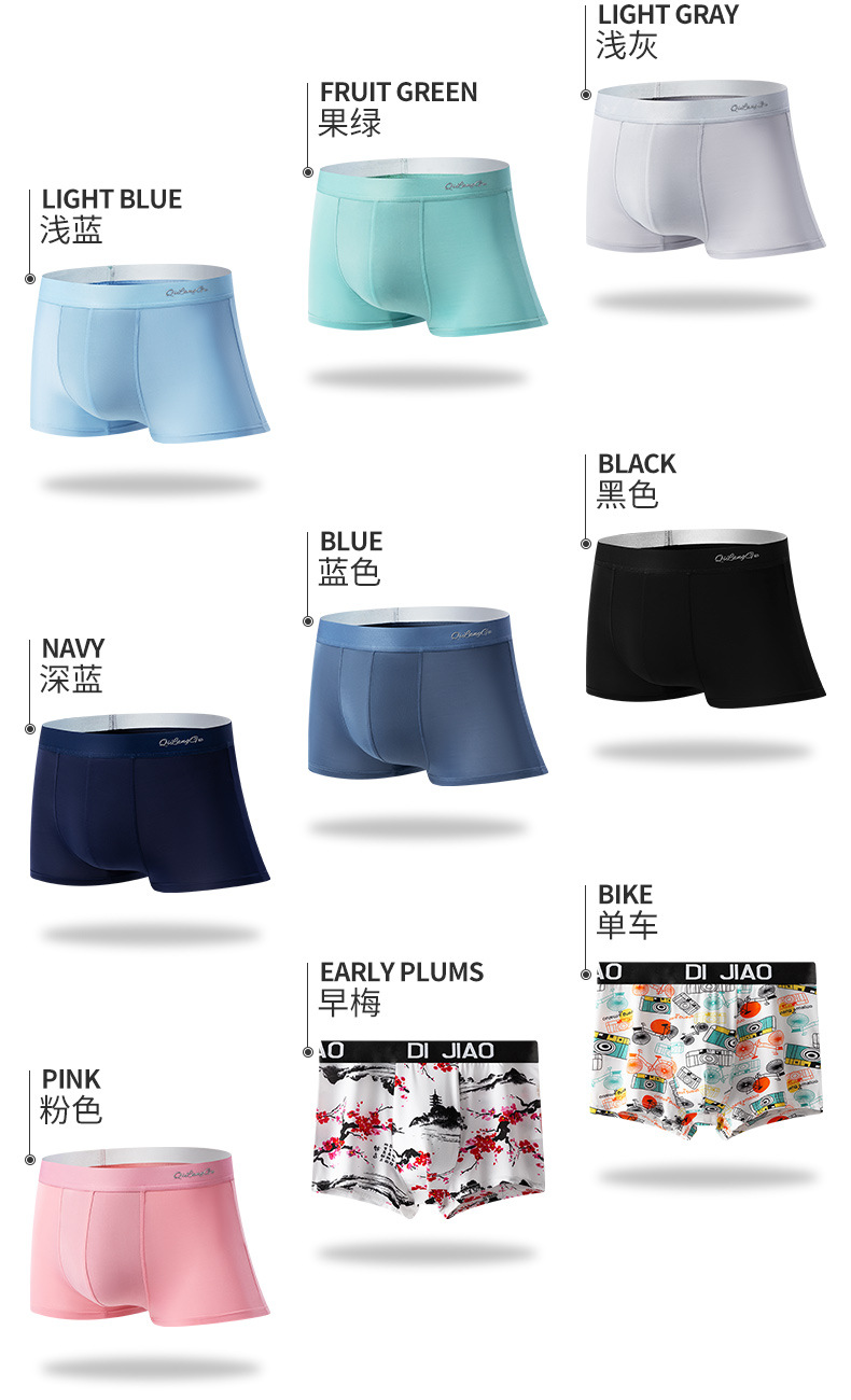 【礼盒装!】冰丝内裤男士四角裤抗菌平角新款纯色超大码200斤夏季初高中学生,包边裤脚不易卷边,不易 变形,穿着更舒适。ry