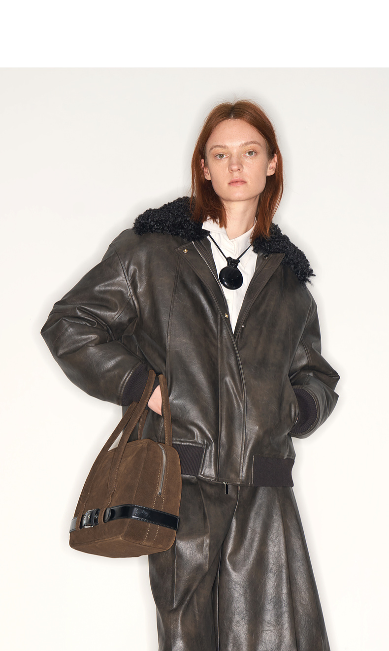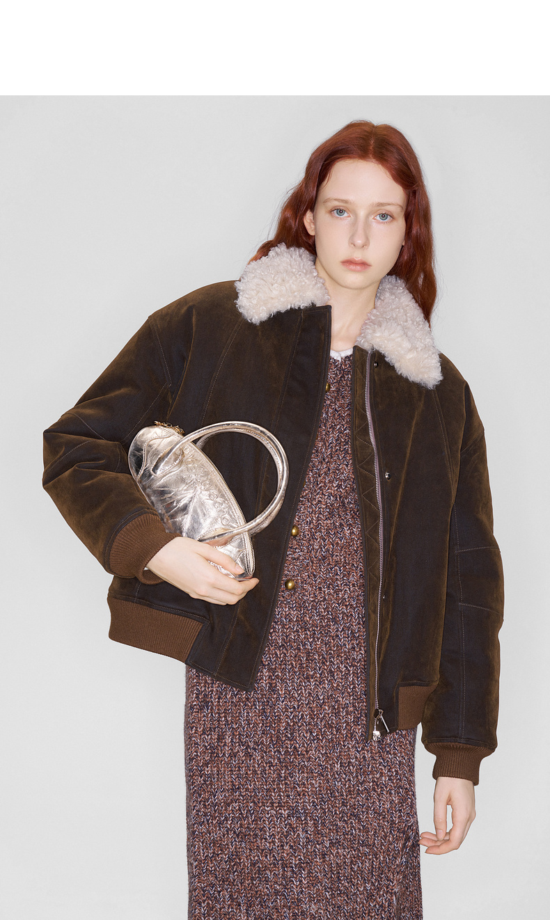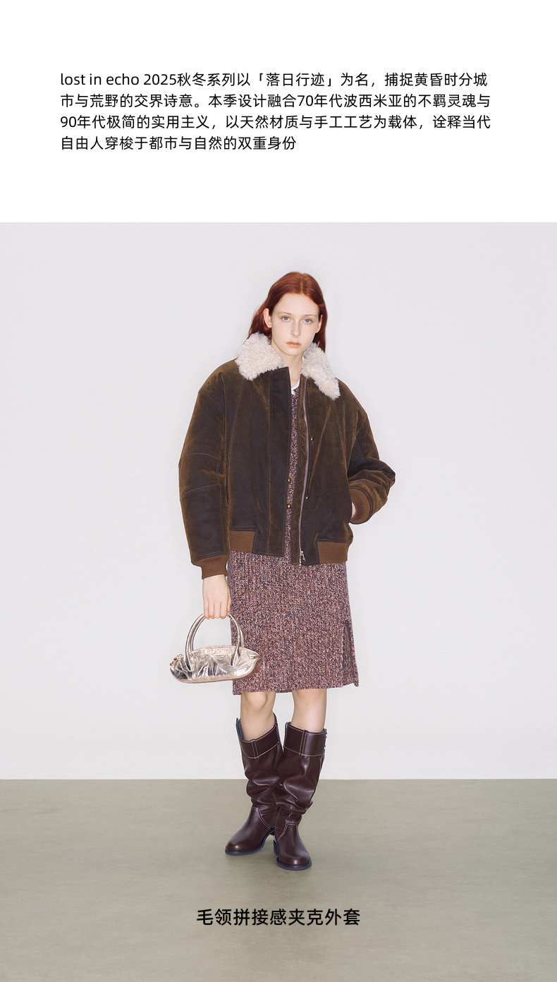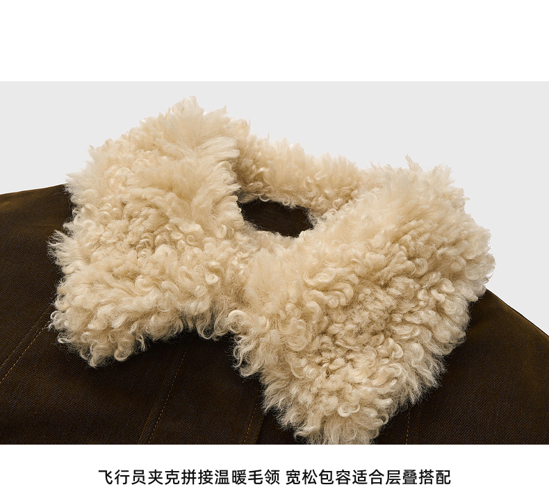 lost in echo2025早秋新款复古毛领保暖加绒宽松飞行员夹克外套女