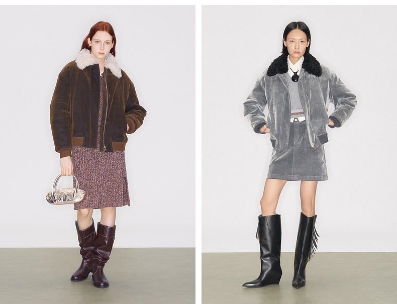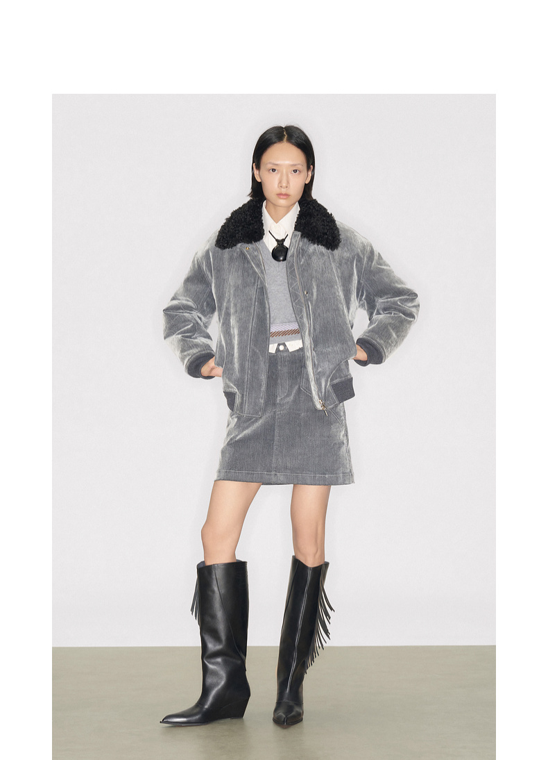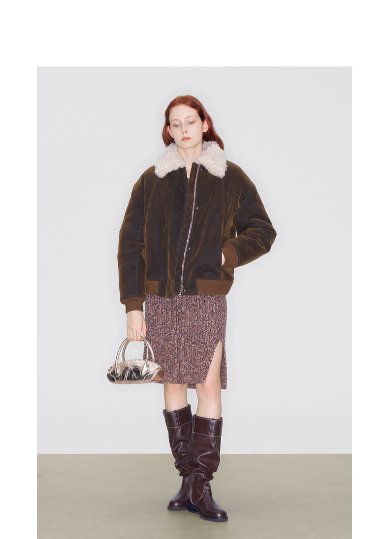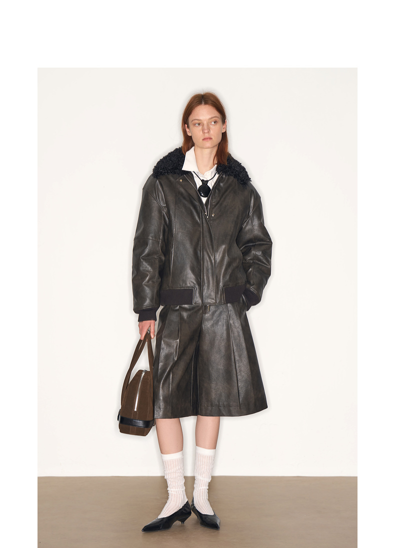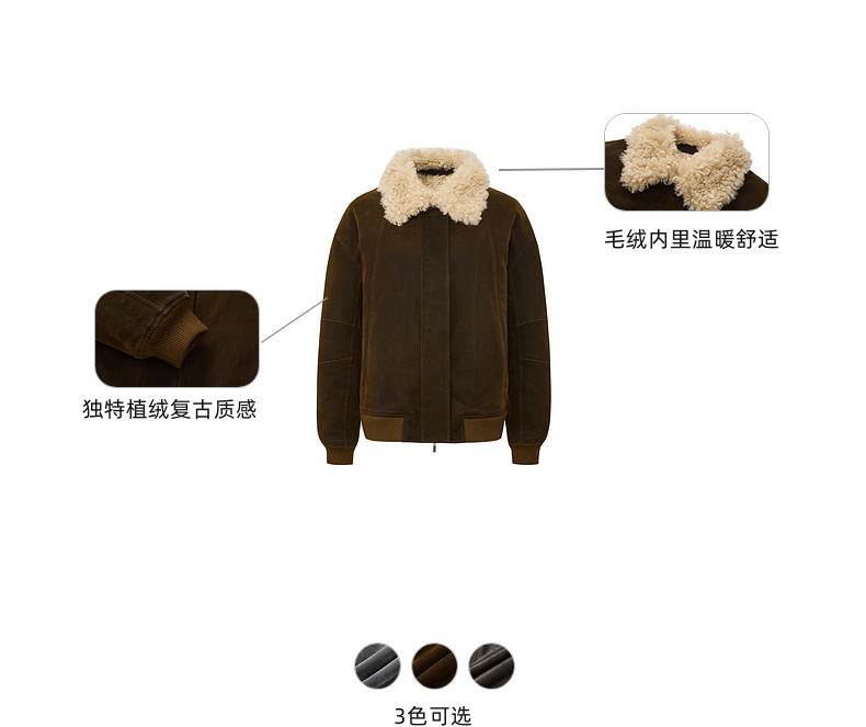 lost in echo2025早秋新款复古毛领保暖加绒宽松飞行员夹克外套女