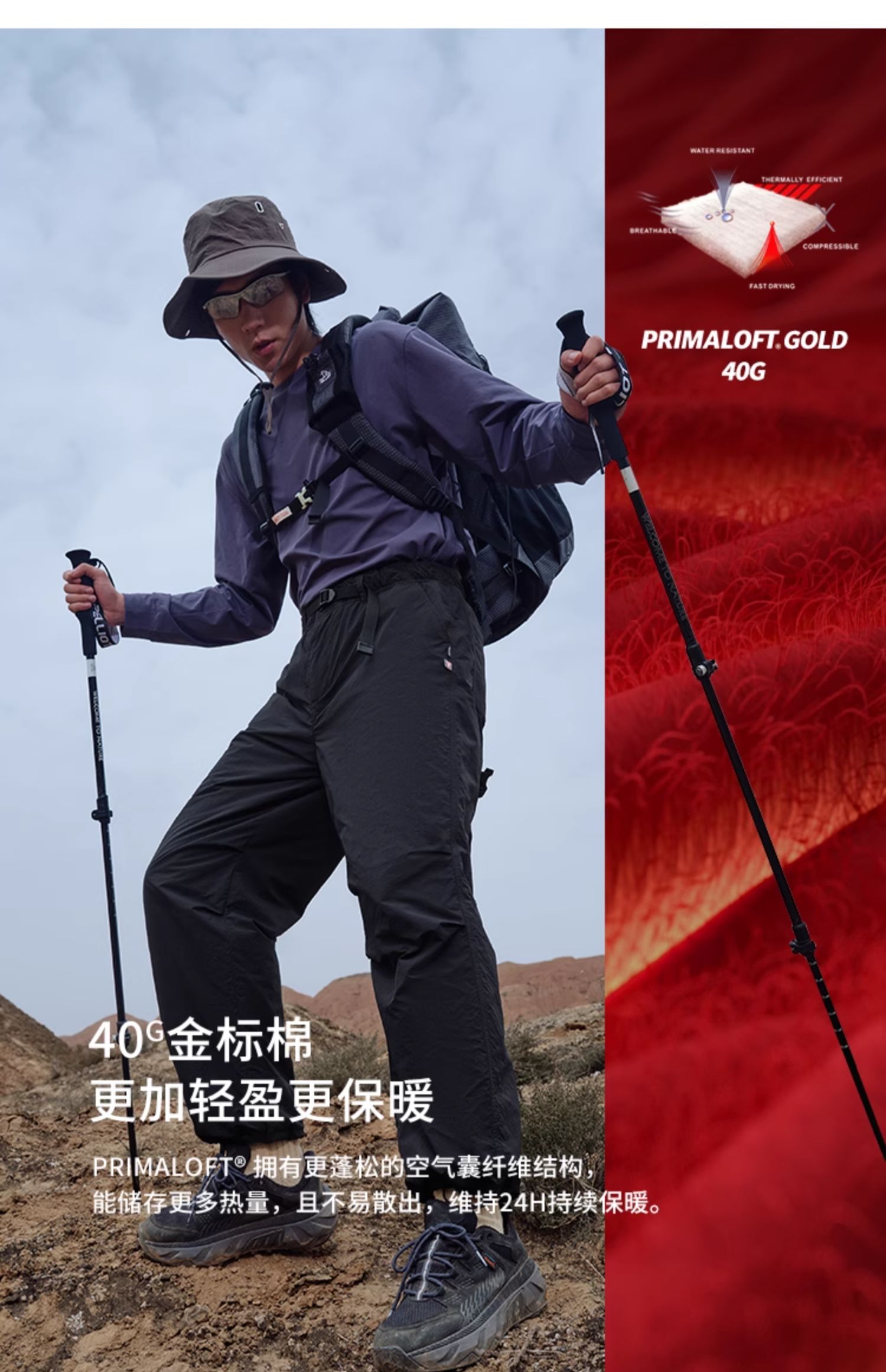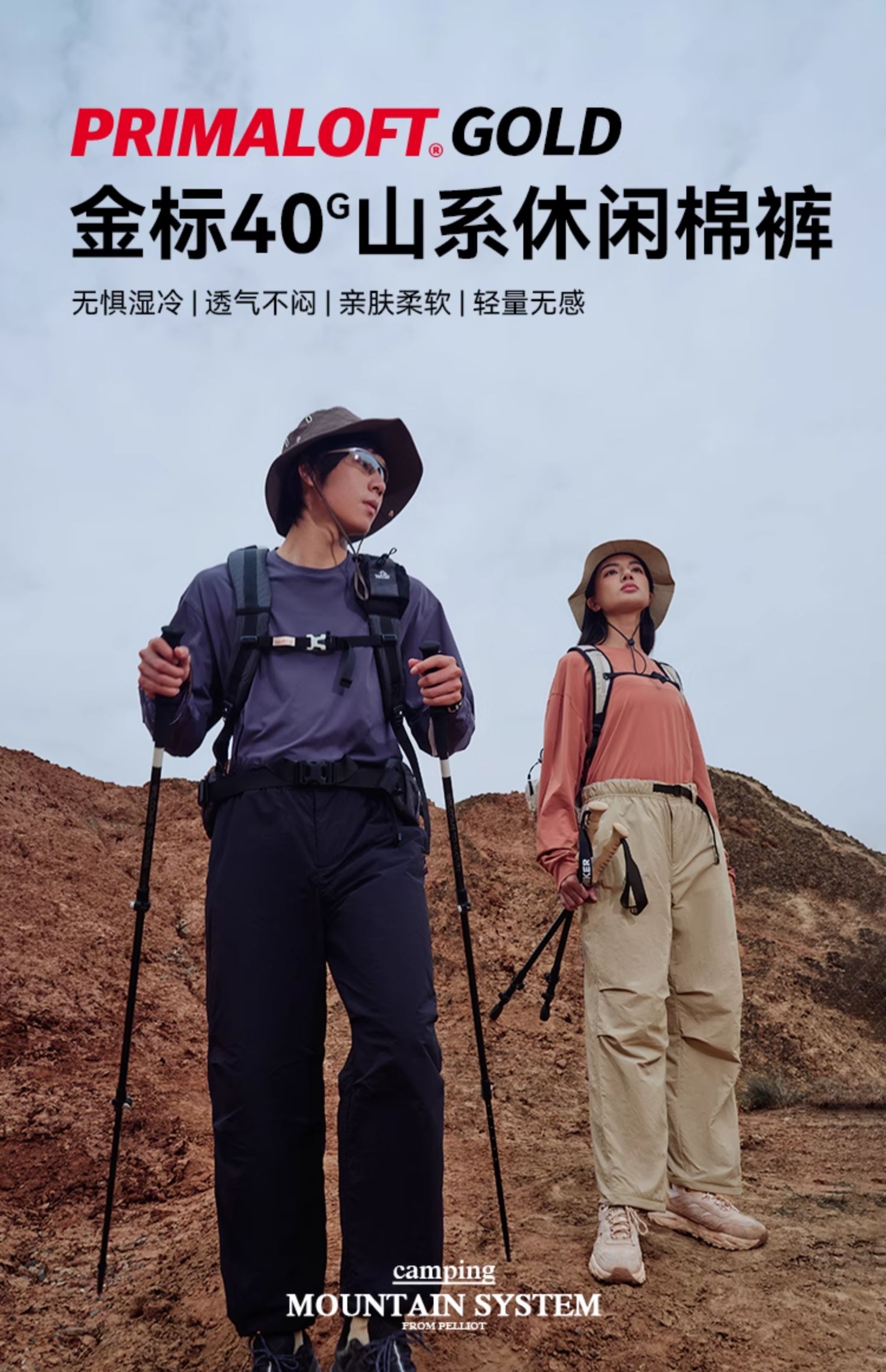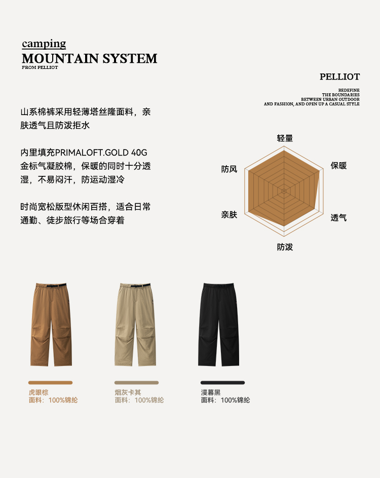 【山系】伯希和Primaloft金标P棉裤春季新款男女同款户外防风长裤