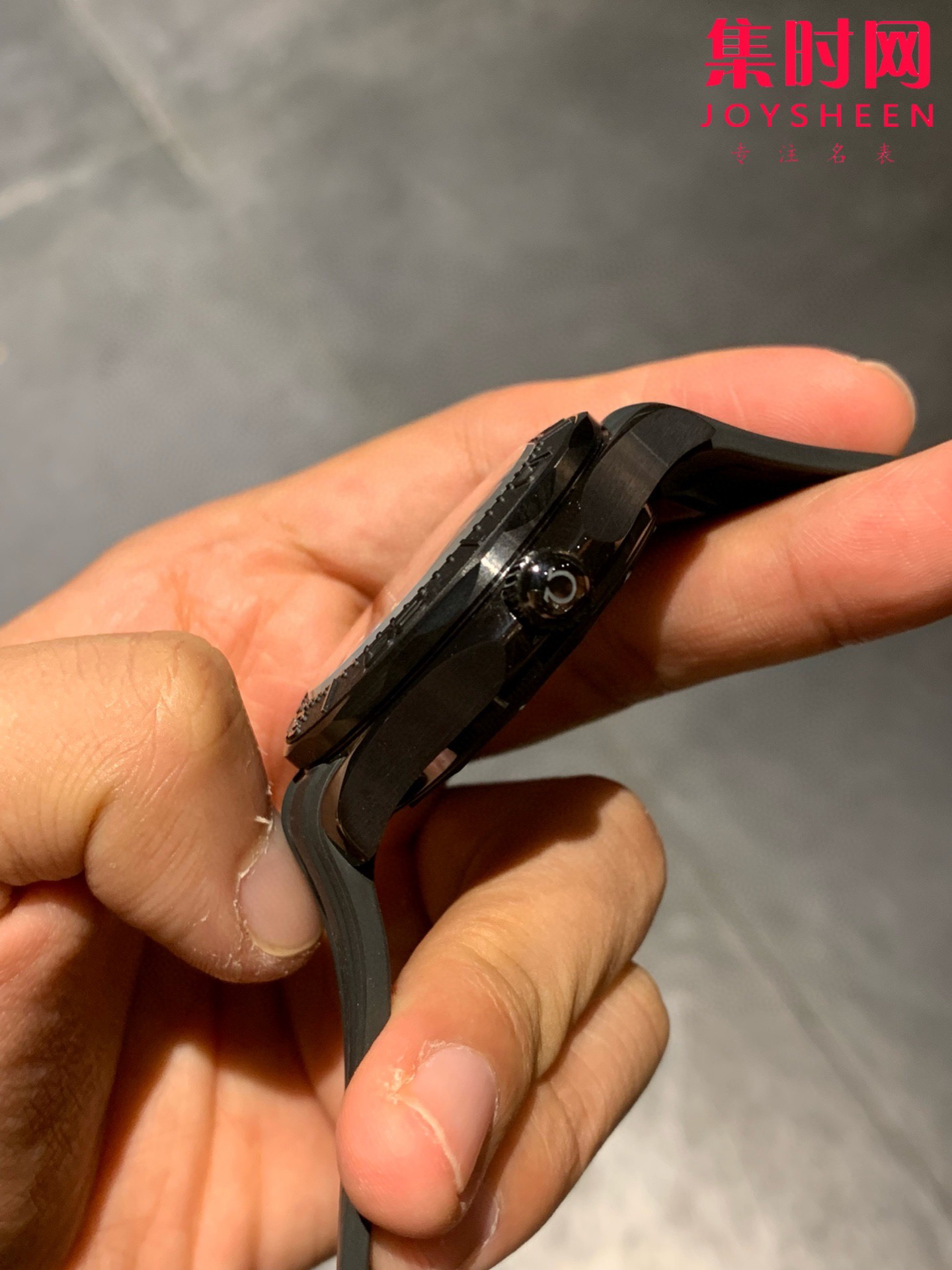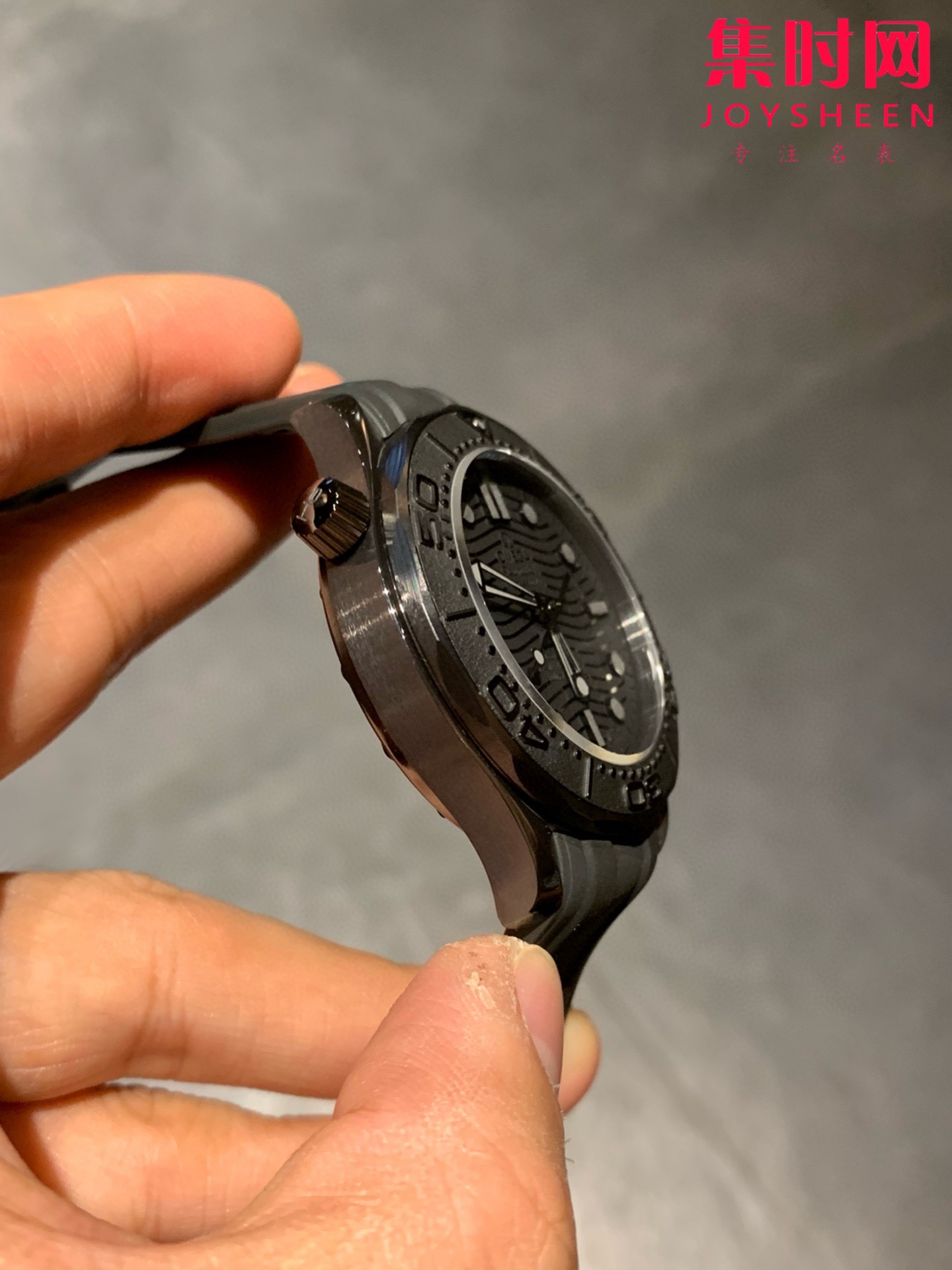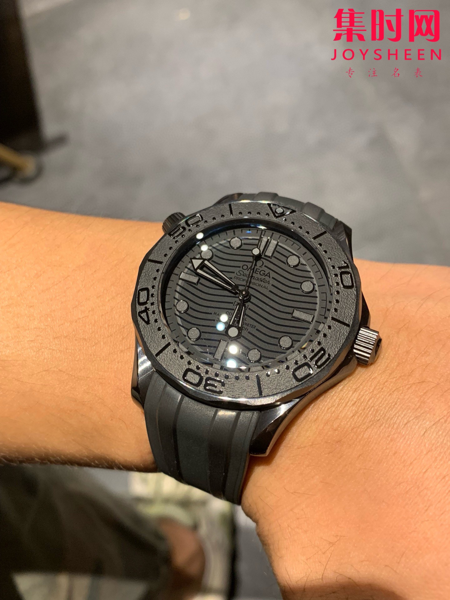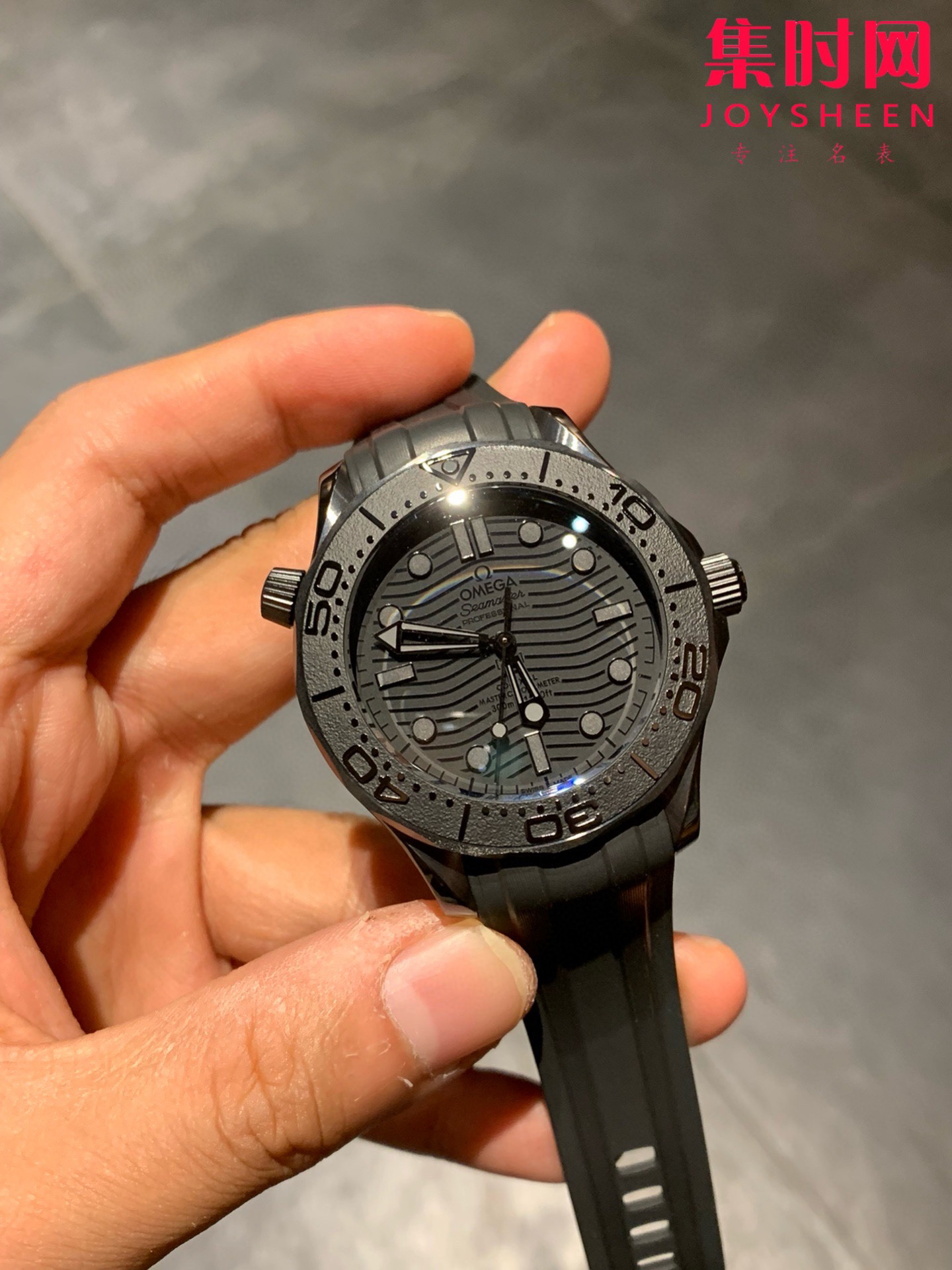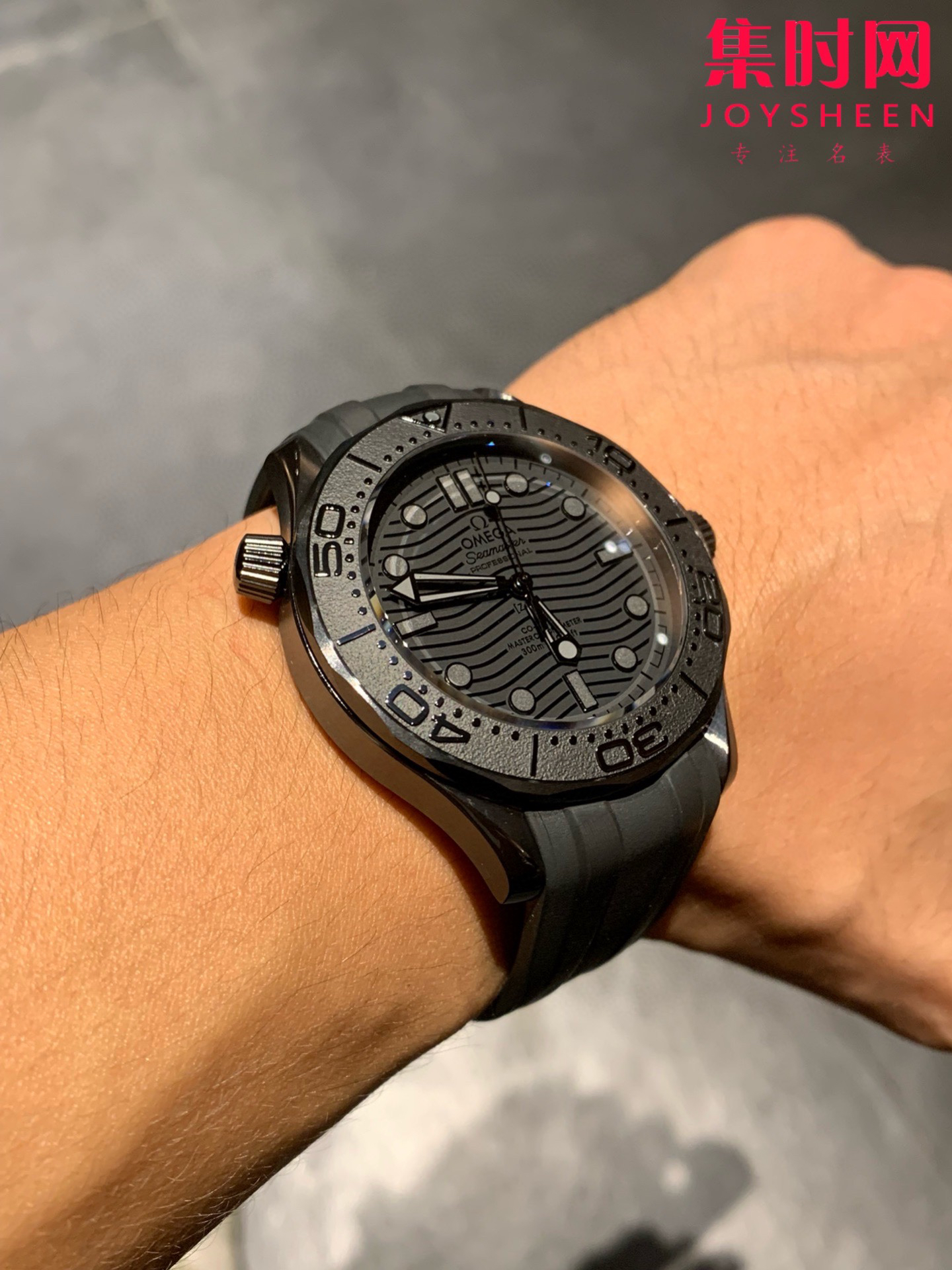 墨黑海马 桀骜登场 欧米茄S+新品海马300系列 陶瓷海马 男士机械腕表 表径43.50mm 表壳、表圈、波纹图案表盘均采用黑色氧化锆1Zr021陶瓷制成。镂空指针及12点位的圆点,均覆有Super-LumiNova夜光涂层。蓝宝石镜面 进口橡胶表带 机芯的运转美态清晰可见。透过采用波纹边缘设计的蓝宝石玻璃表背,可以欣赏到搭载改Cal.8806一体全自动机械机芯。 亮点:直接在陶瓷表壳生牙,把管直接拧上陶瓷壳,这样不会掉把管,防水效果更出色。底盖也是直接直接拧在陶瓷壳上,整壳陶瓷打造,不用再加金属中胆!