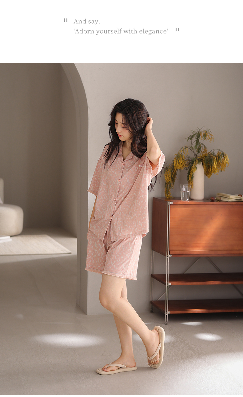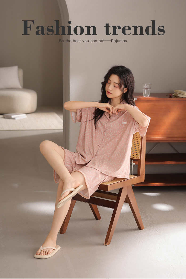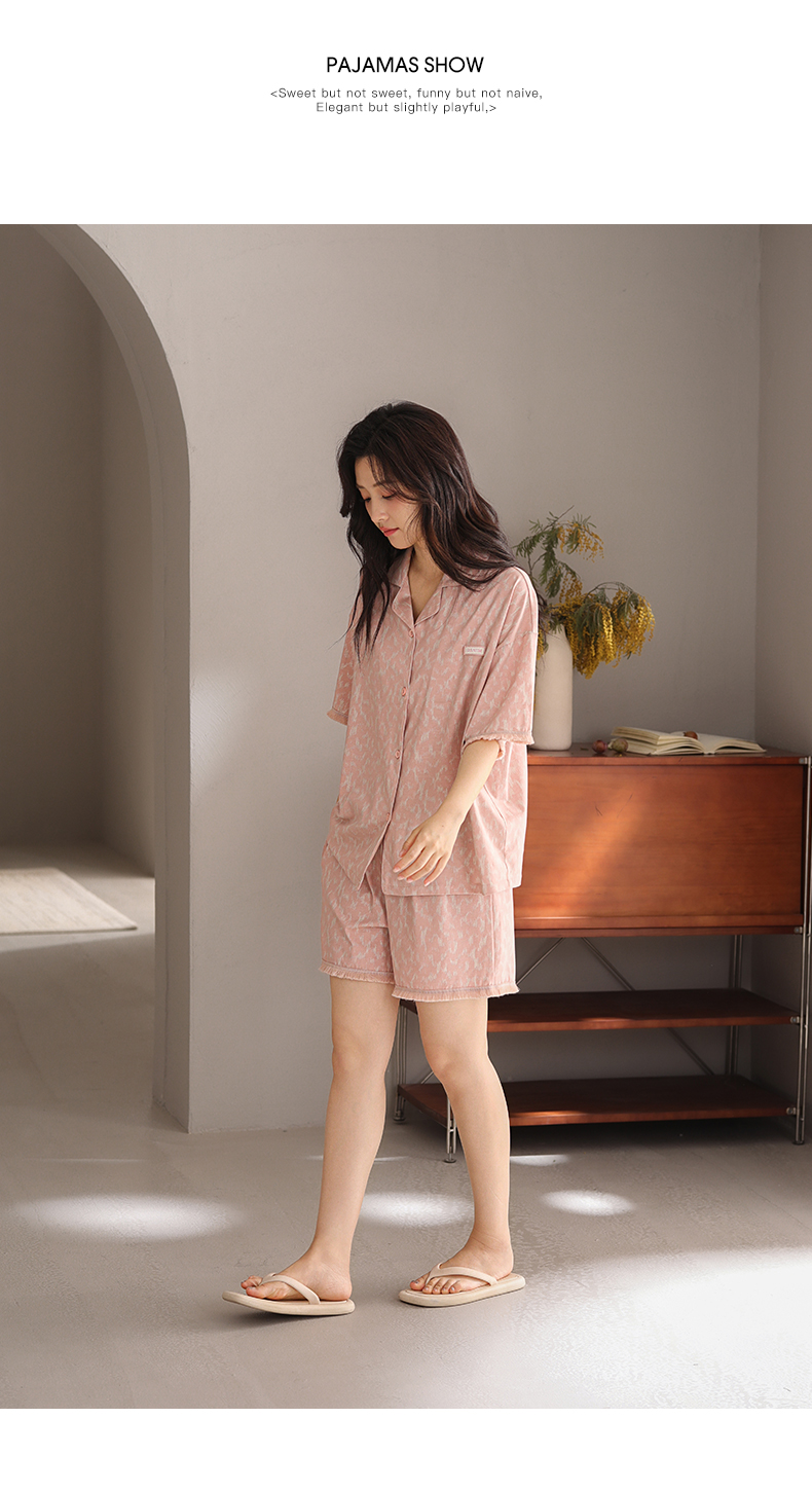 可人儿设计师新款奥力绵女士睡衣夏季短袖可外出可外穿家居服套装