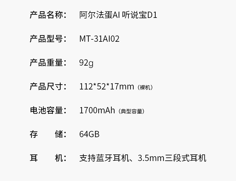 【科大讯飞】阿尔法蛋AI听说宝D1 听力宝复读机英语听力随身听