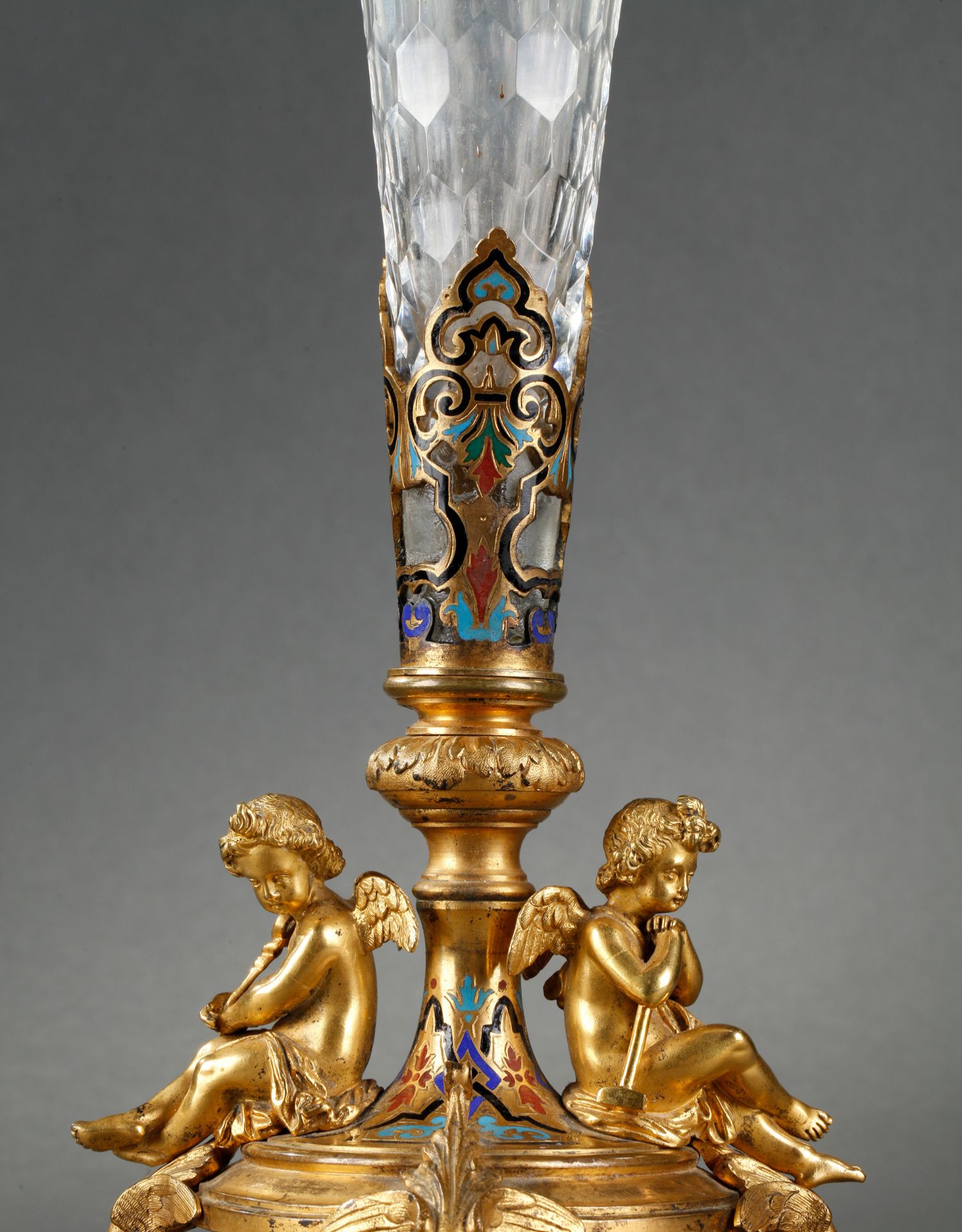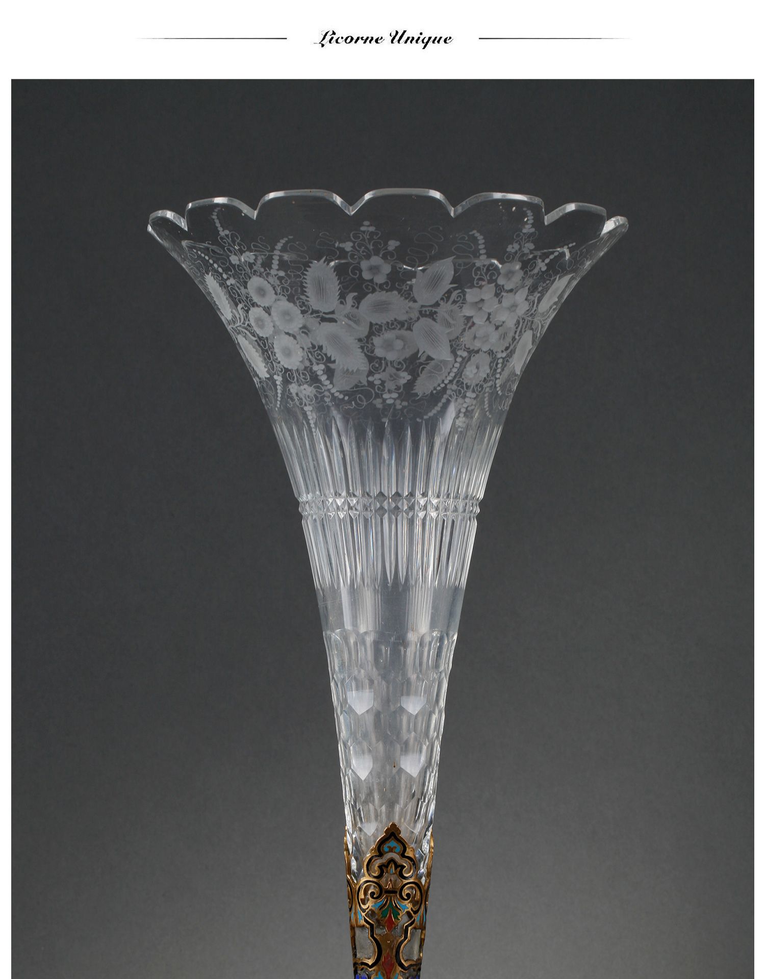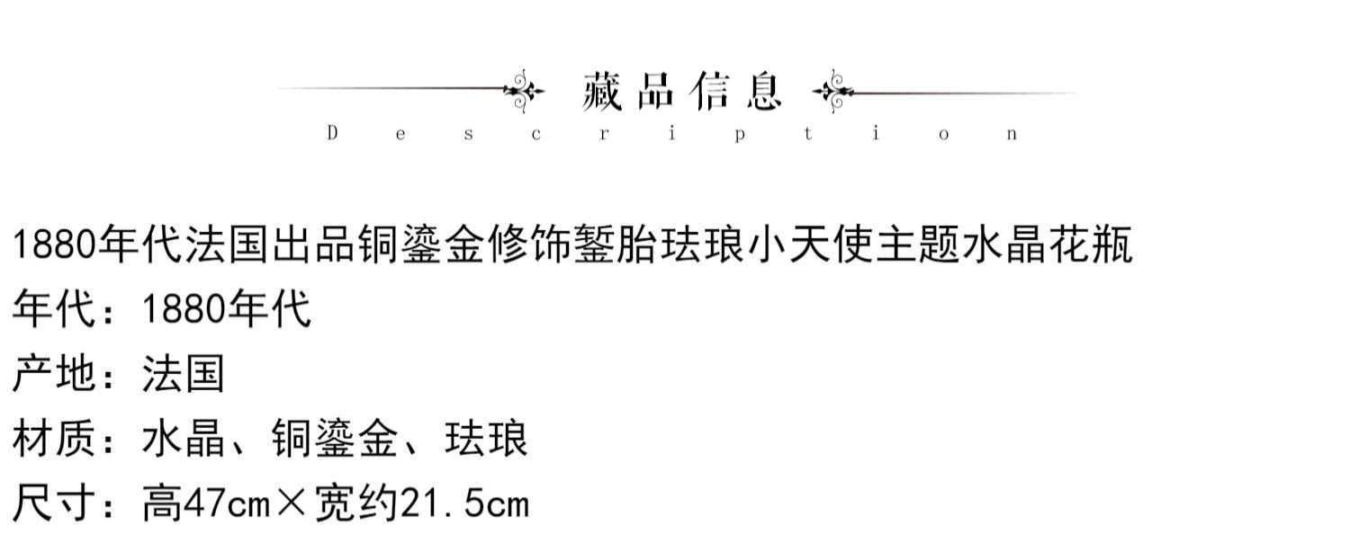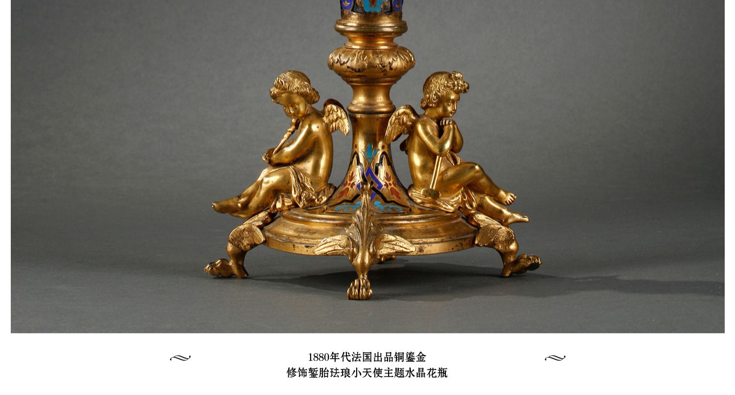 独角鹿西洋古董摆件法国铜鎏金饰錾胎珐琅小天使主题水晶花瓶