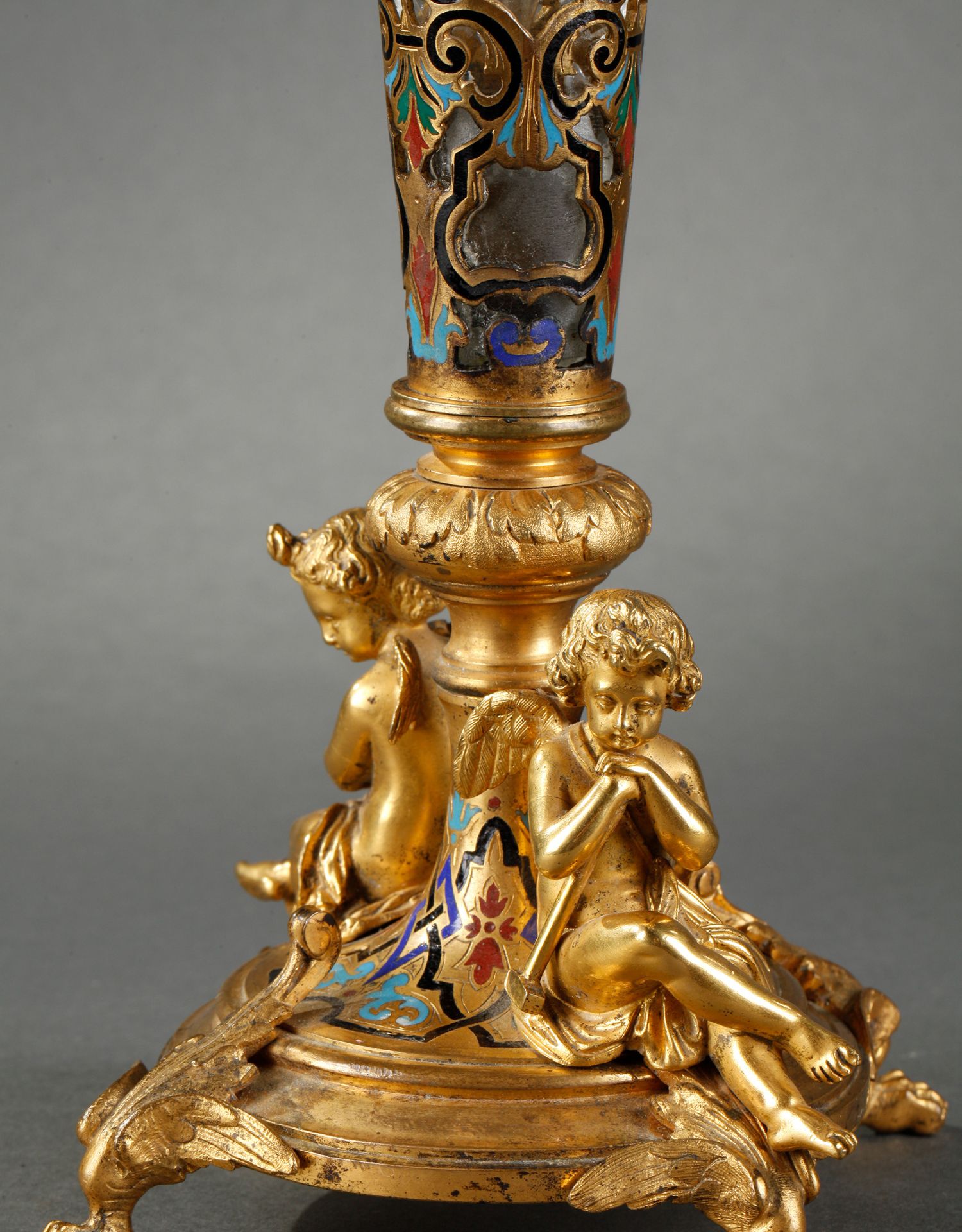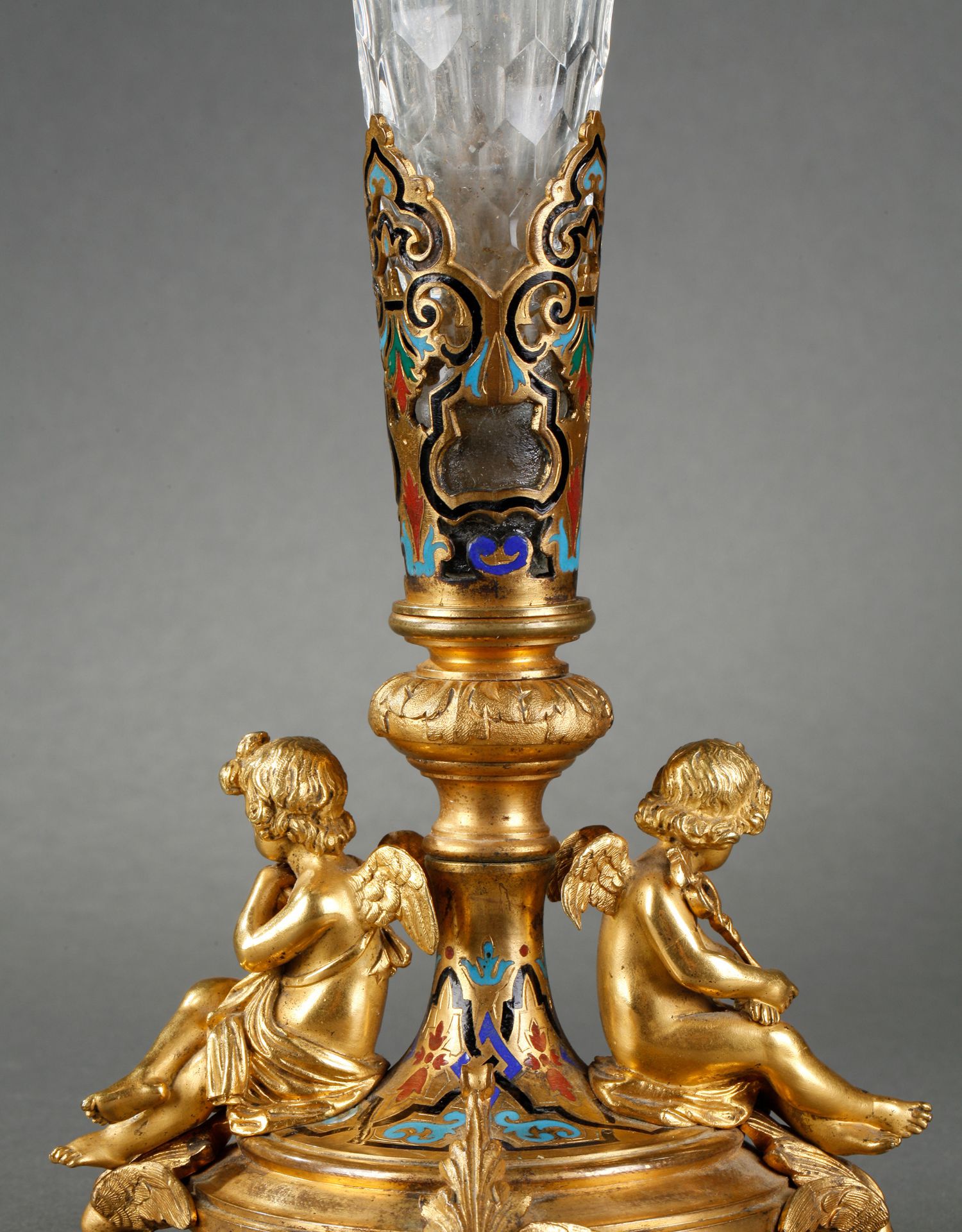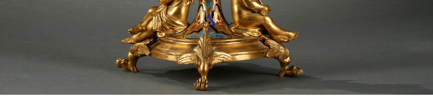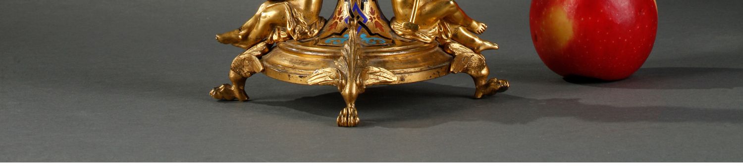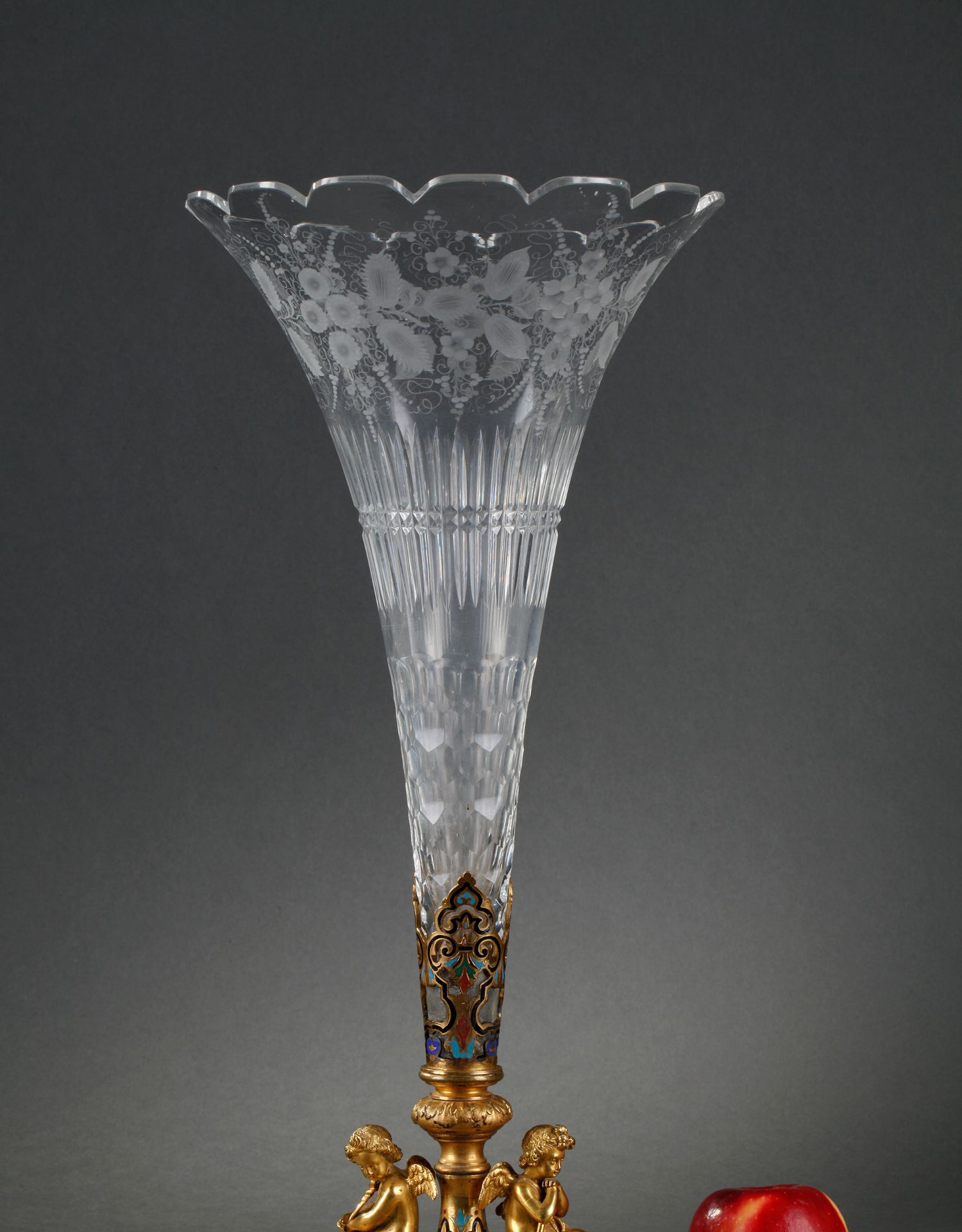 独角鹿西洋古董摆件法国铜鎏金饰錾胎珐琅小天使主题水晶花瓶