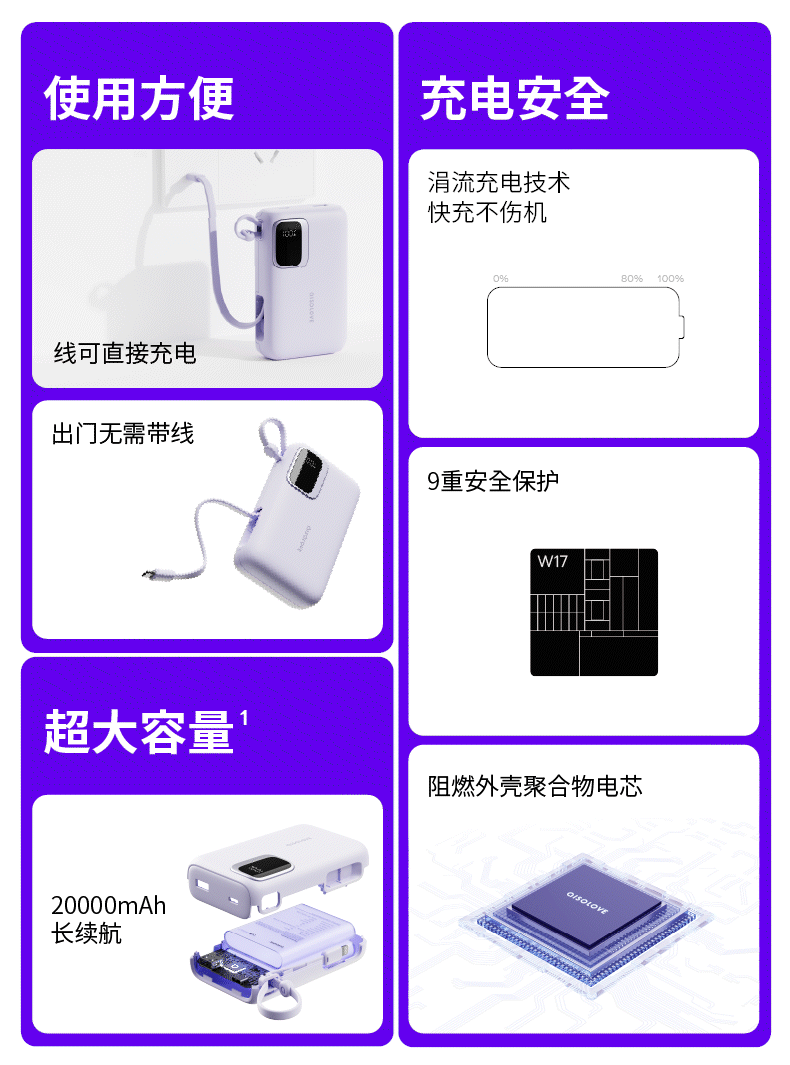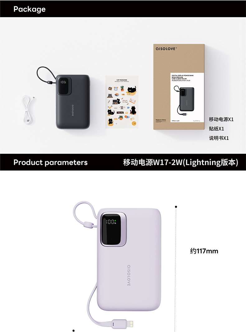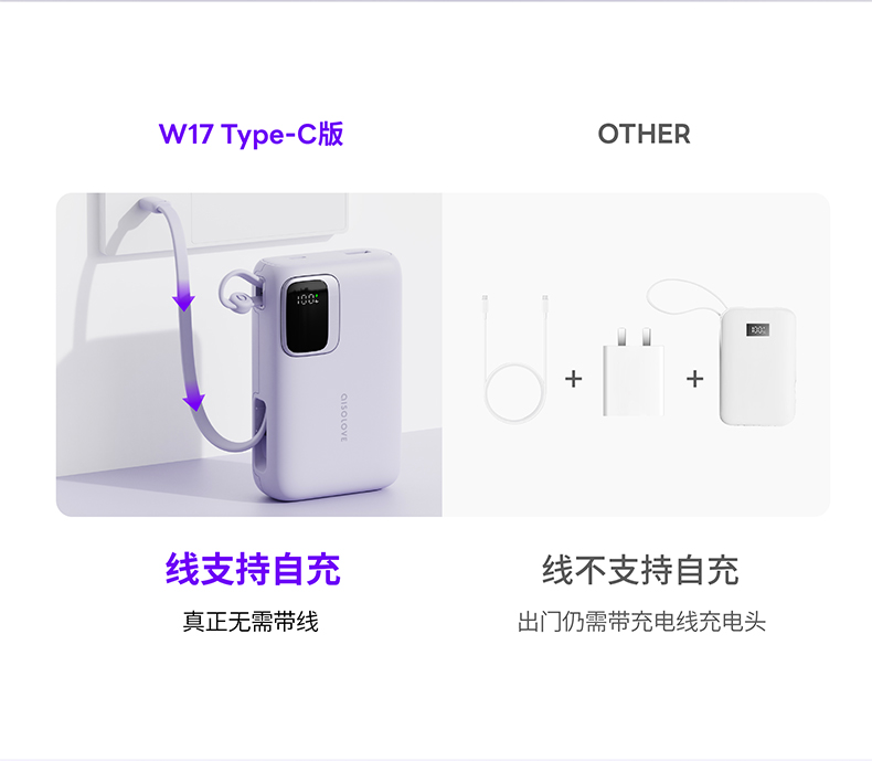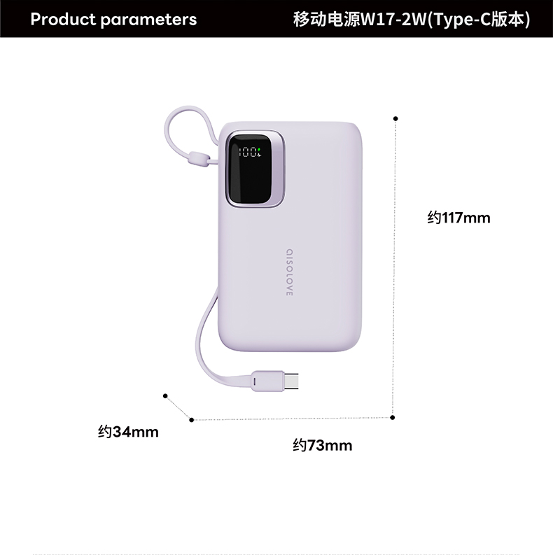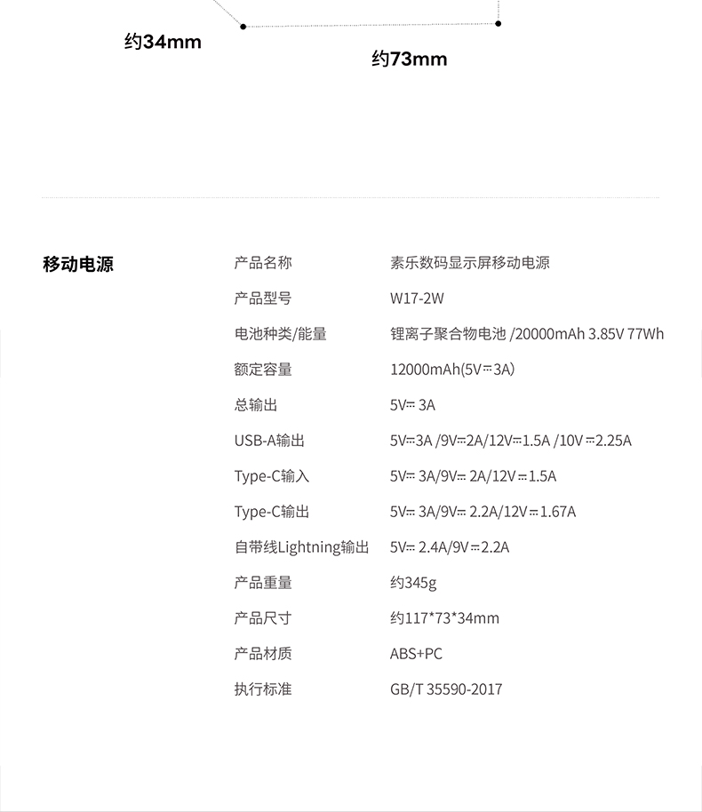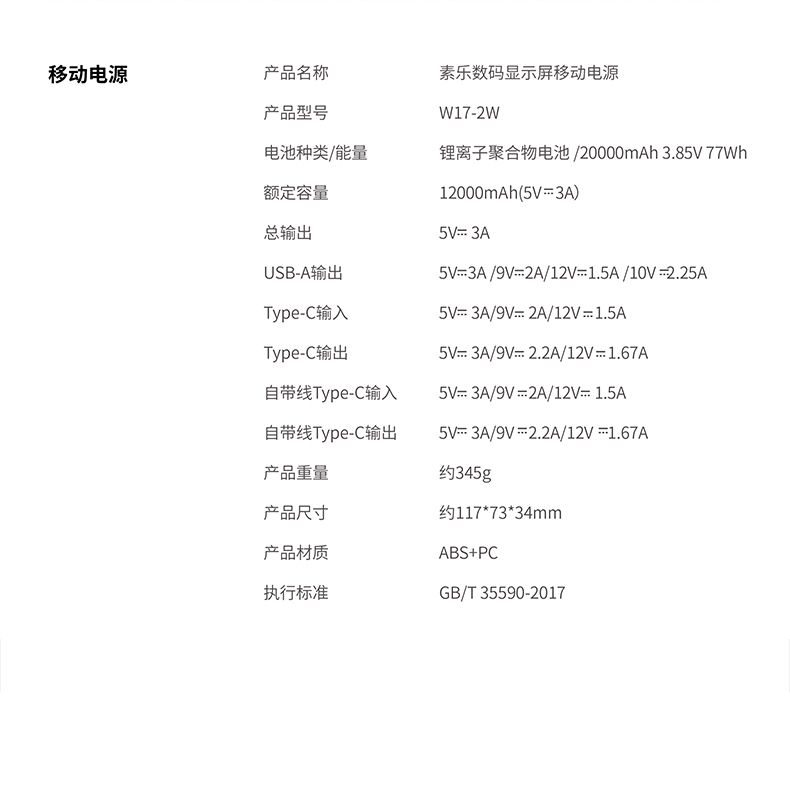 素乐 SOLOVE W17-1W数码显示屏移动电源-Type-C版