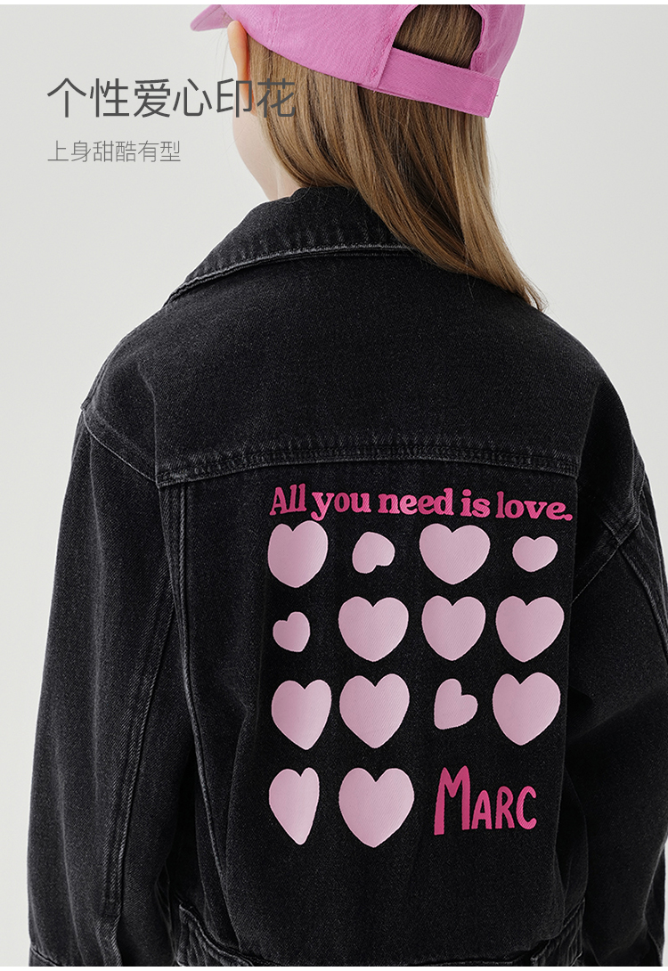 【商场同款】马克珍妮女童爱心印花软牛仔外套儿童夹克秋装241358