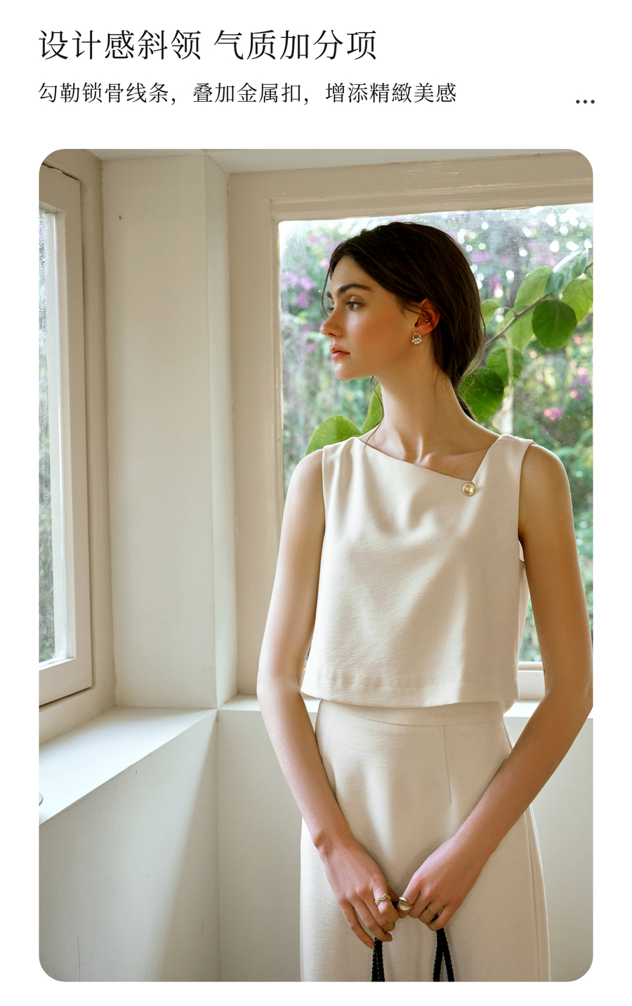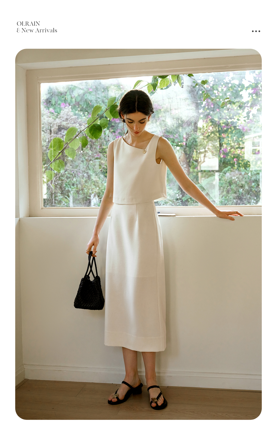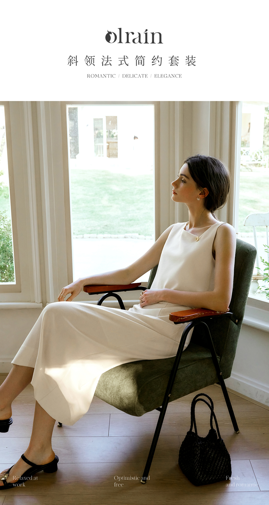 OLrain欧芮儿法式时尚套装女夏季2025年新款通勤简约斜领两件套