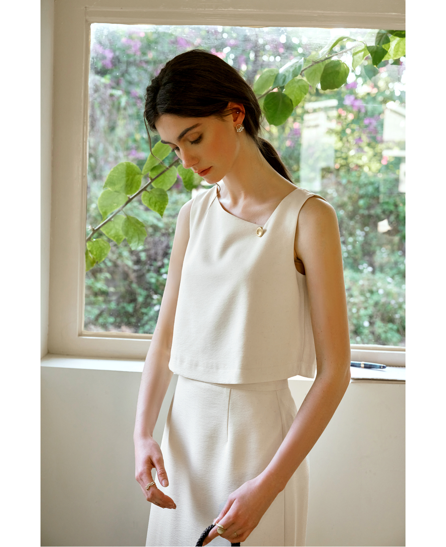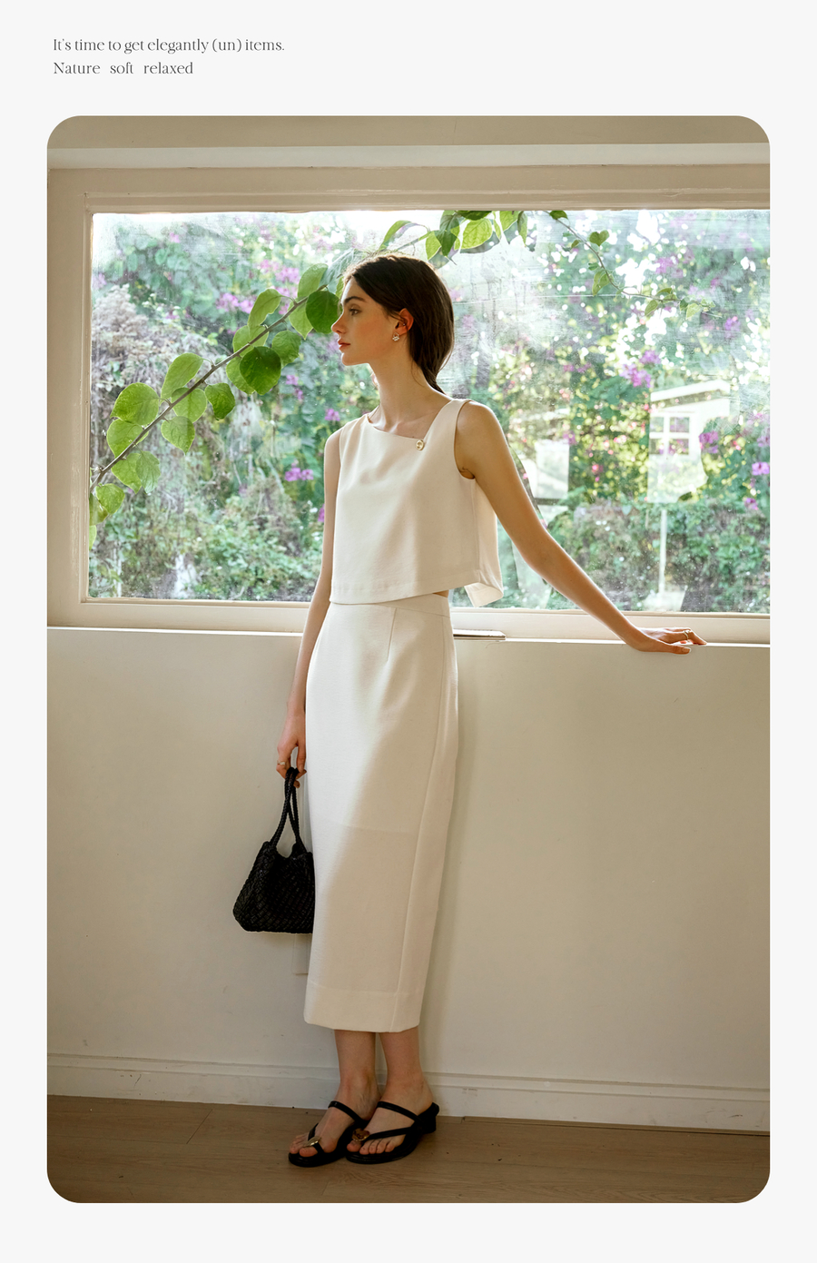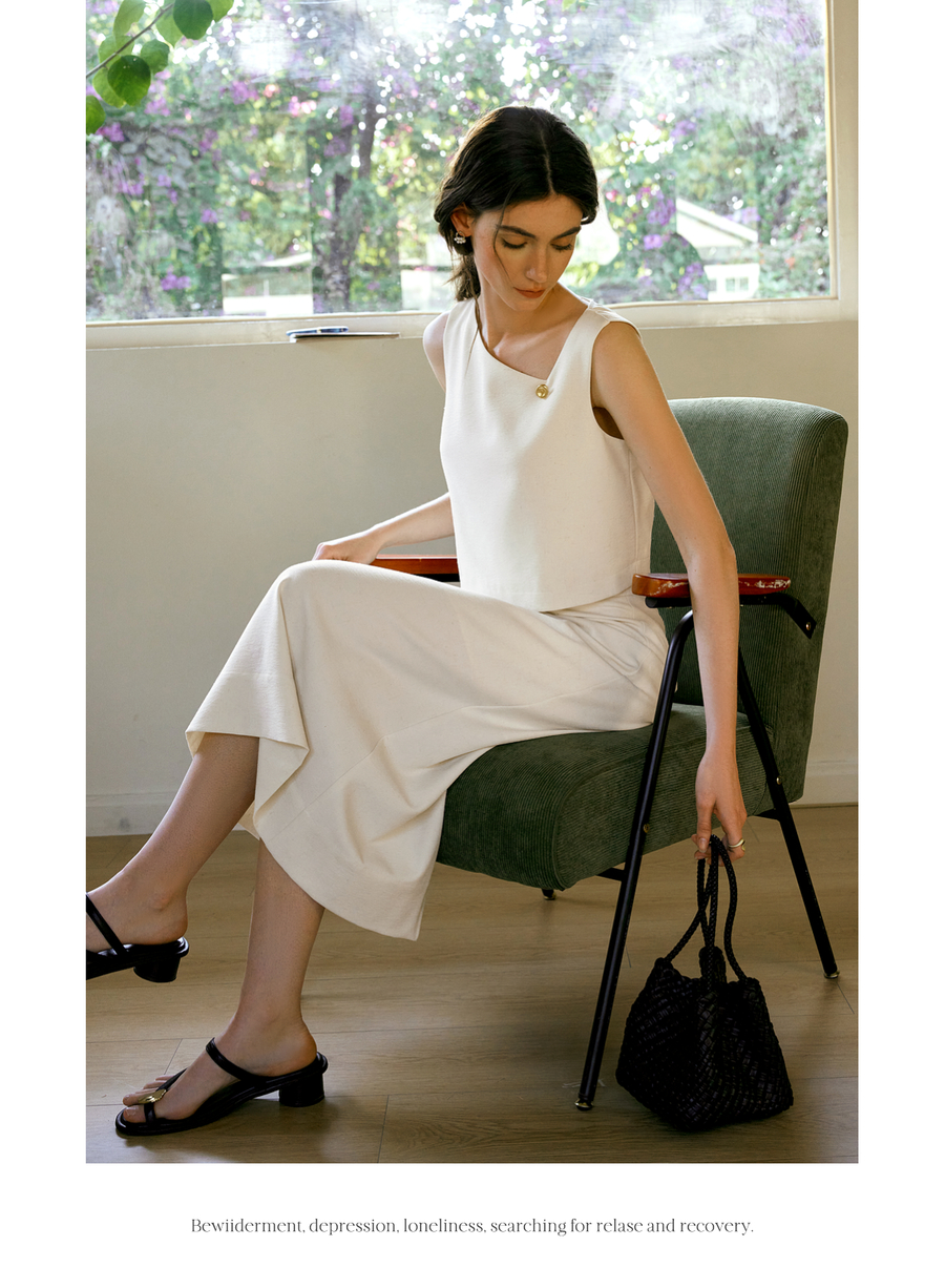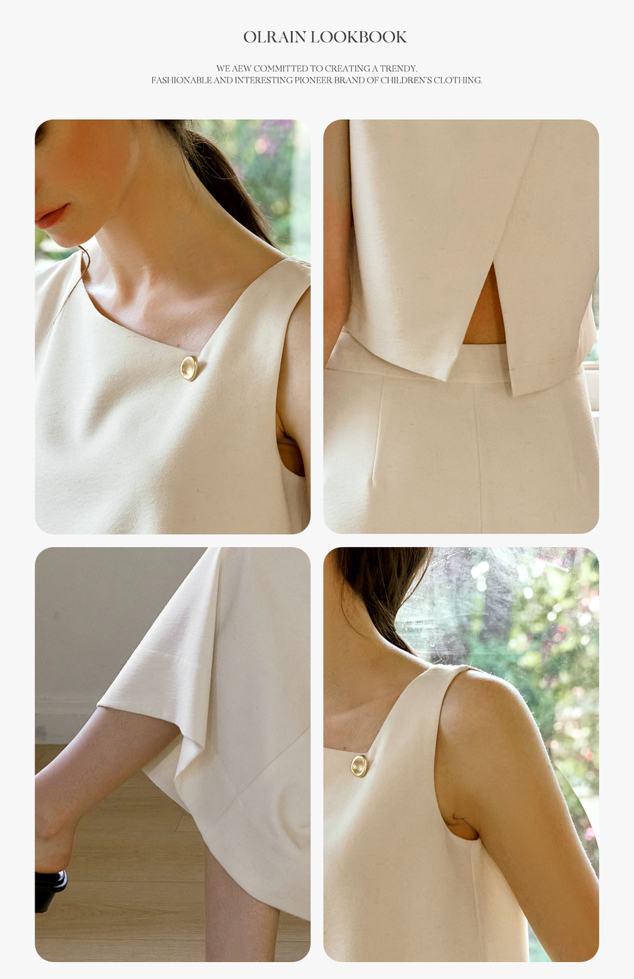 OLrain欧芮儿法式时尚套装女夏季2025年新款通勤简约斜领两件套