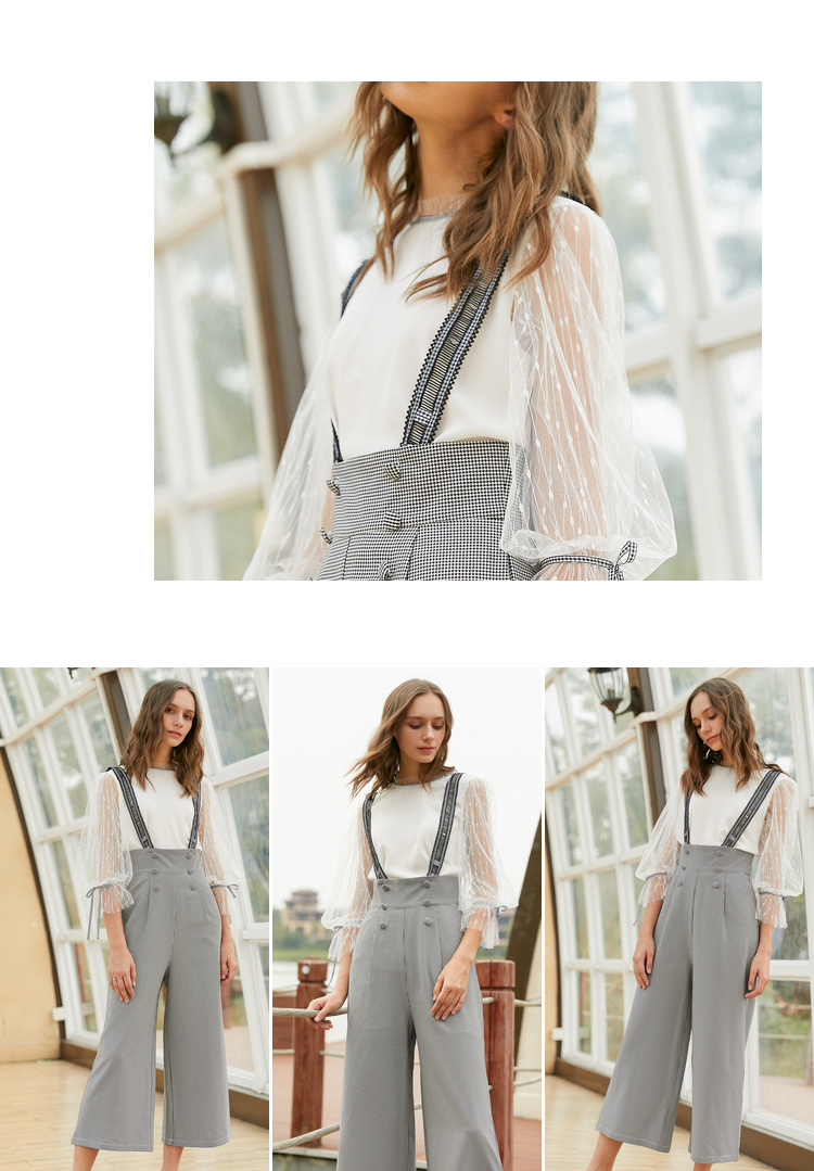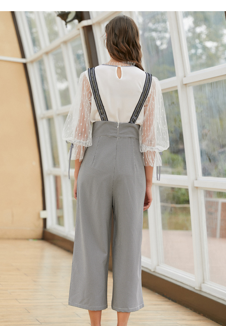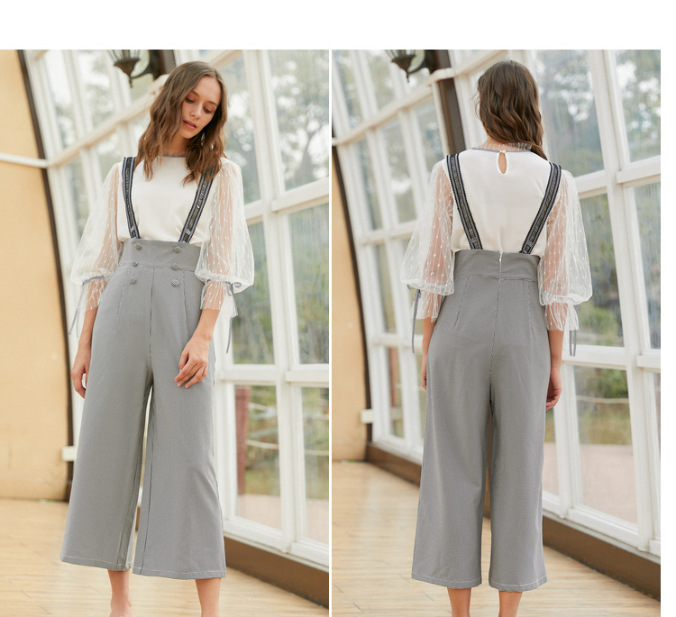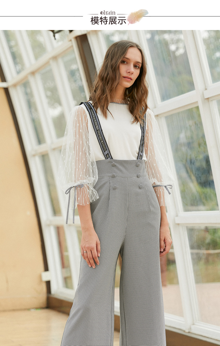 欧芮儿阔腿裤两件套秋冬女2018新款百搭蕾丝衫吊背带套装潮