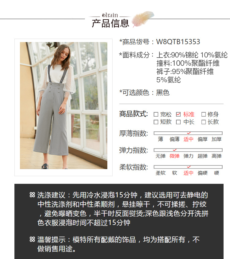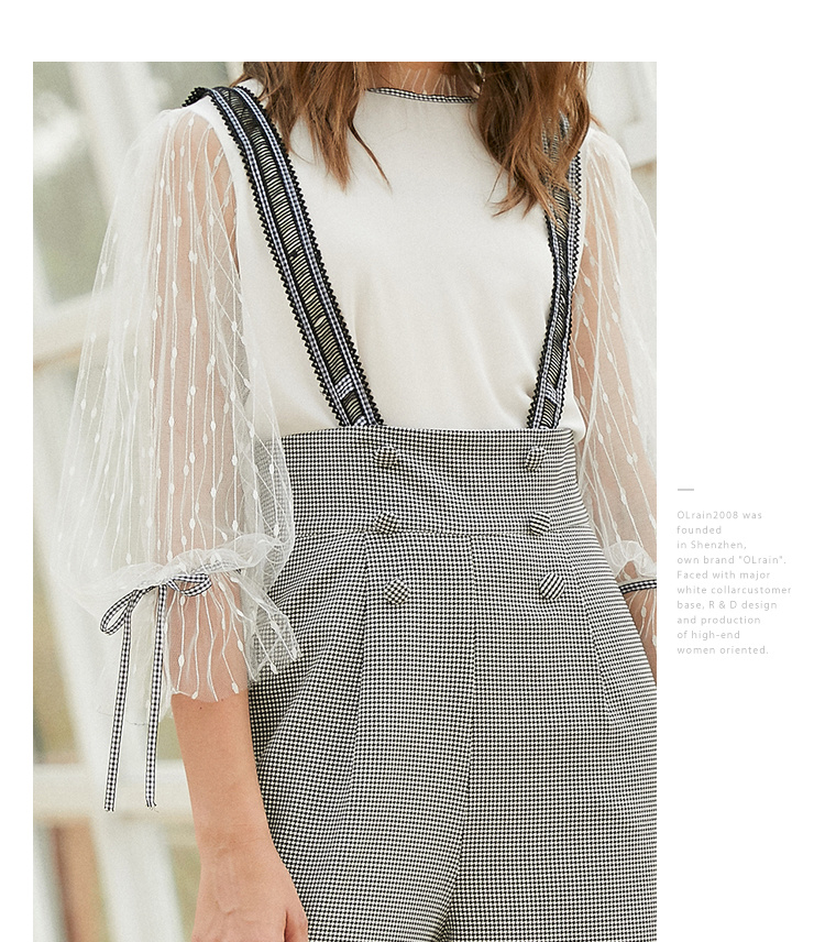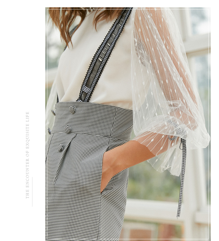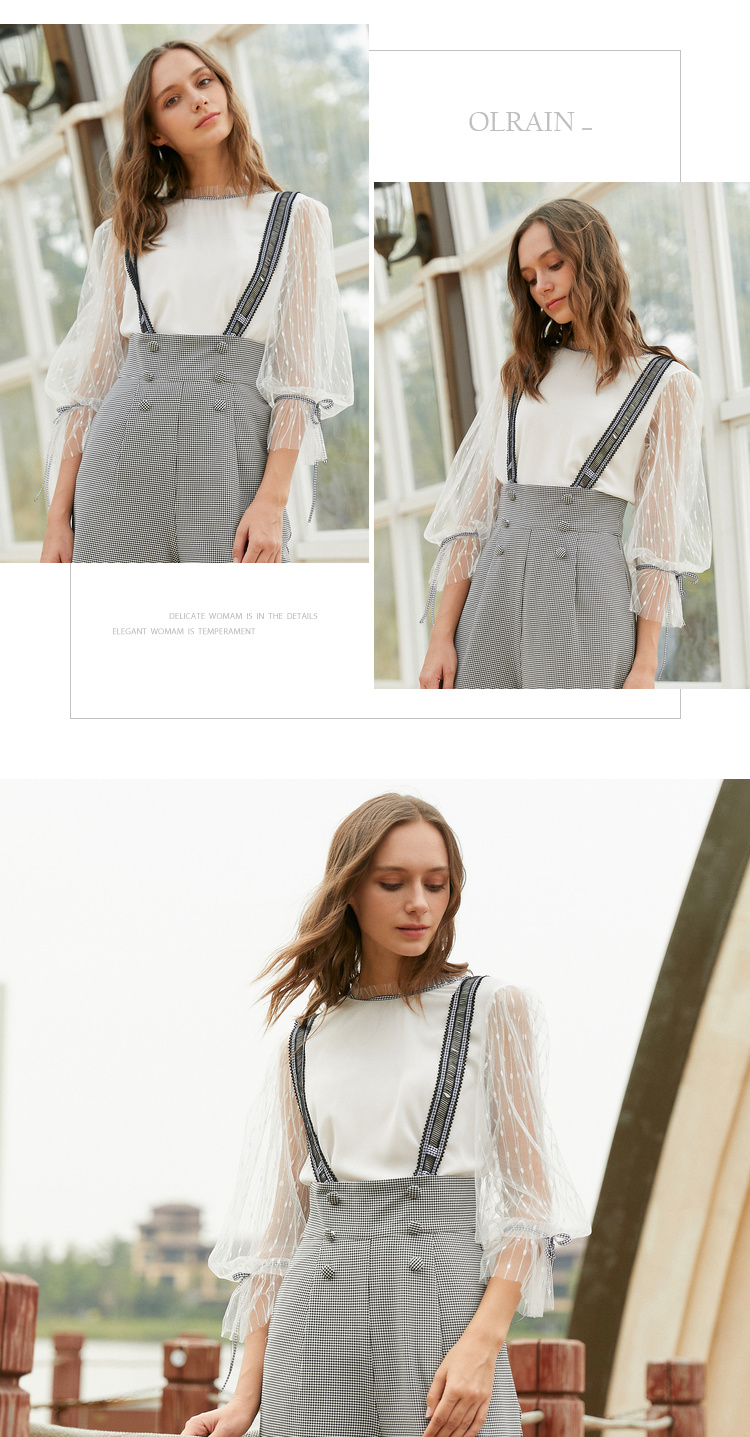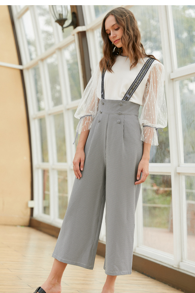 欧芮儿阔腿裤两件套秋冬女2018新款百搭蕾丝衫吊背带套装潮