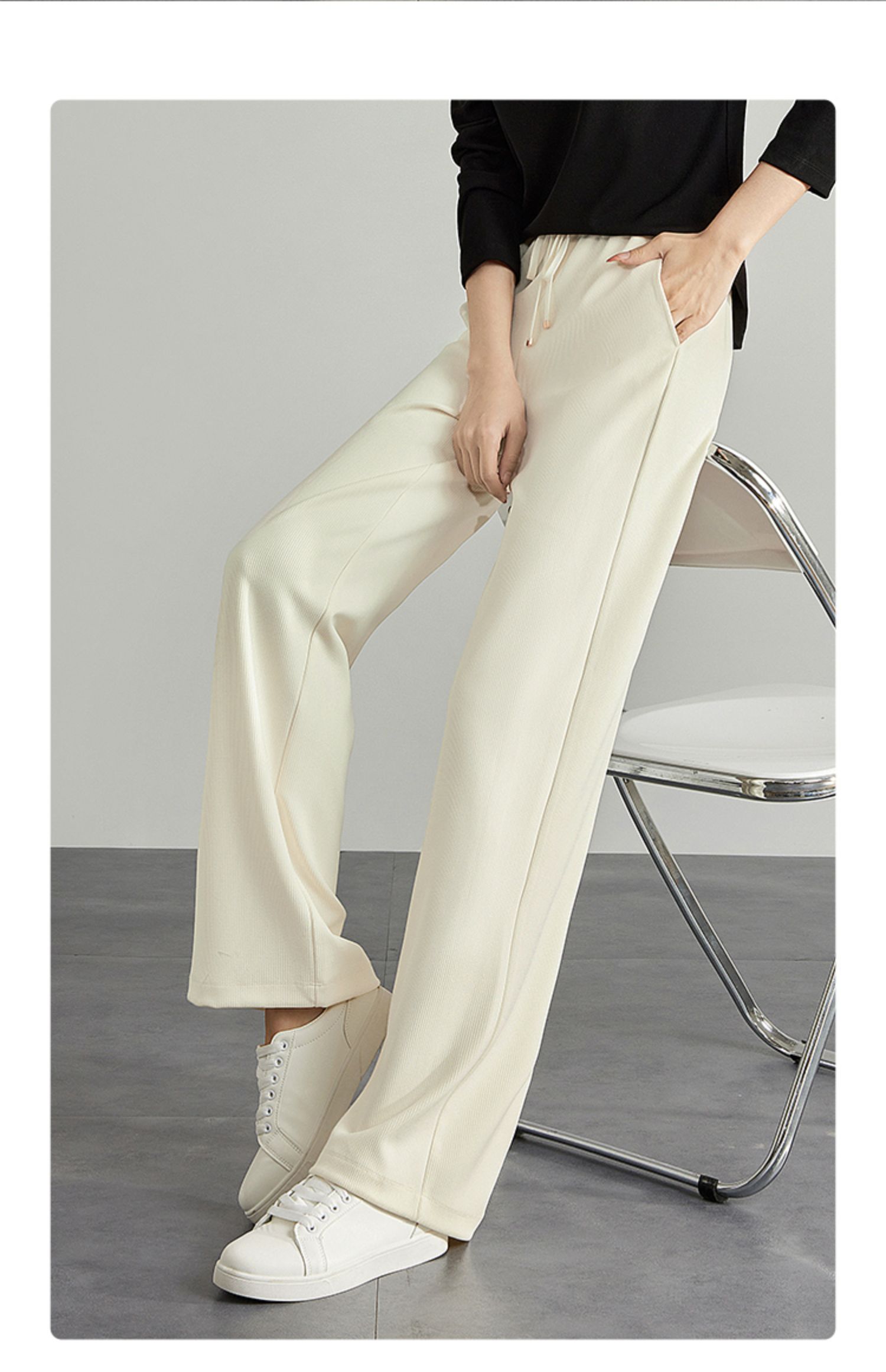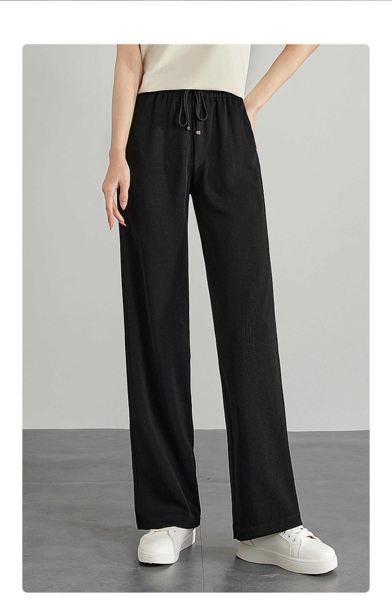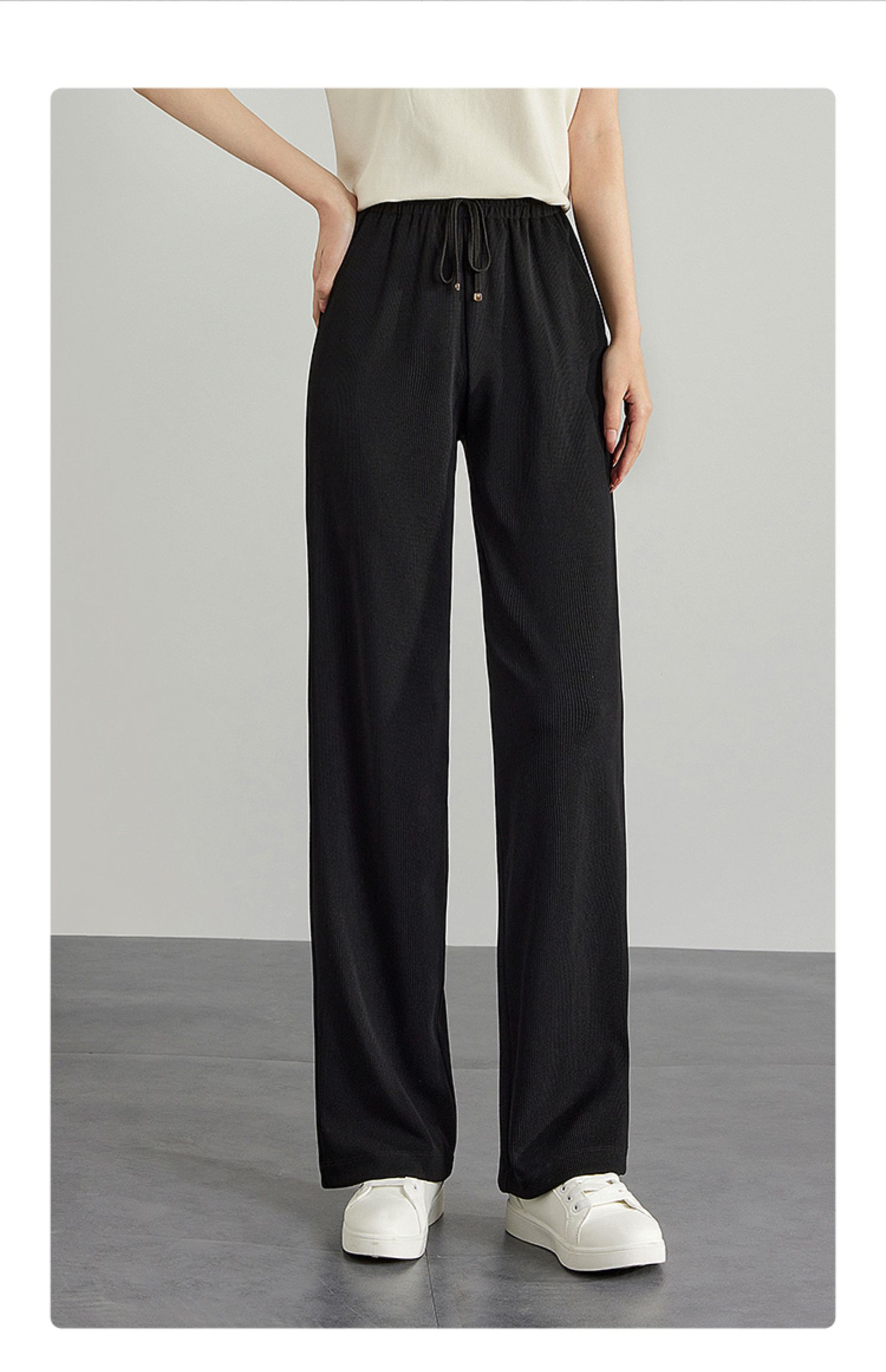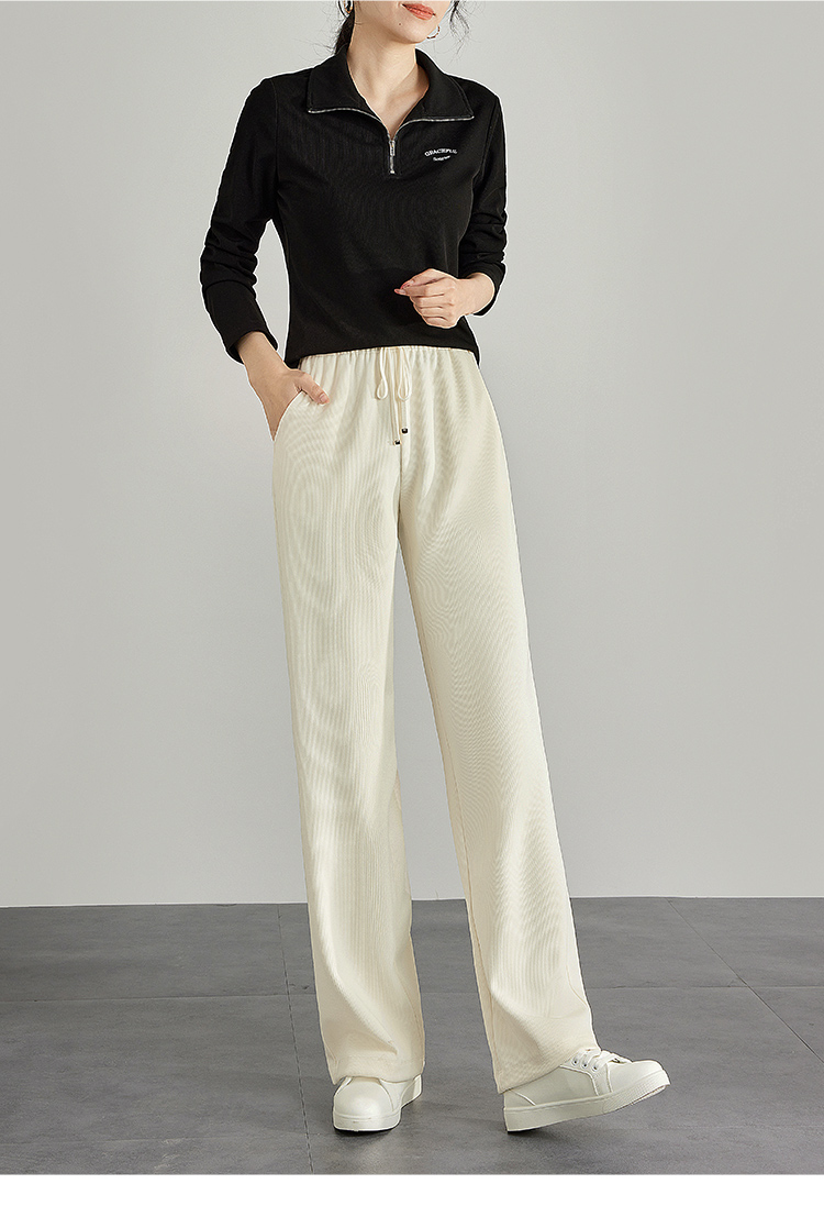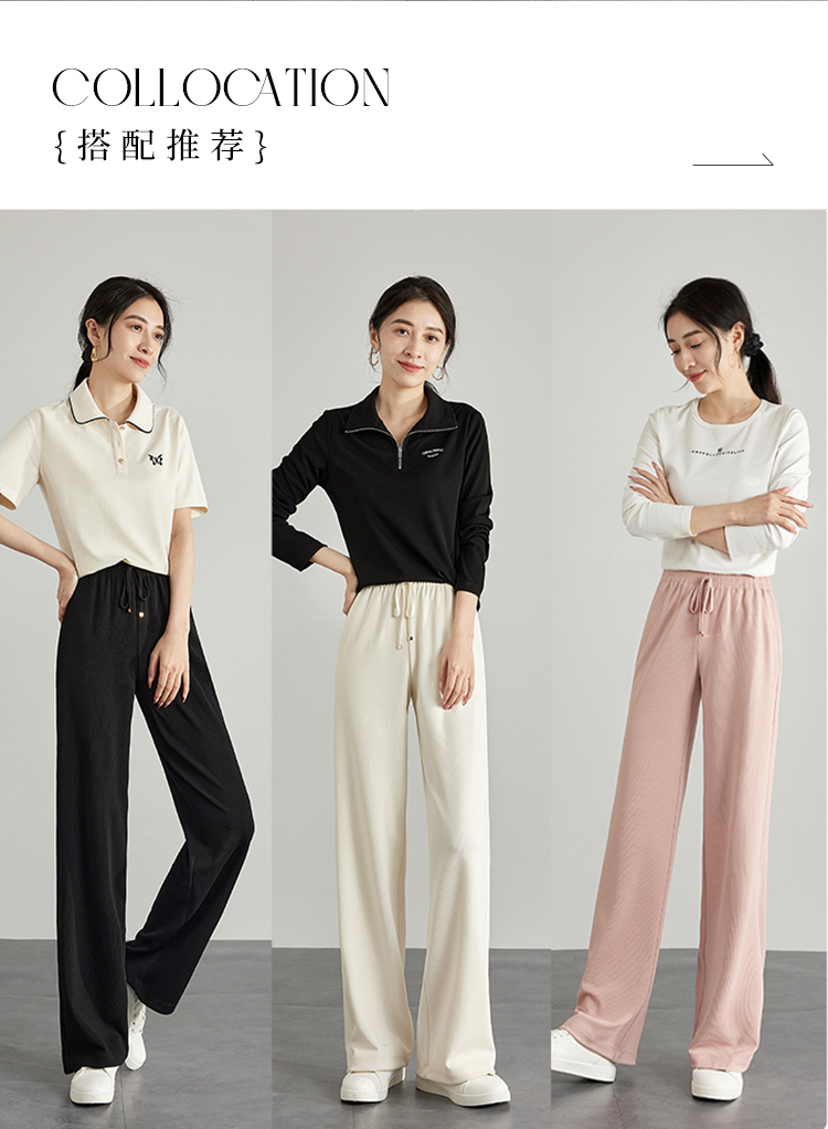 【专属特价】熙世界高腰阔腿裤女2025春新款宽松运动直筒休闲裤显高显瘦长裤