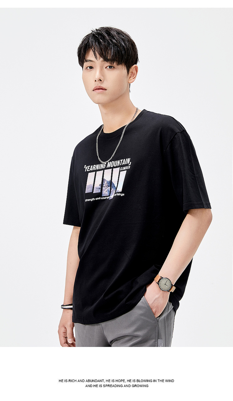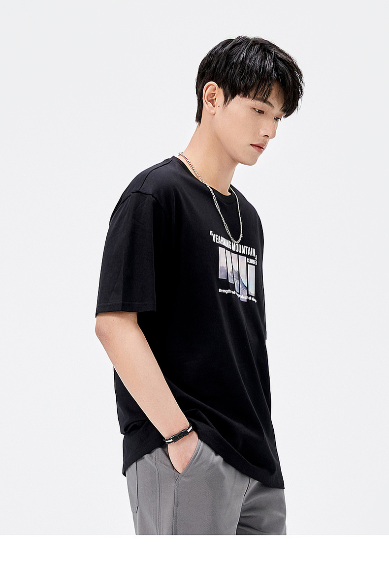 GXG男装【100%棉】夏季时尚字母印花男款圆领百搭短袖T恤潮K&C