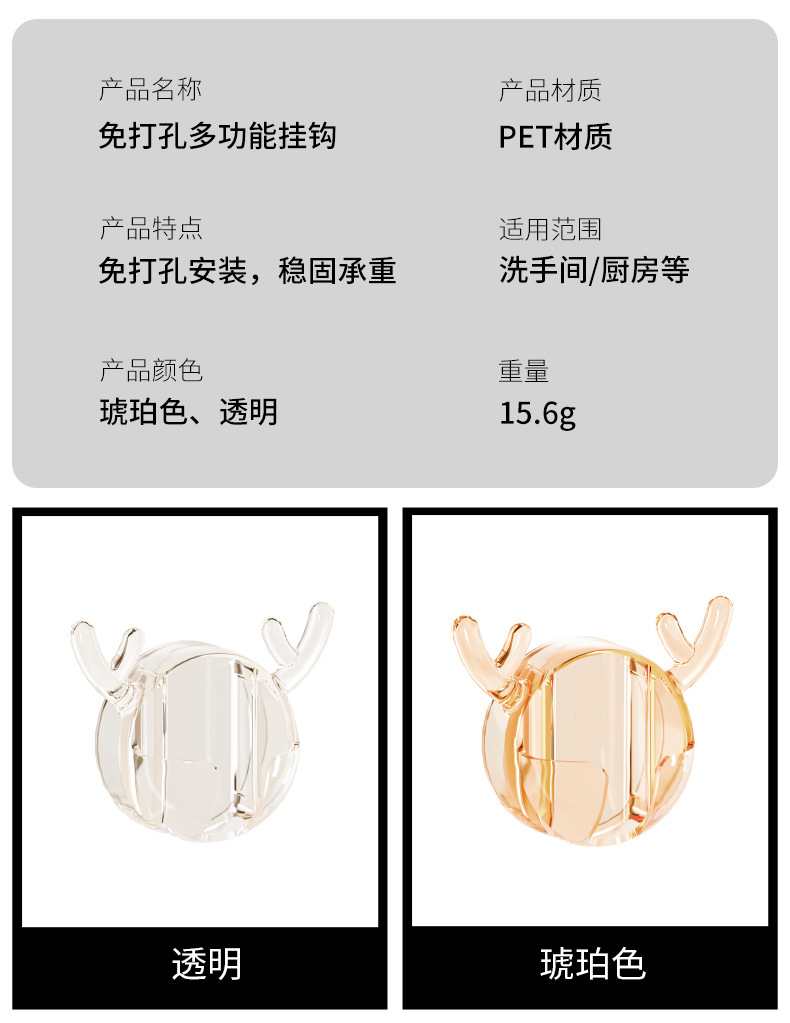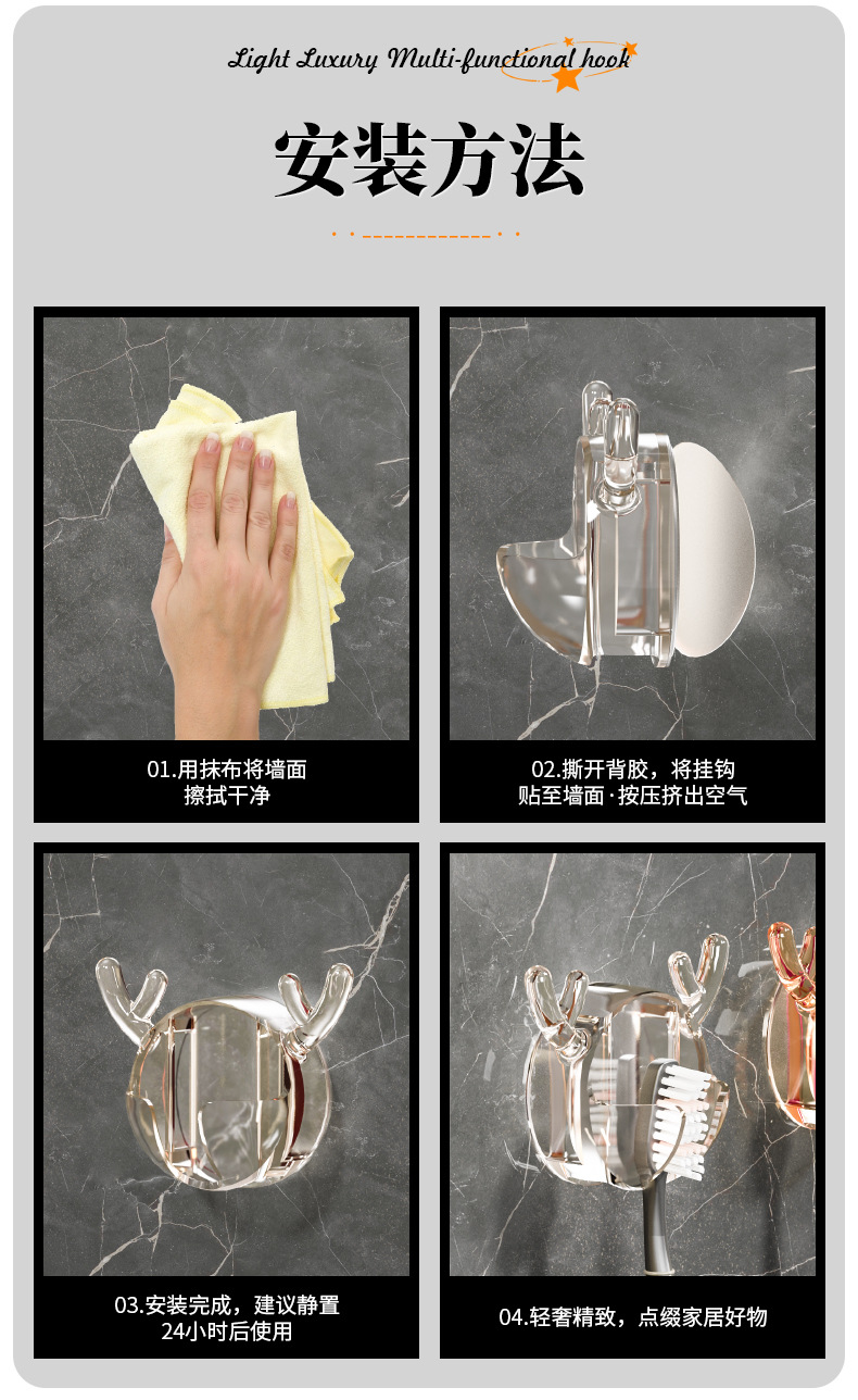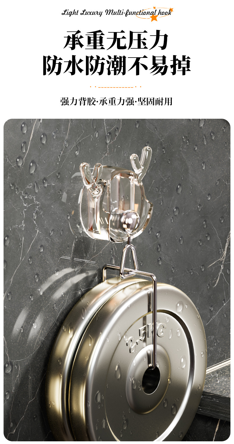 「10个装!多功能设计」鹿角牙刷置物架 居家日用卡通可爱插头挂钩剃须刀收纳整理架 浴室免打孔粘钩挂架