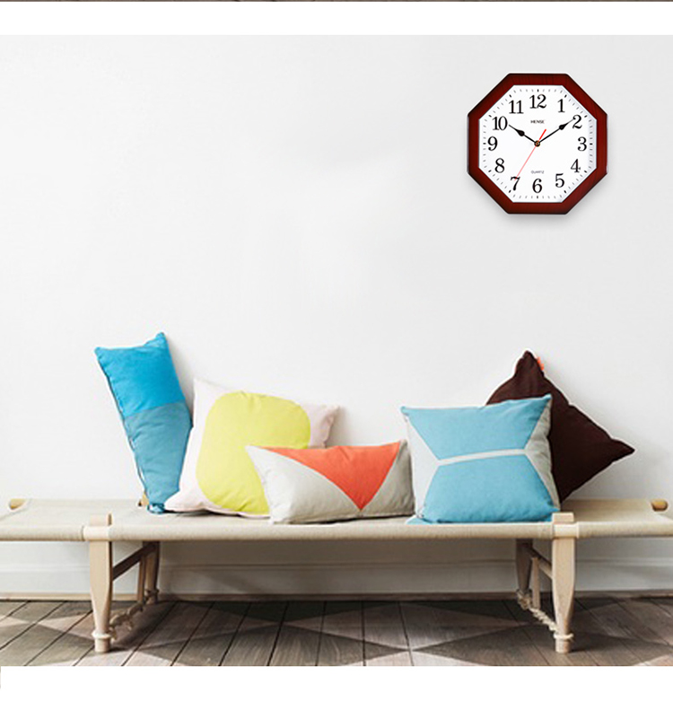 汉时(Hense)中式客厅挂钟复古八角时钟简约创意挂表经典石英钟表HW52红木色