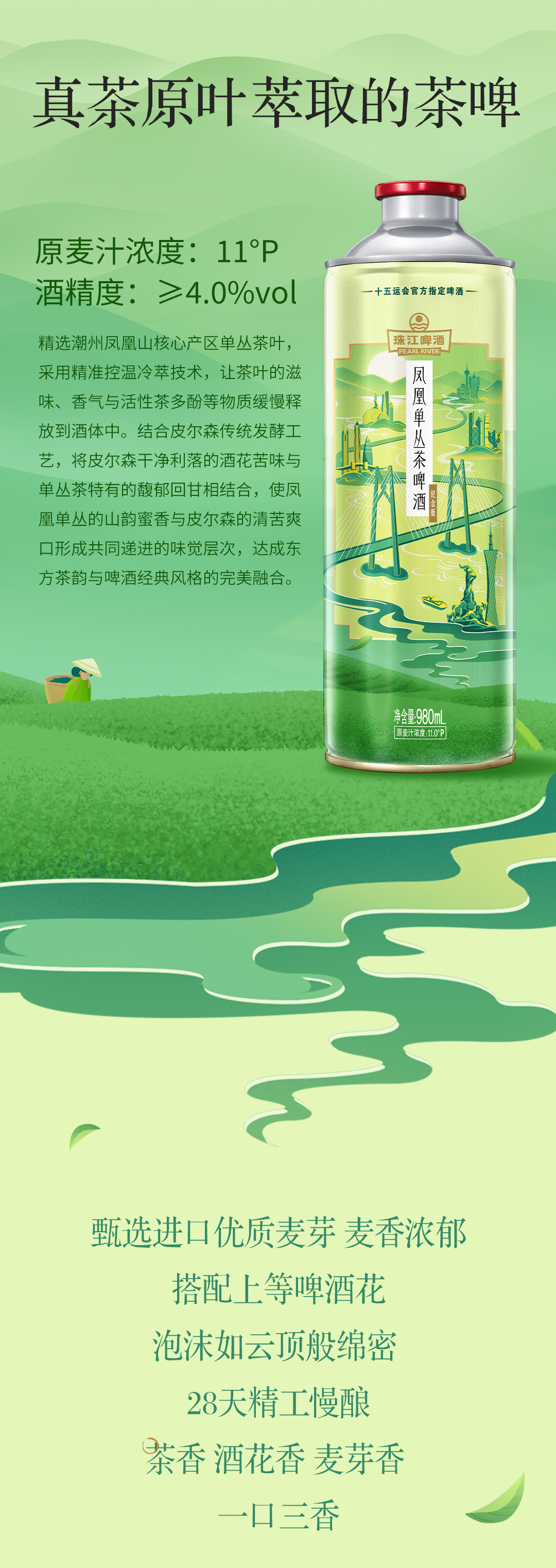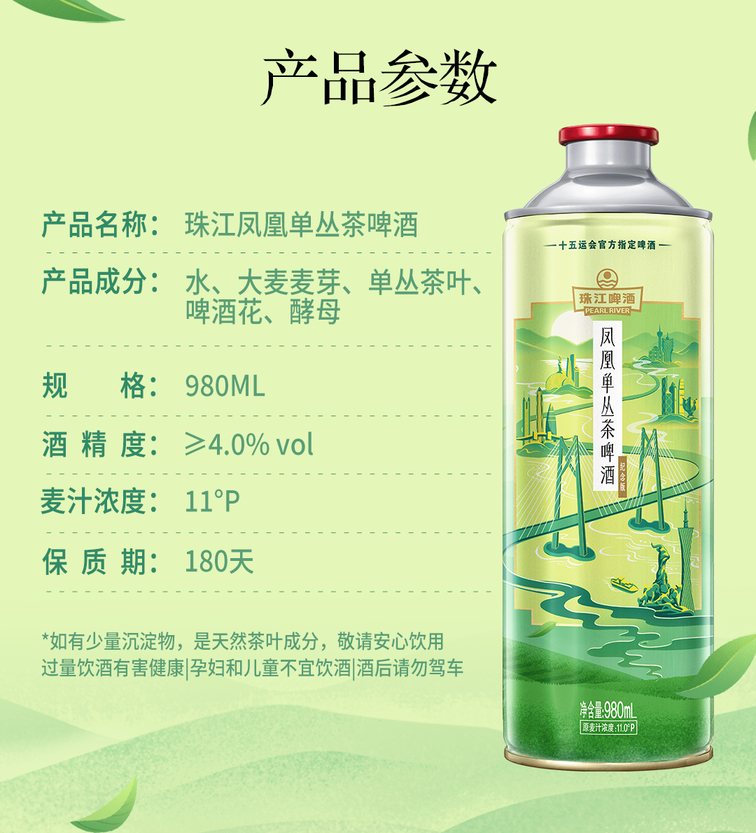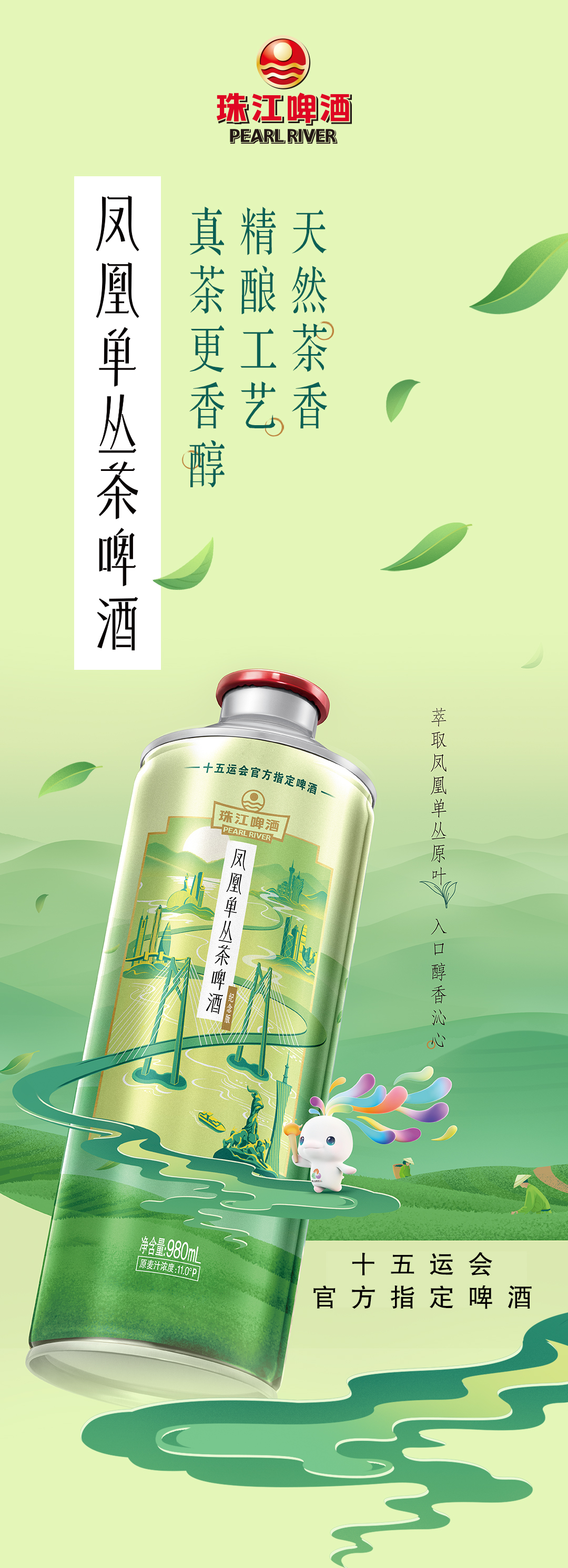 「十五运会官方指定啤酒」11°P珠江凤凰单丛茶啤酒 980mL*6罐装