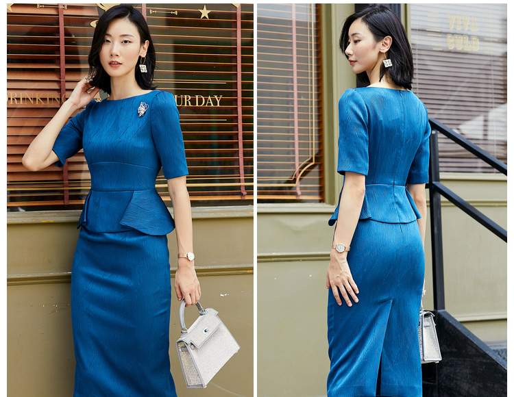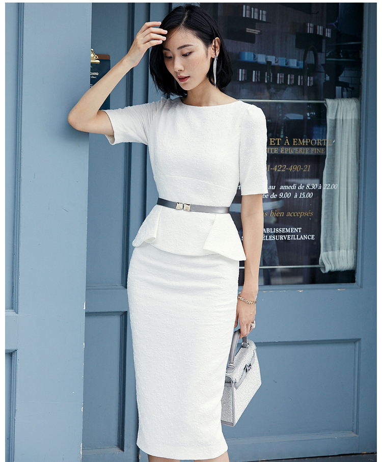 孤品- “荷叶下的秘密” 颈袖添香季新款职场连衣裙女时尚ol修身长袖商务正装包臀裙J7180032T1X5不退可换