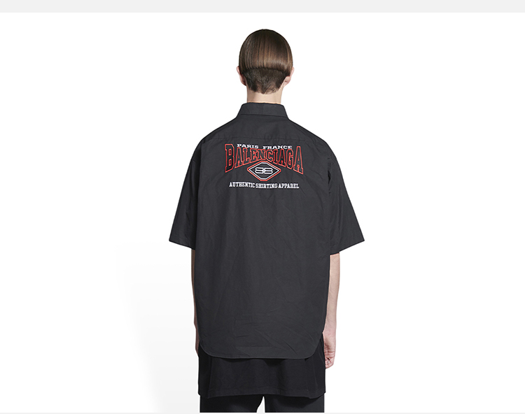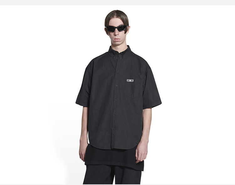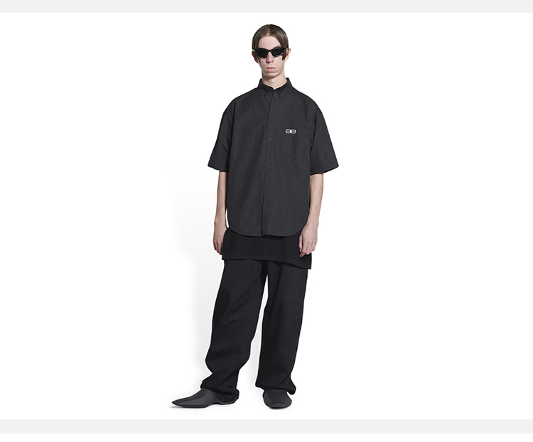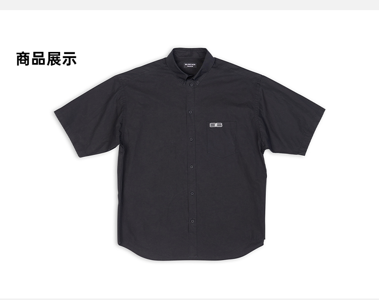 BALENCIAGA 巴黎世家 男士棉质府绸大号 BB Icon徽标刺绣短袖衬衫 黑色 699057 TYB18 1000