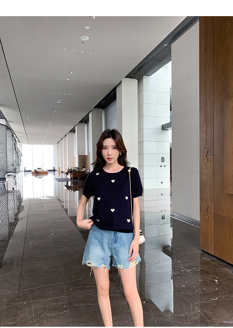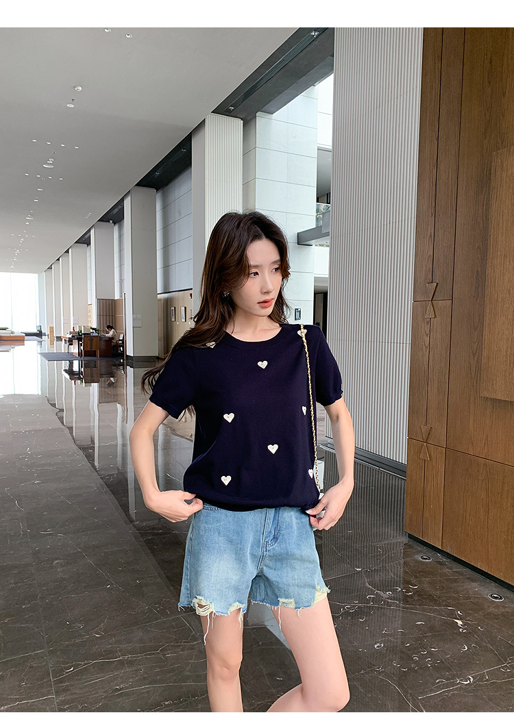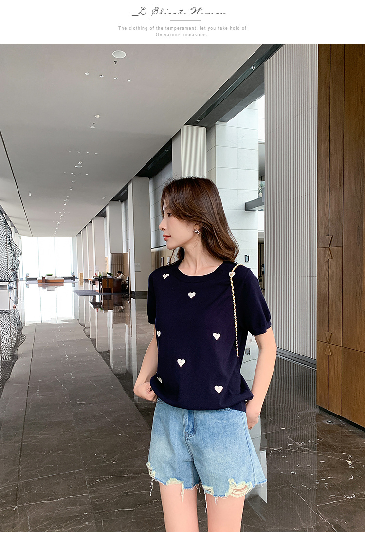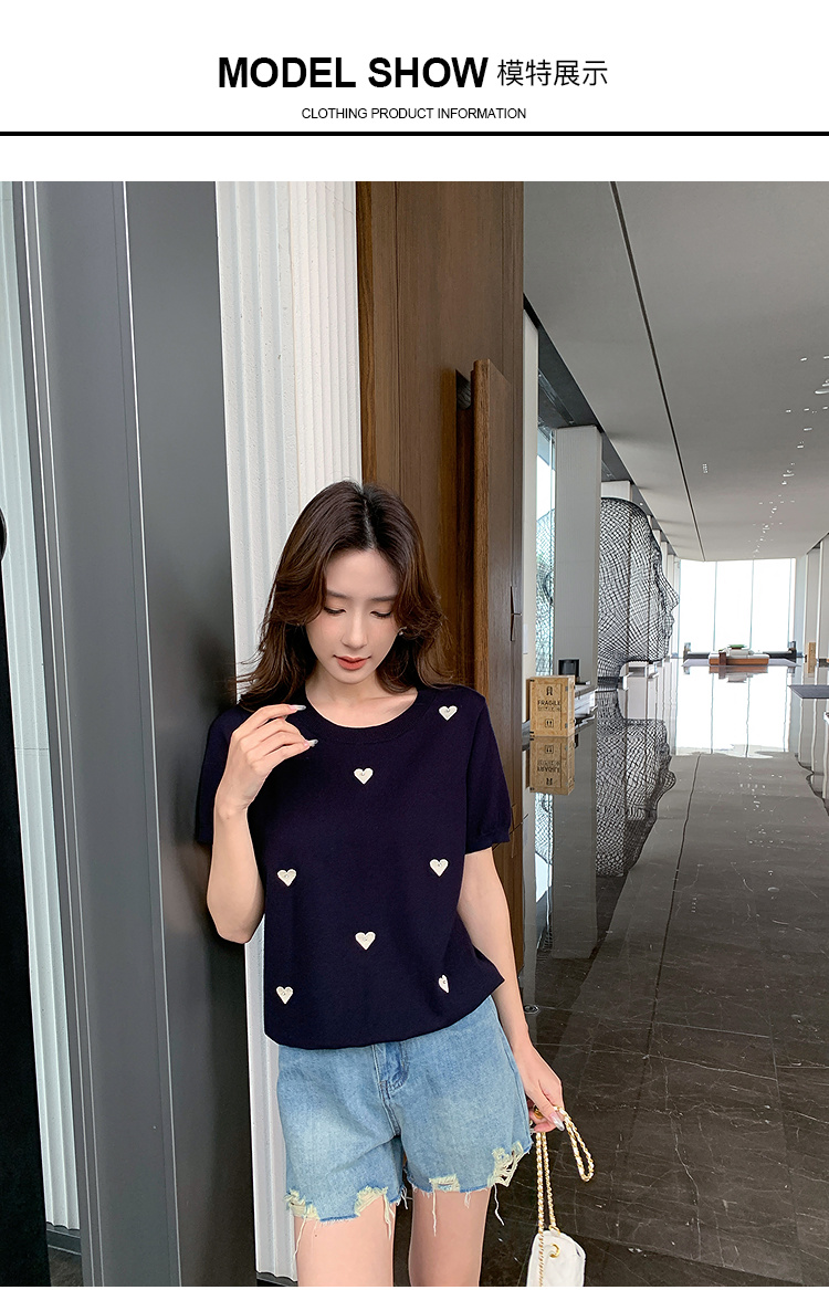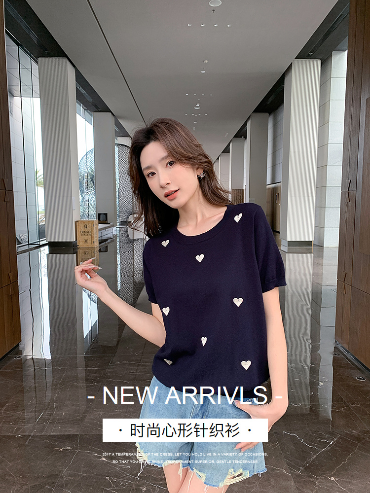奢姿大码女装2025夏季减龄心形图案百搭针织衫胖妹妹时尚简约上衣9652621752