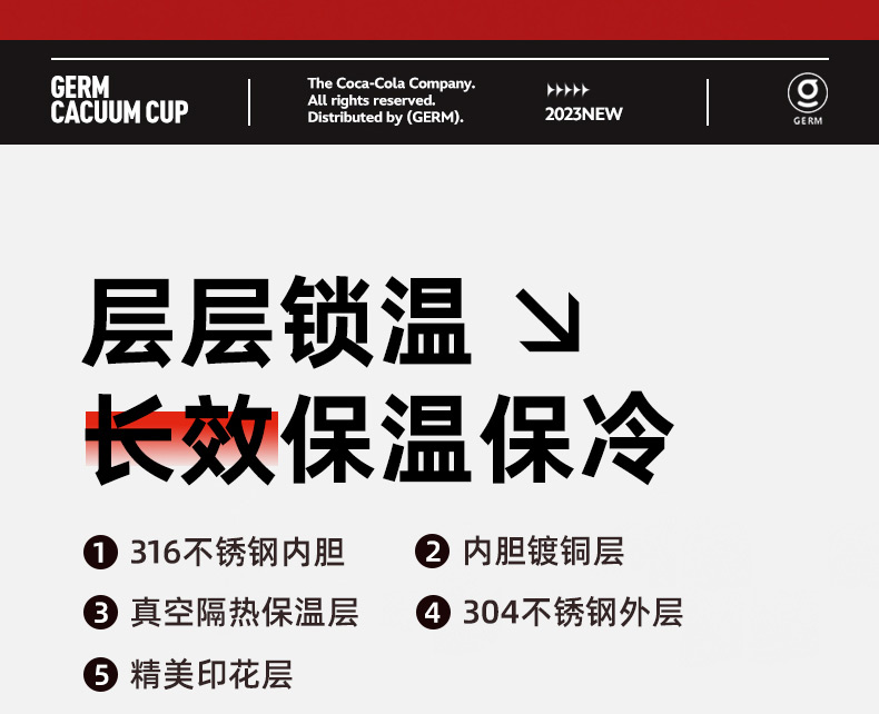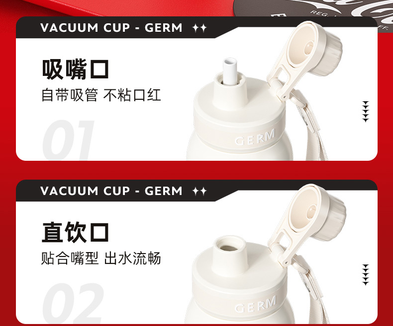 GERM 可乐运动保温杯亲子款大容量316不锈钢吸管车载便携水壶(奥运冠军同款杯)