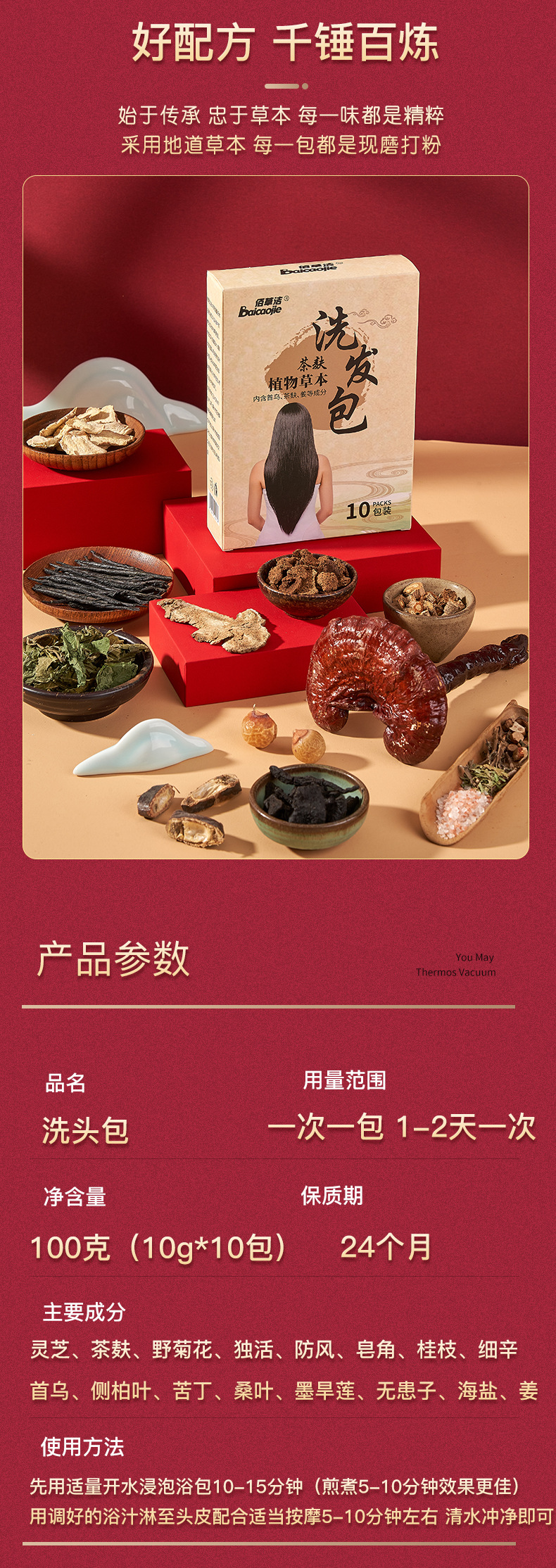 【给头发喝中药】中药茶麸洗发包 16味中药成分 头发出油毛囊堵塞 清理不当头皮屑多 护发养发黑发固发 16种原料草本配方 洗发水洗发露洗头膏10包/盒