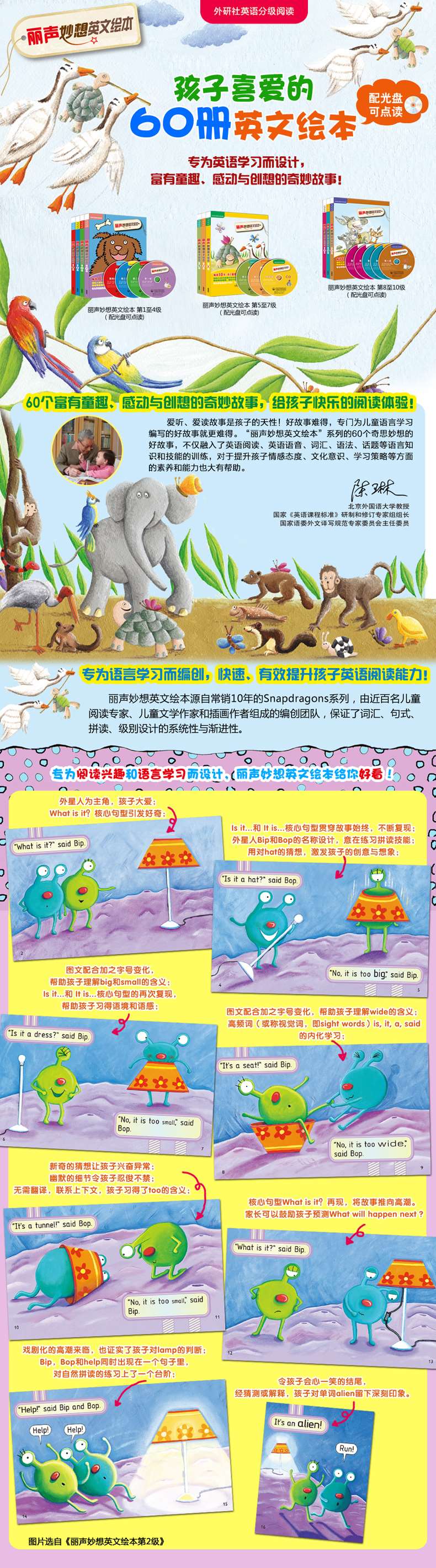书名:丽声妙想英文绘本第六级 (外研社英语分级阅读)(点读版)(配光盘)60个妙想故事畅销10年,孩子最爱英文绘本