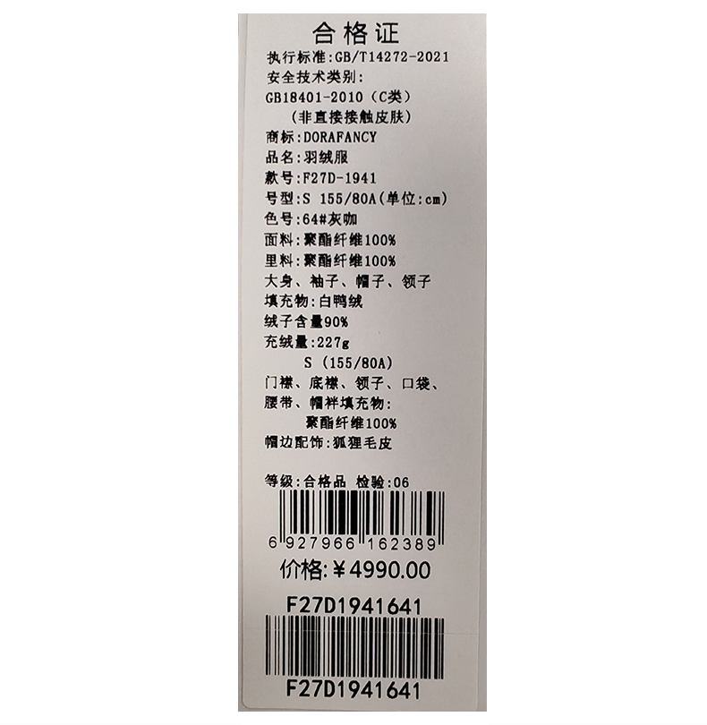 朵拉梵西羽绒服F27D1941