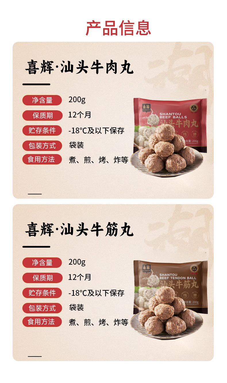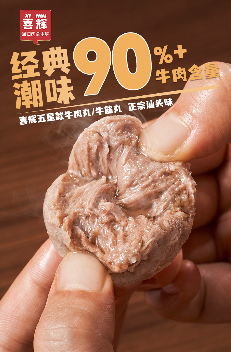 喜辉汕头风味牛肉丸/牛筋丸 七星款新版/五星款 鲜香弹嫩甄选品质 Q弹爆汁火锅鲜美食材