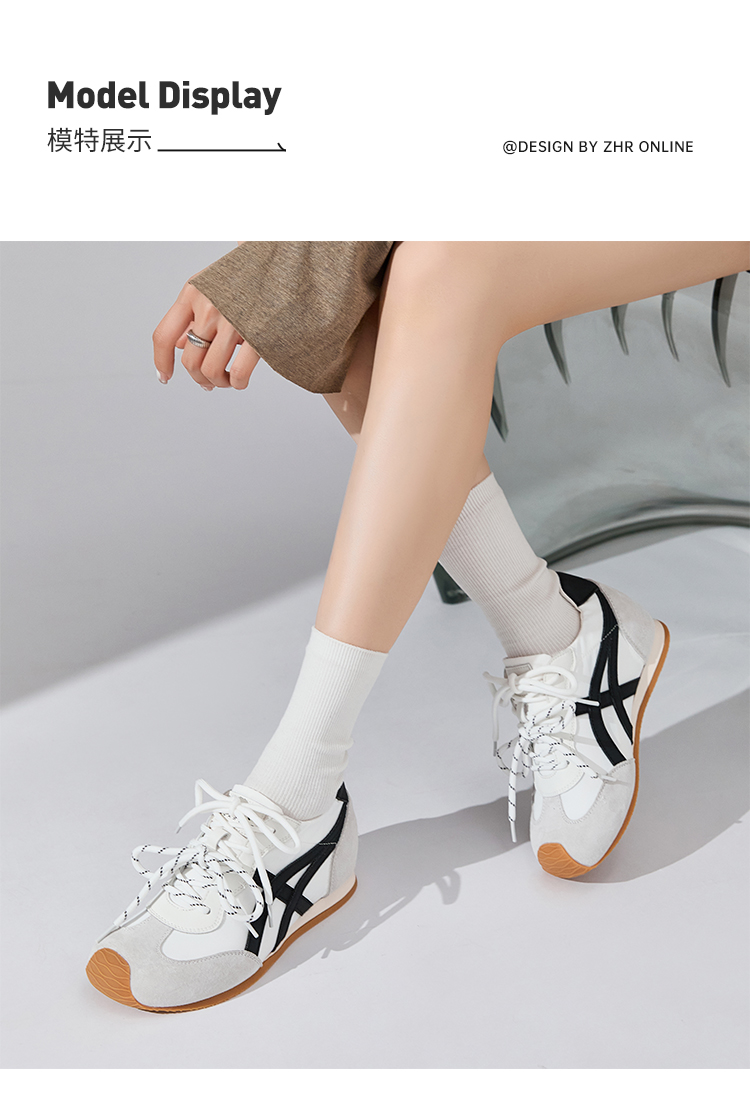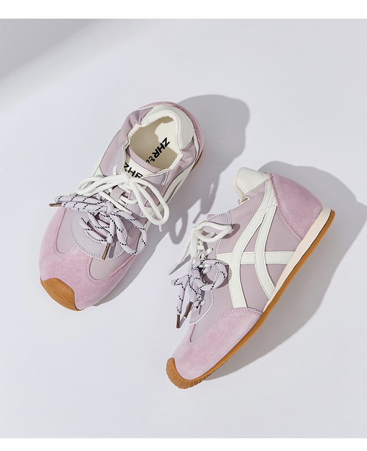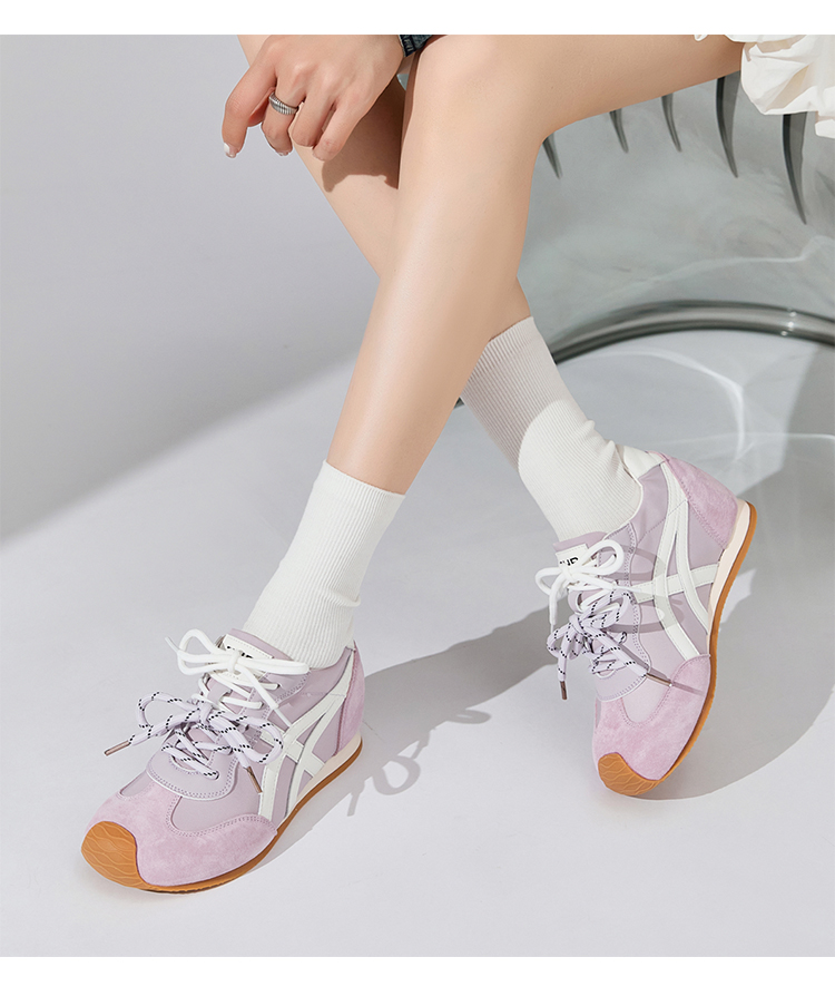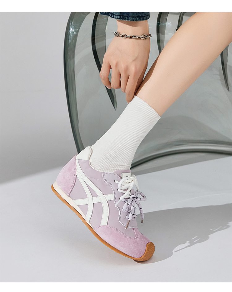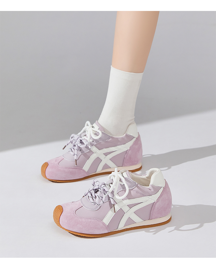 ZHR内增高5cm复古阿甘鞋2025新款紫色芭蕾风网面德训鞋女双鞋带