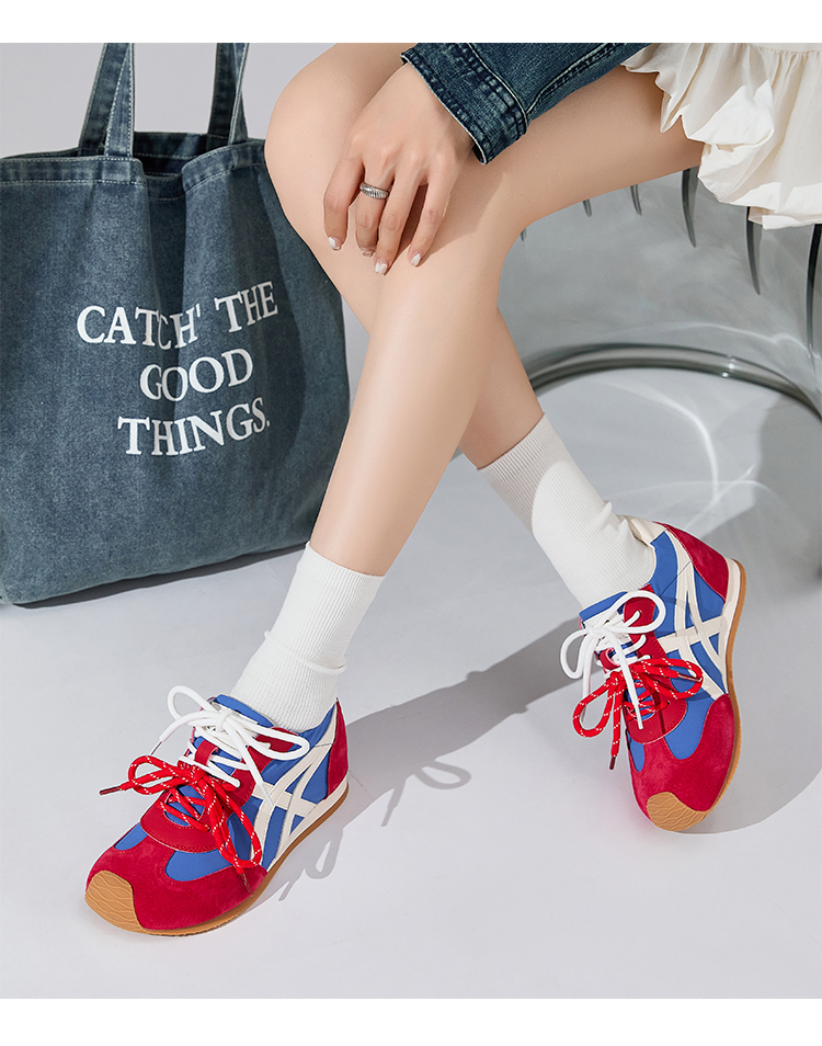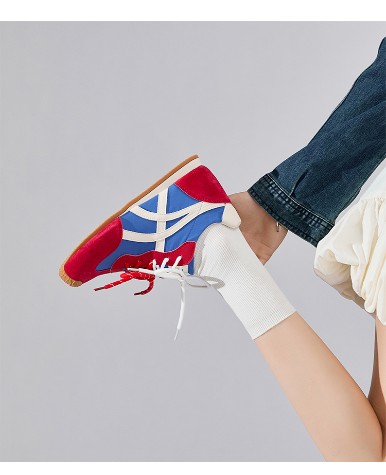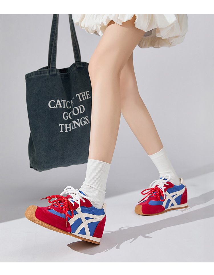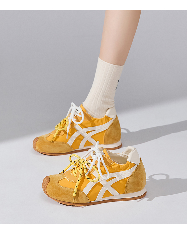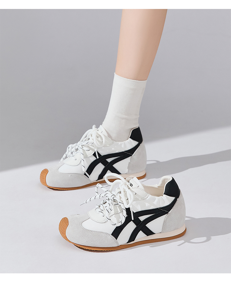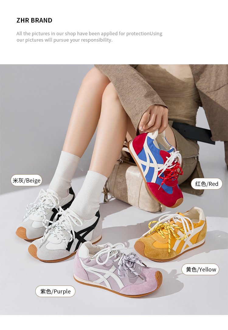 ZHR内增高5cm复古阿甘鞋2025新款紫色芭蕾风网面德训鞋女双鞋带