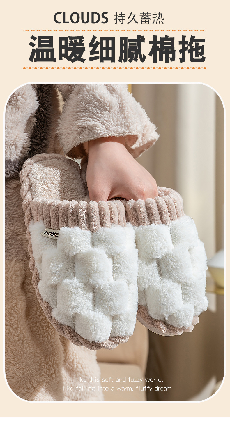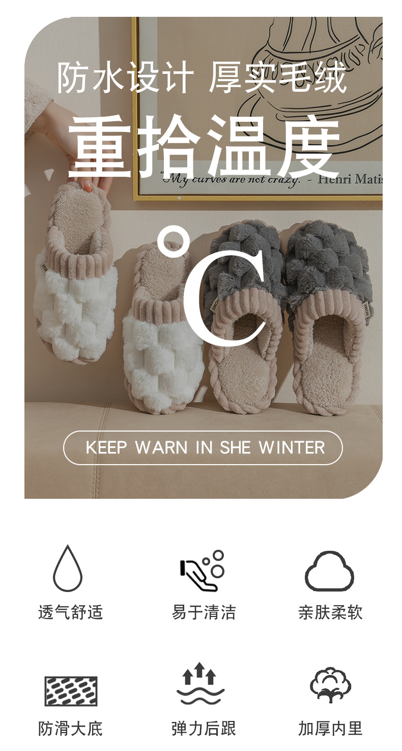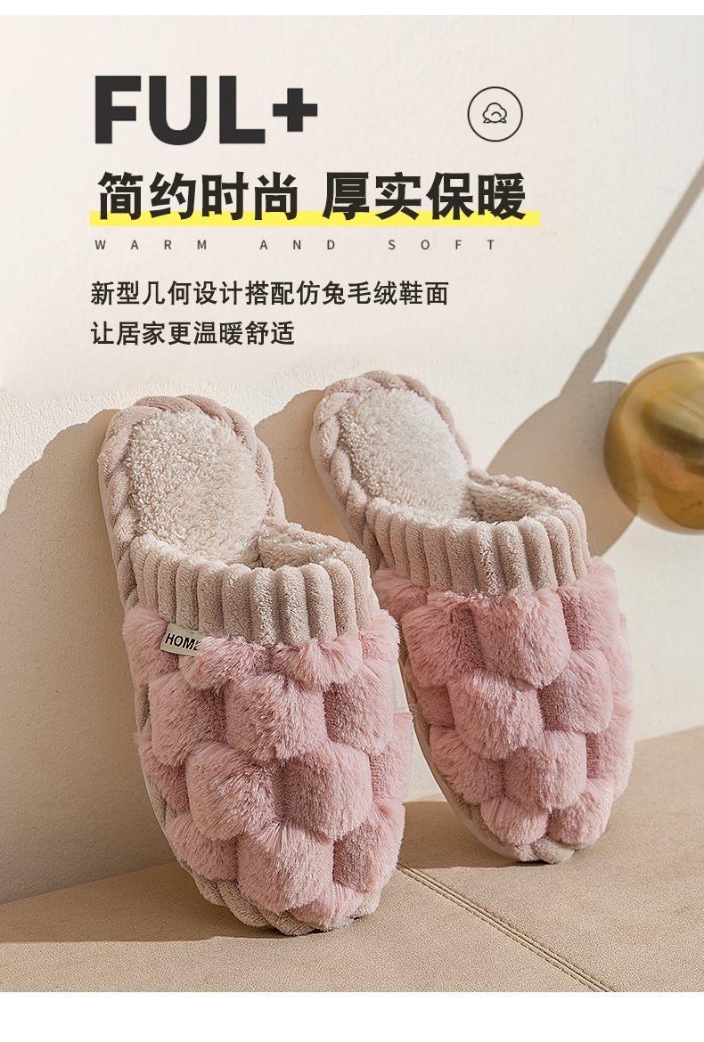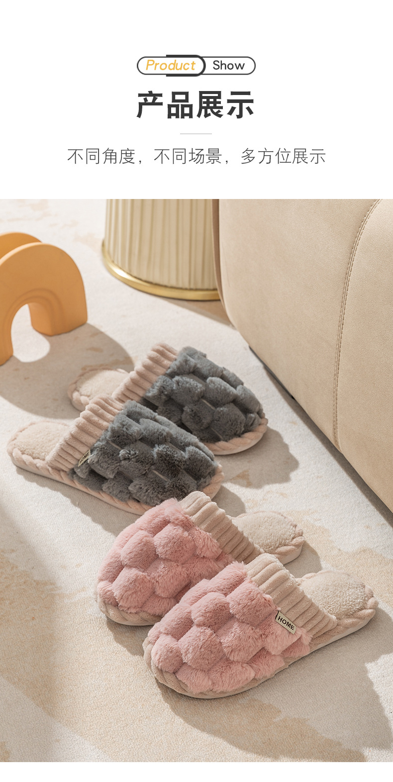 2023秋冬新款棉拖鞋女居家居情侣室内家用防滑暖绒毛毛拖男