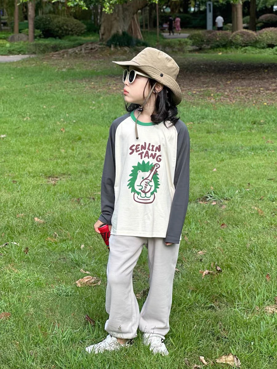 老米优品🎈【品牌授权】舒服柔软肌理感《儿童运动卫裤》啵啵跳 森林棠2024秋季新款儿童运动裤立体肌理百搭休闲裤