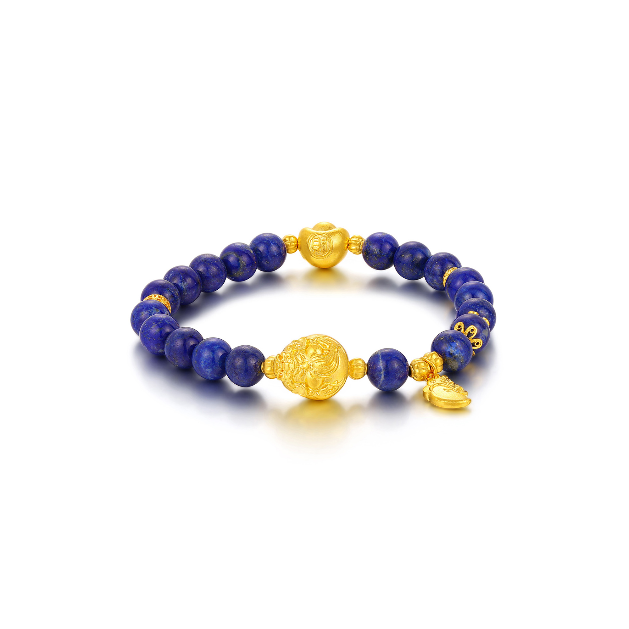 【古法文玩】足金999古法平步青云青金石珠串手链,金重约11g,克重计价,多退少补(Y.)【预售】【金价请咨询客服,克重计价都包含工费【每日金价请咨询客服】