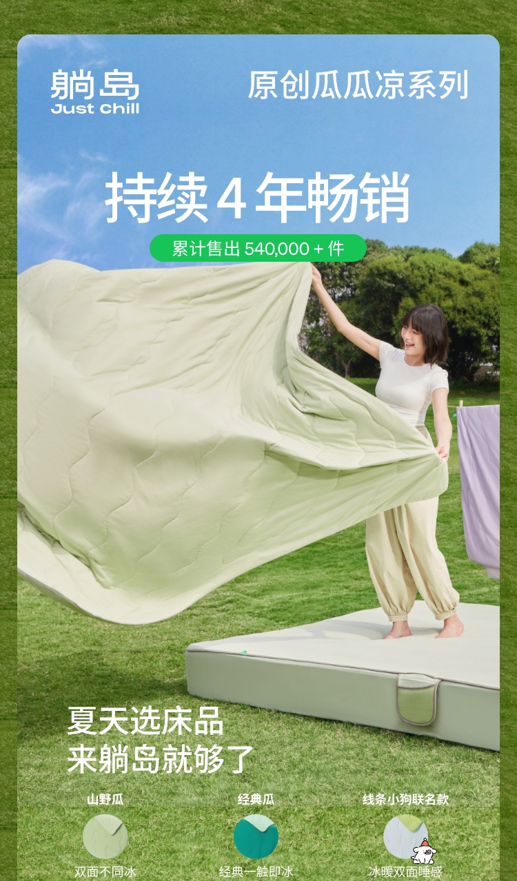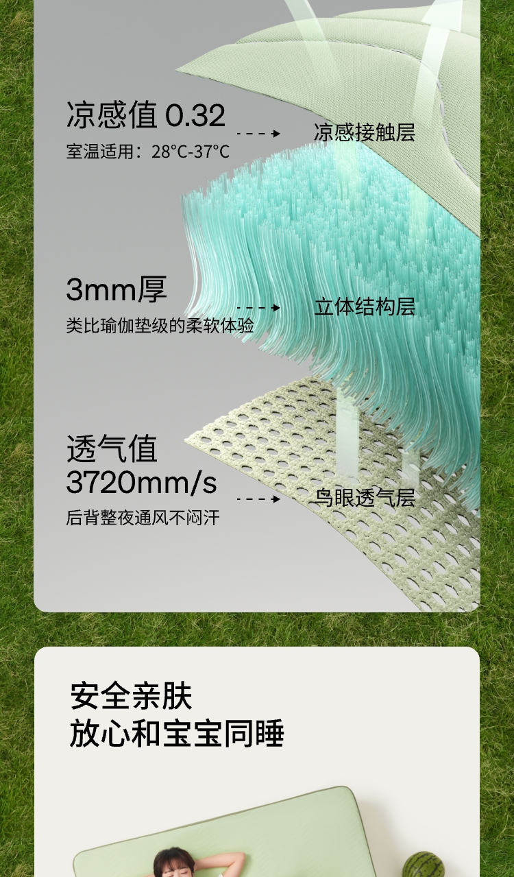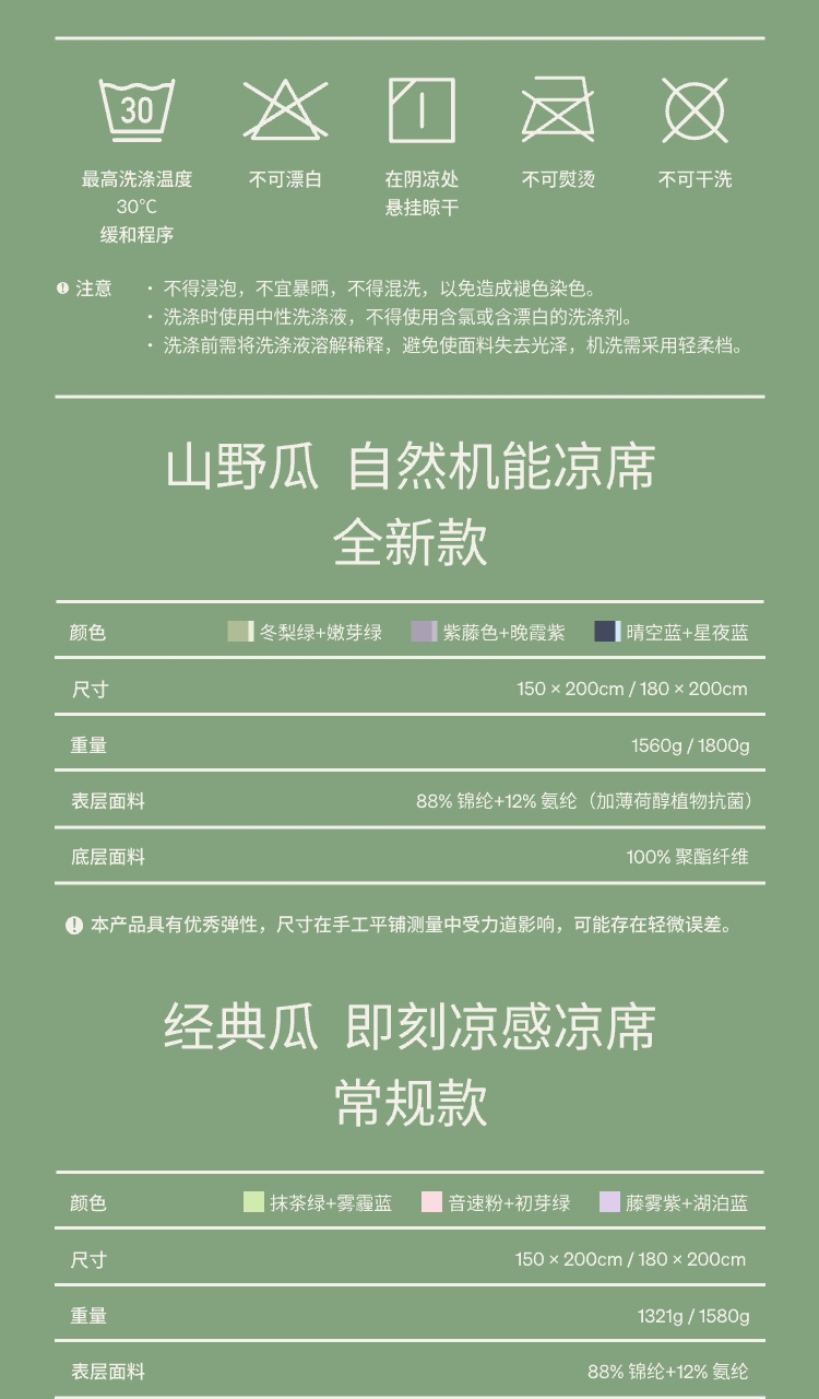 躺岛山野瓜自然机能凉席透气软床笠可折叠机洗夏冰丝席单双人家用