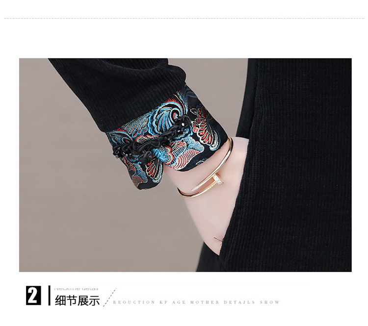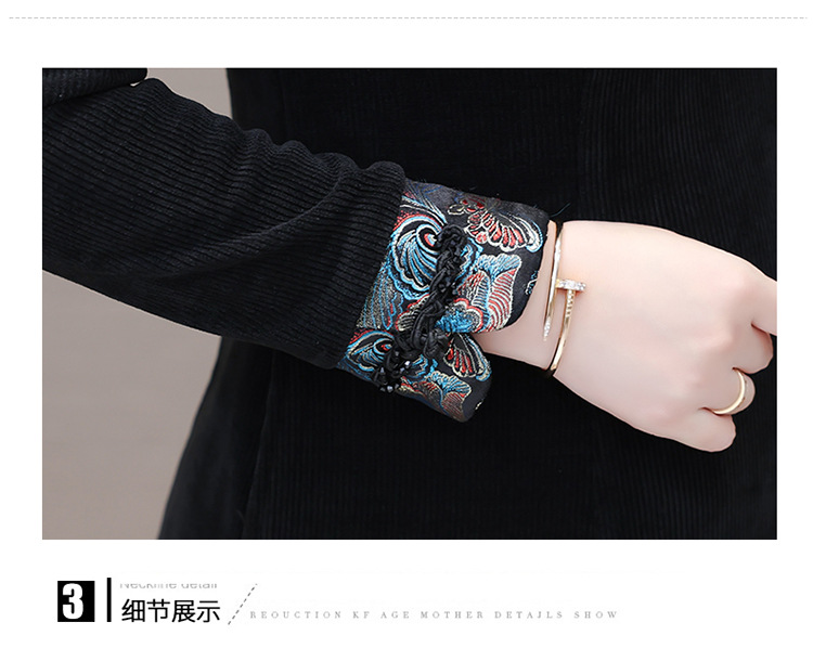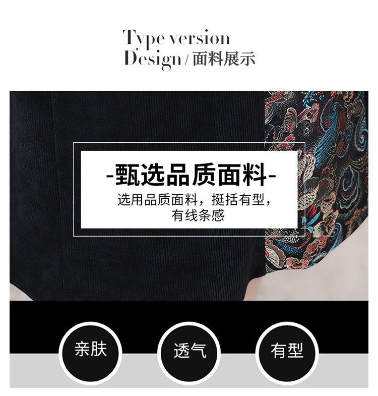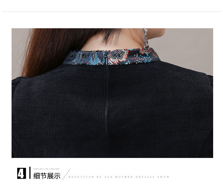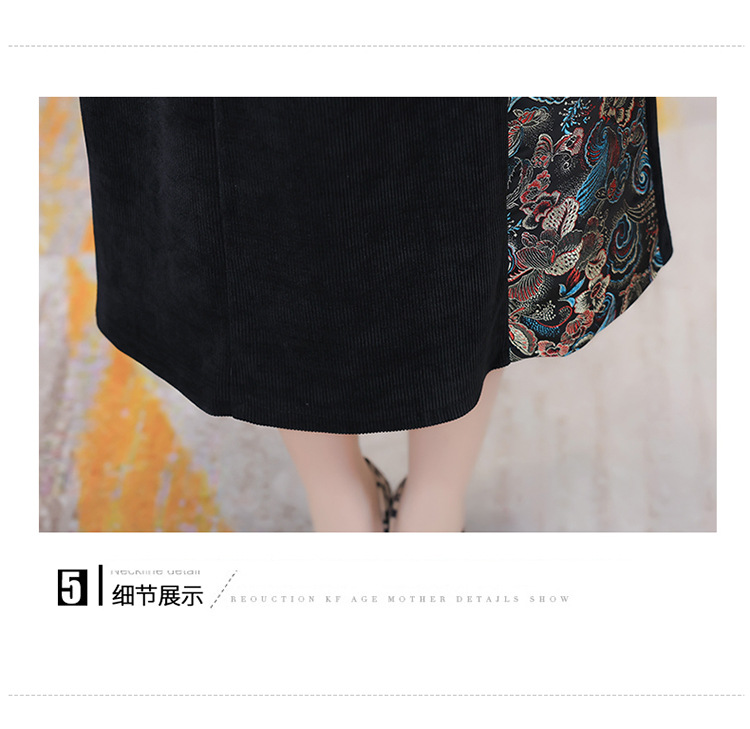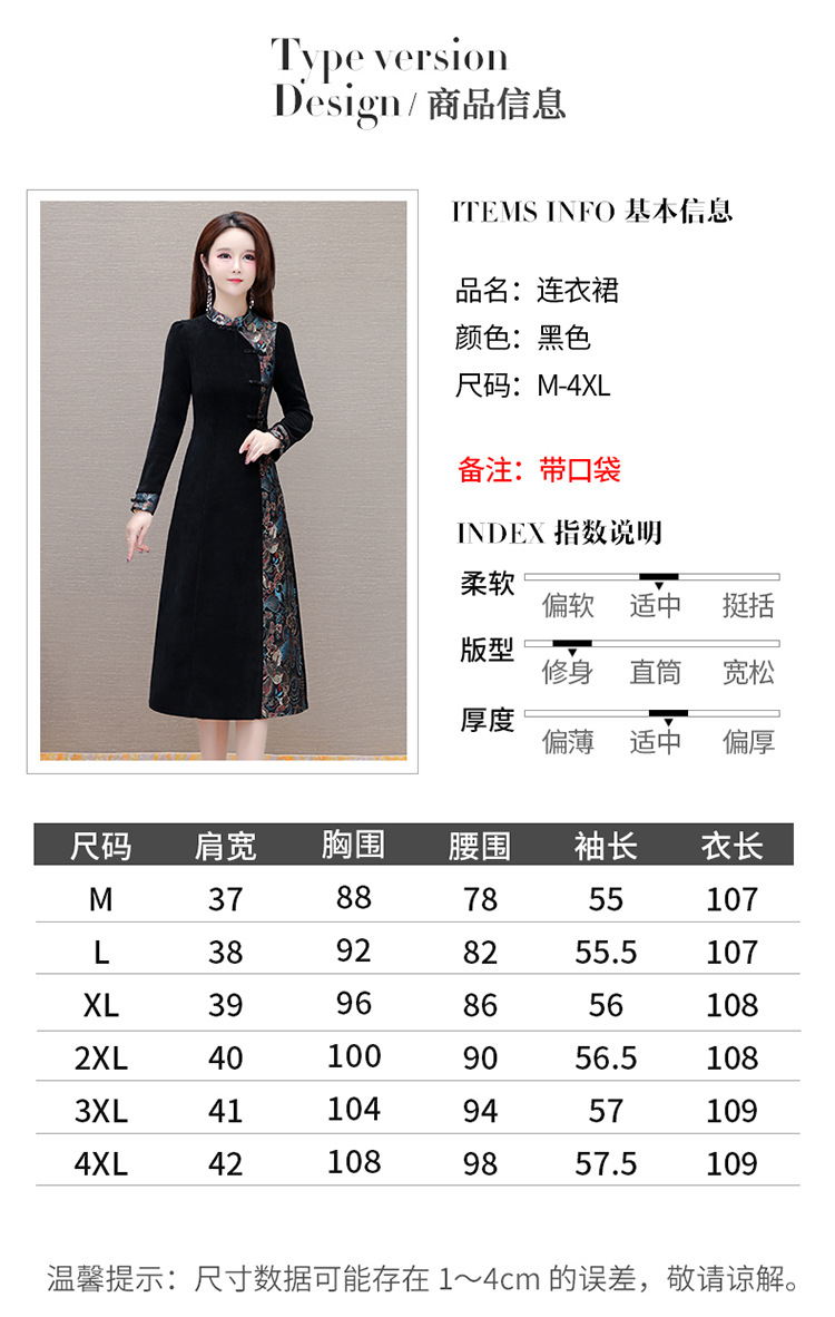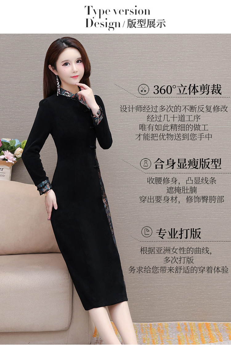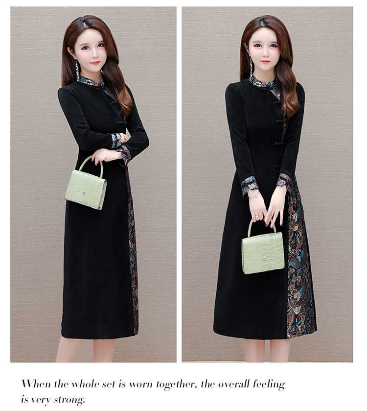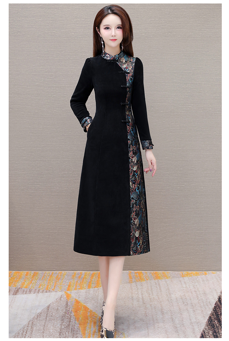 春款中式印花连衣裙圆领长袖洋气改良旗袍裙QYM-XQD-5C2341-L