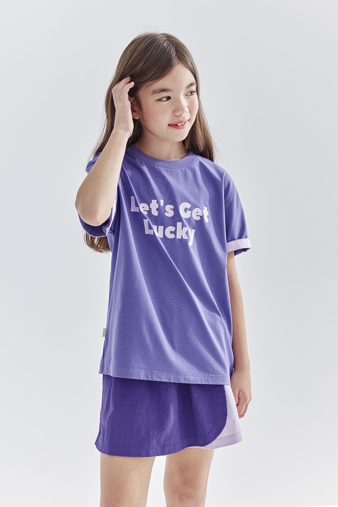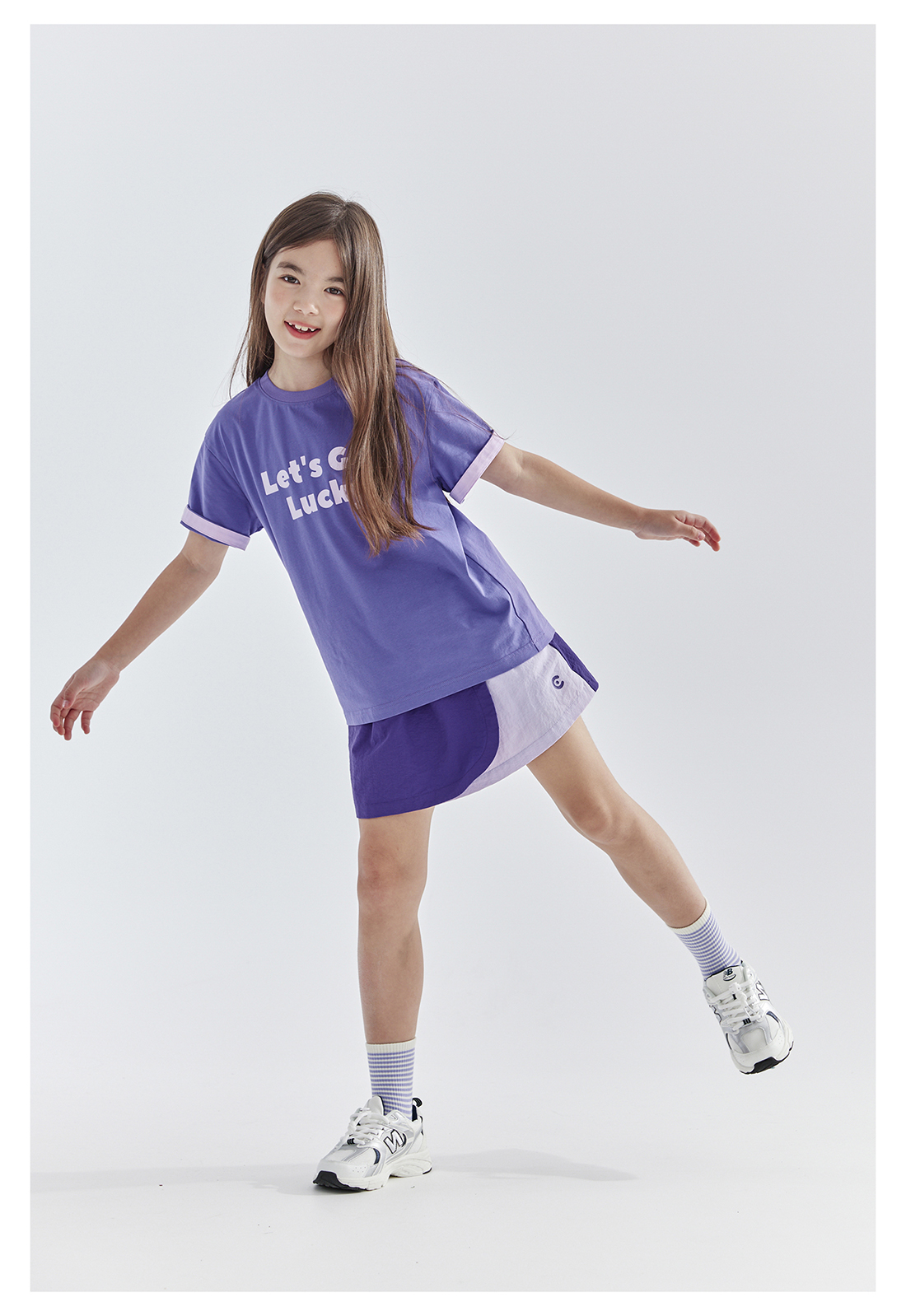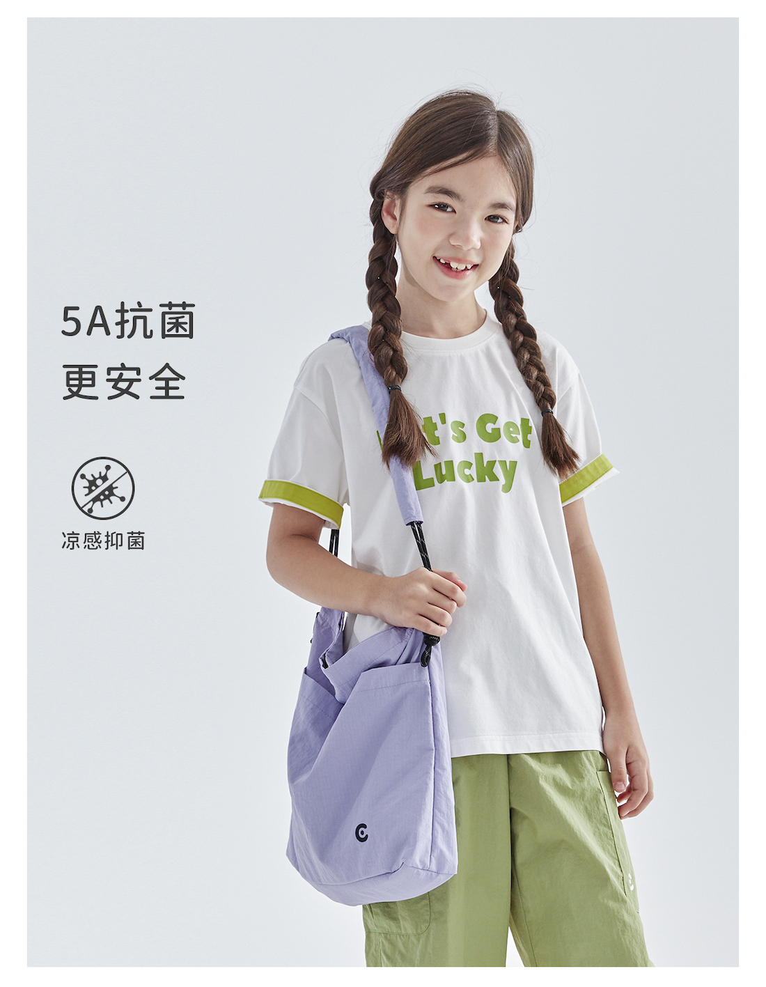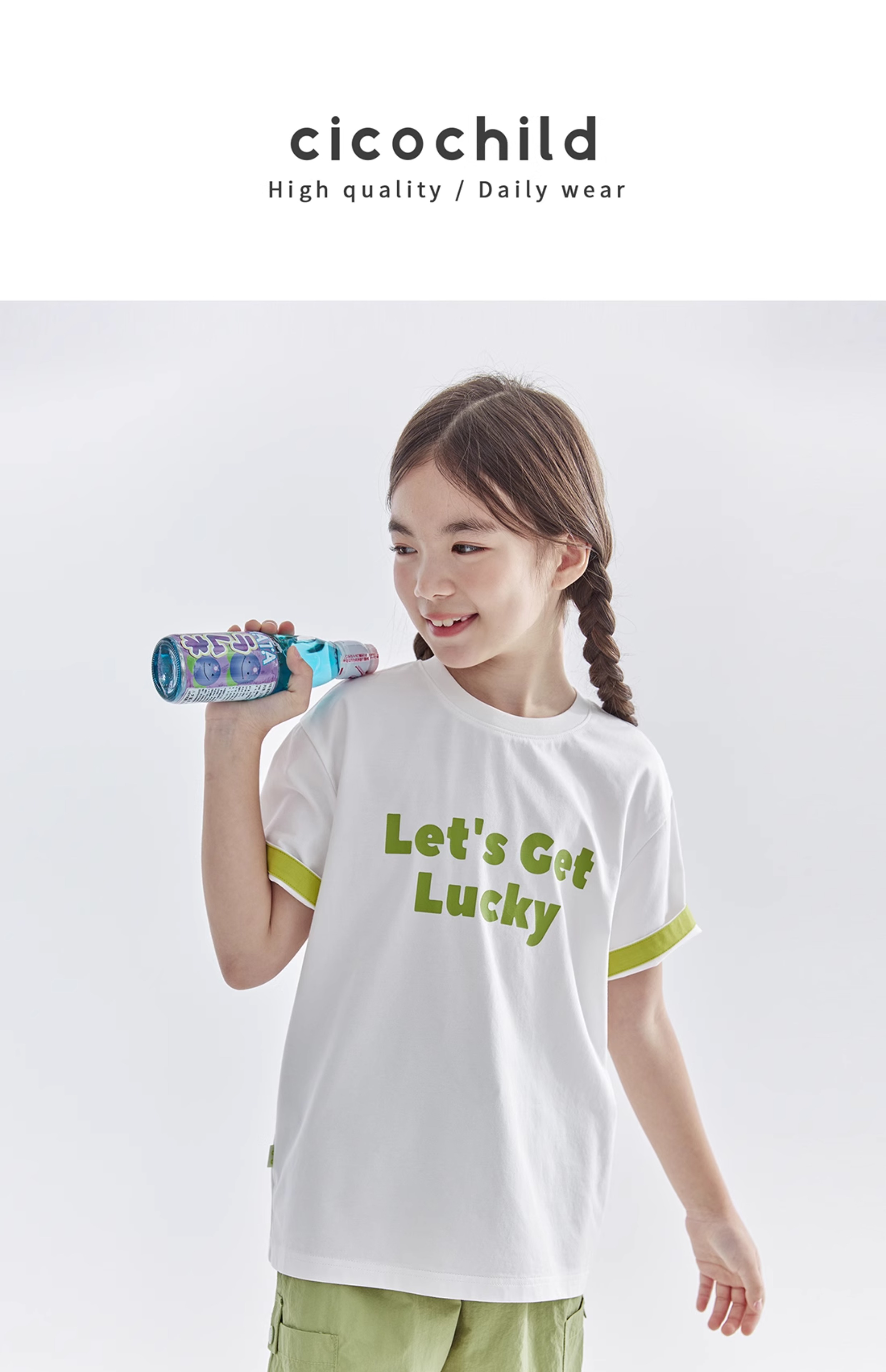 【代发】女童字母印花短袖T恤 cicochild春夏款白搭上衣紫色/白色