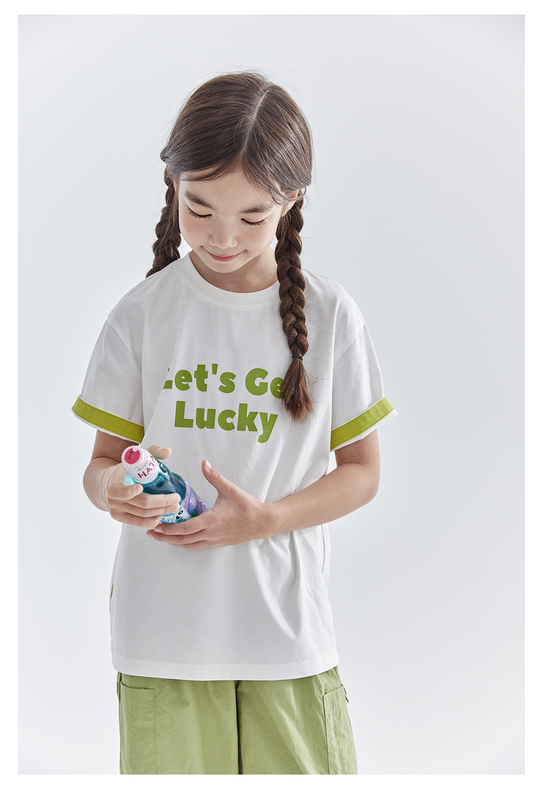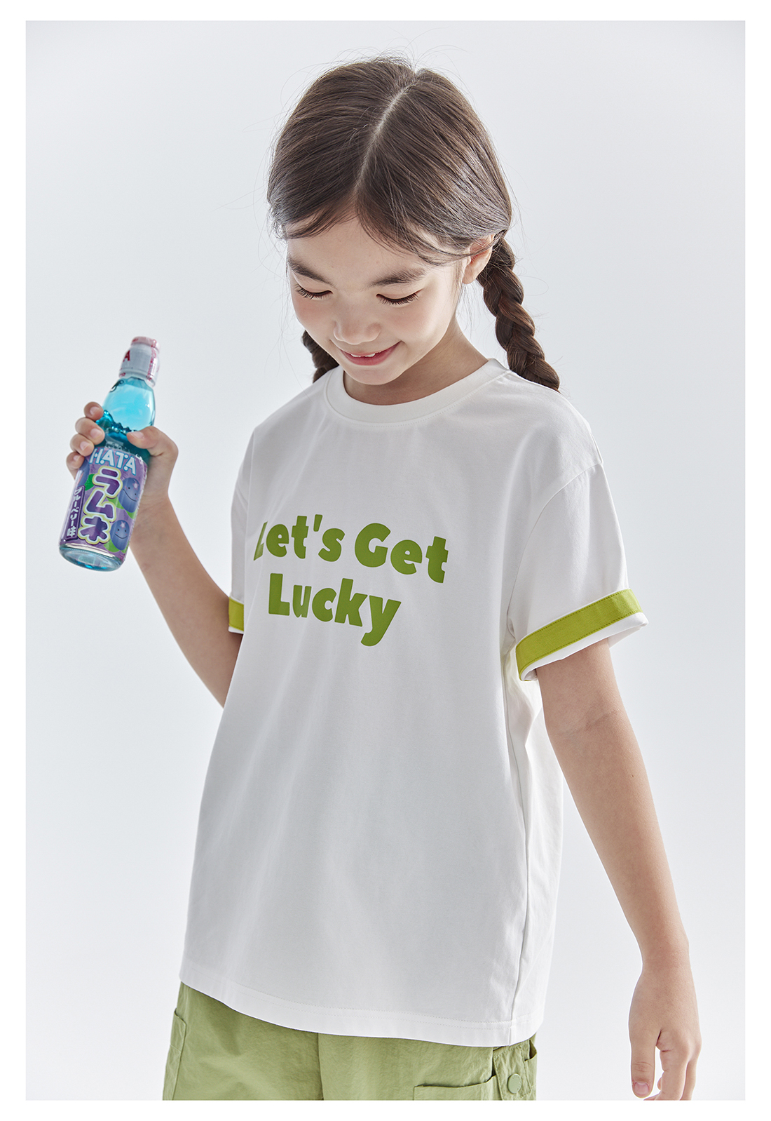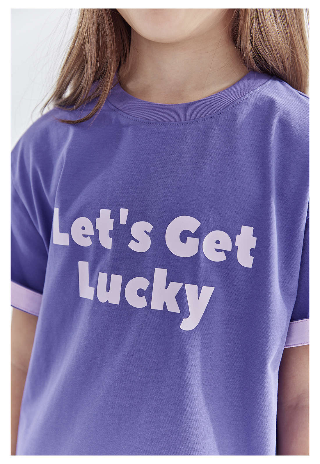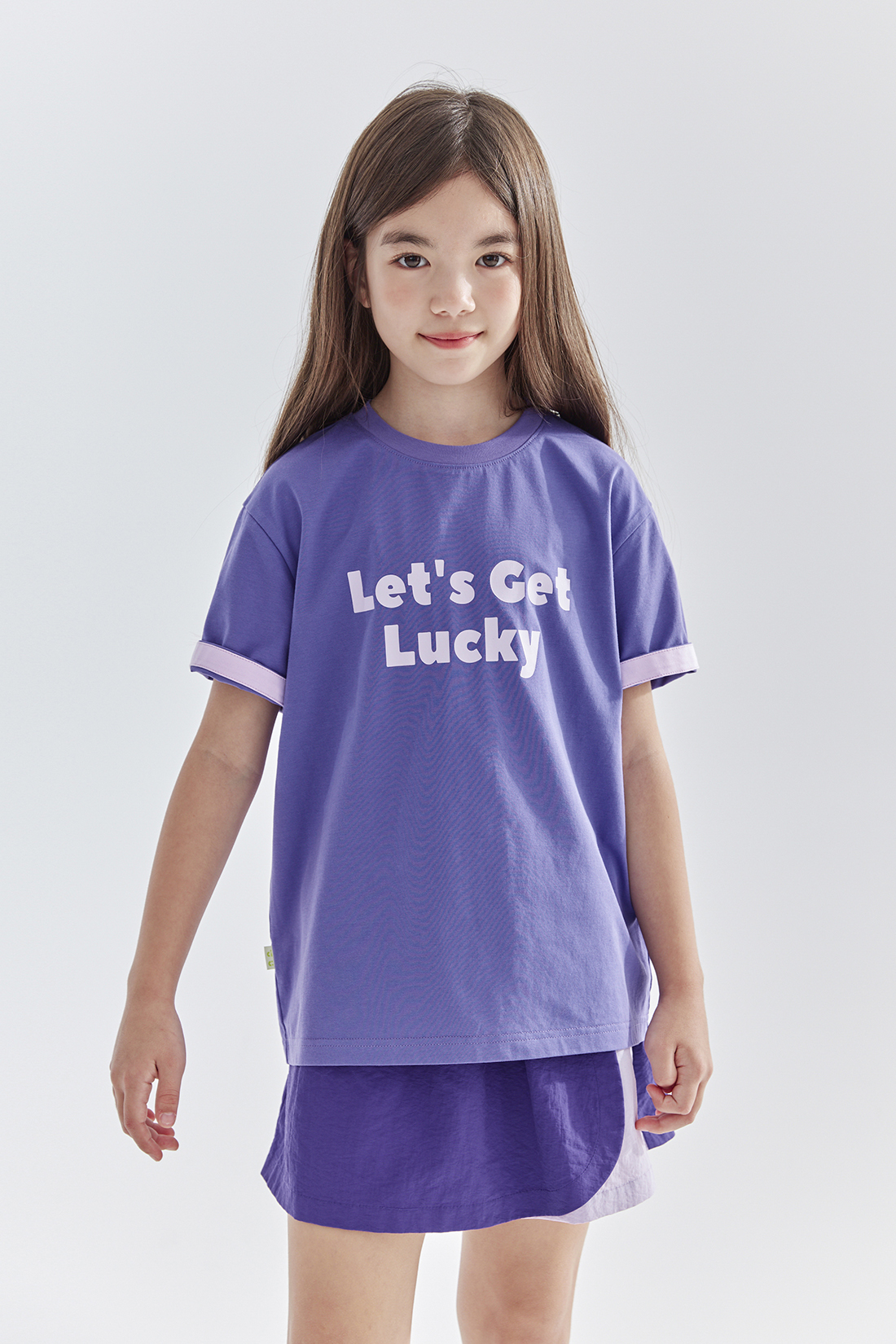 【代发】女童字母印花短袖T恤 cicochild春夏款白搭上衣紫色/白色