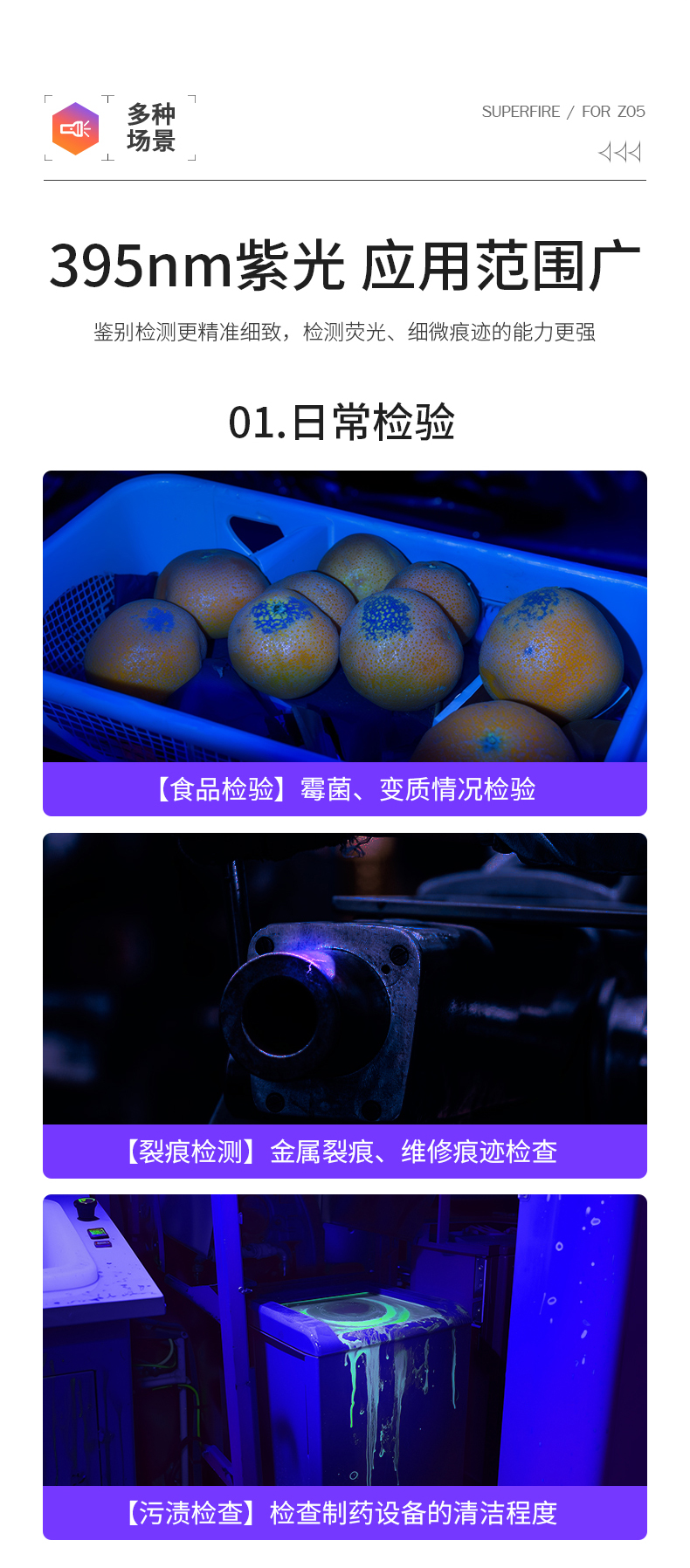 神火Z05紫外线紫光猫藓灯蔬菜荧光剂检测 395nm玉石鉴定验钞笔