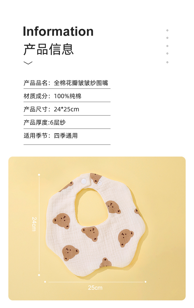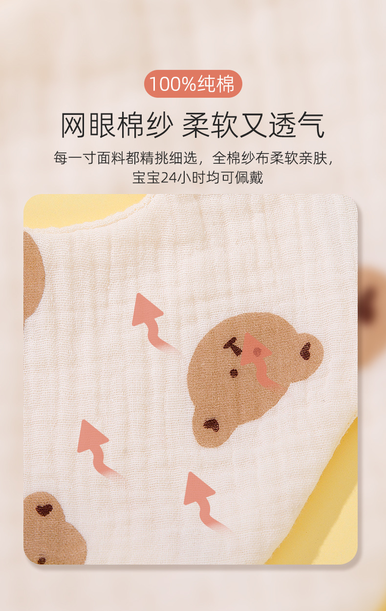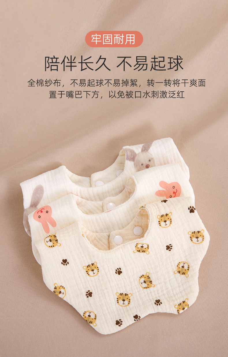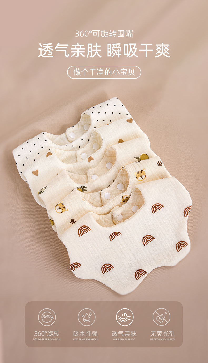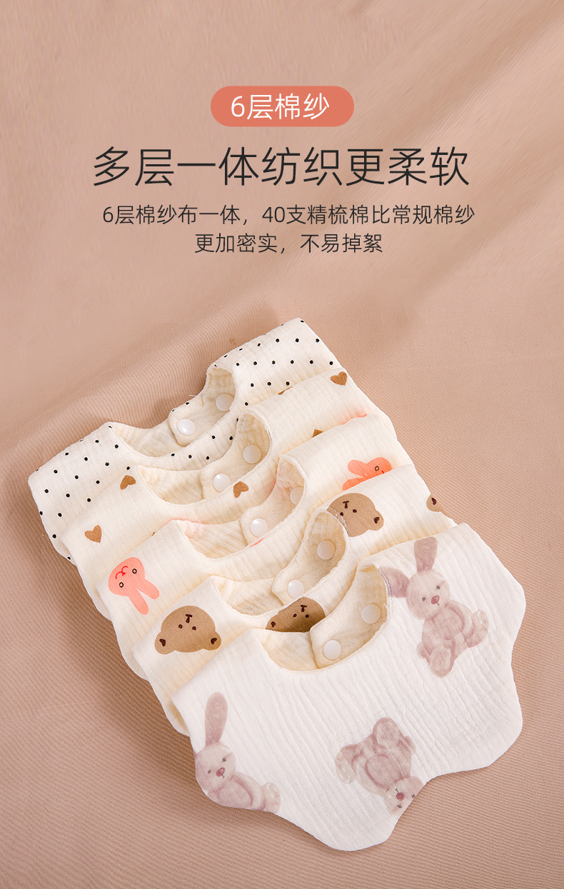乐蓓淘6层纯棉婴儿口水巾小孩纱布围嘴新生儿兜儿童宝宝薄款防水