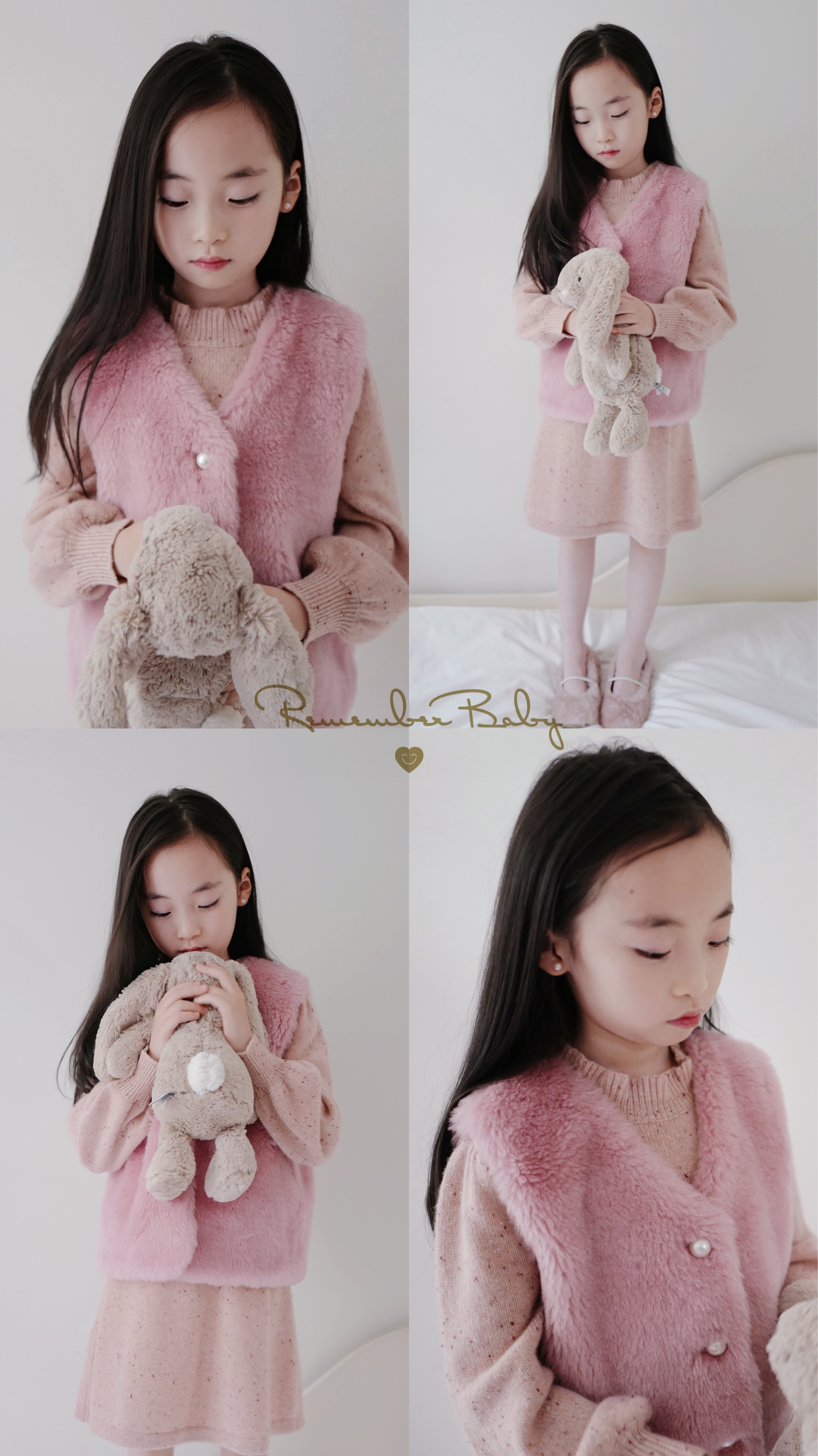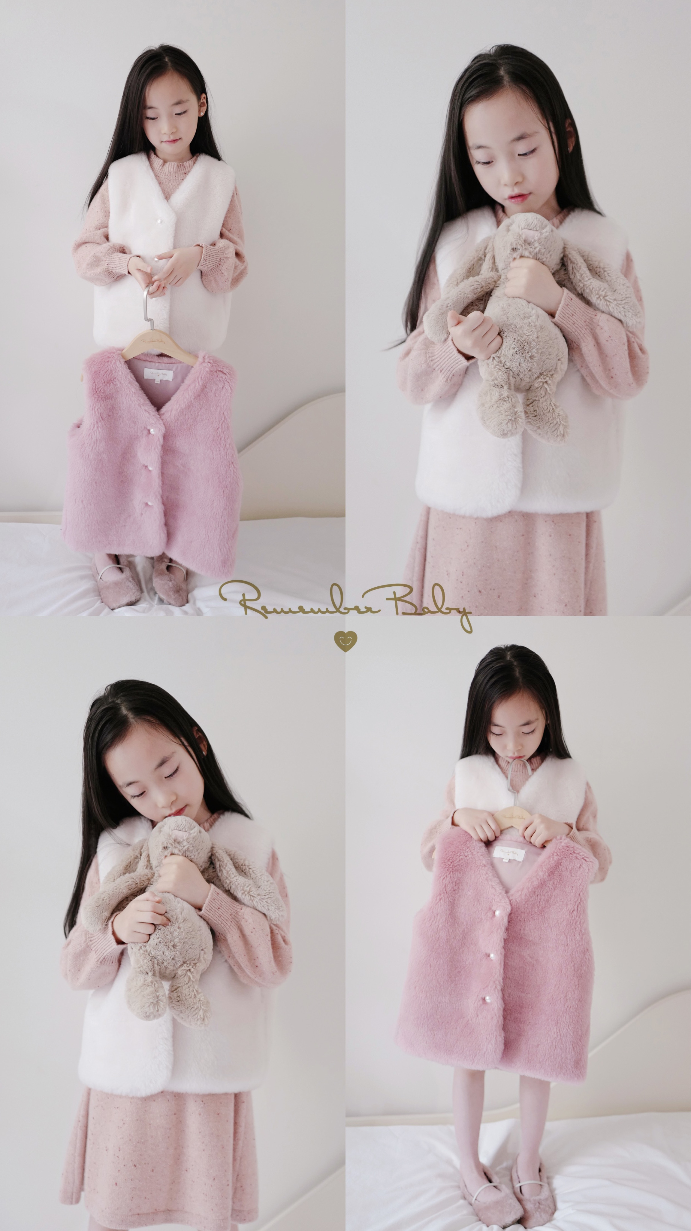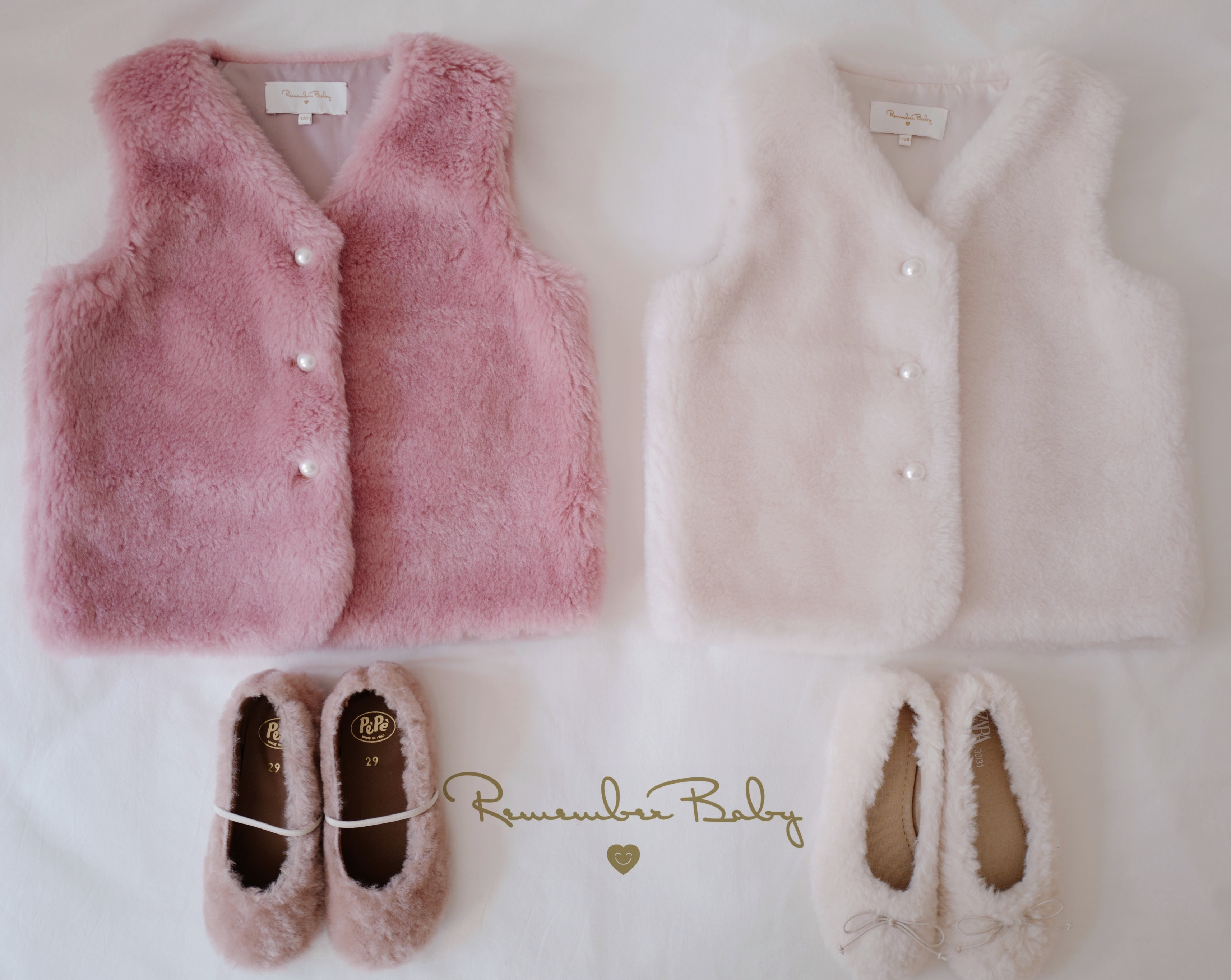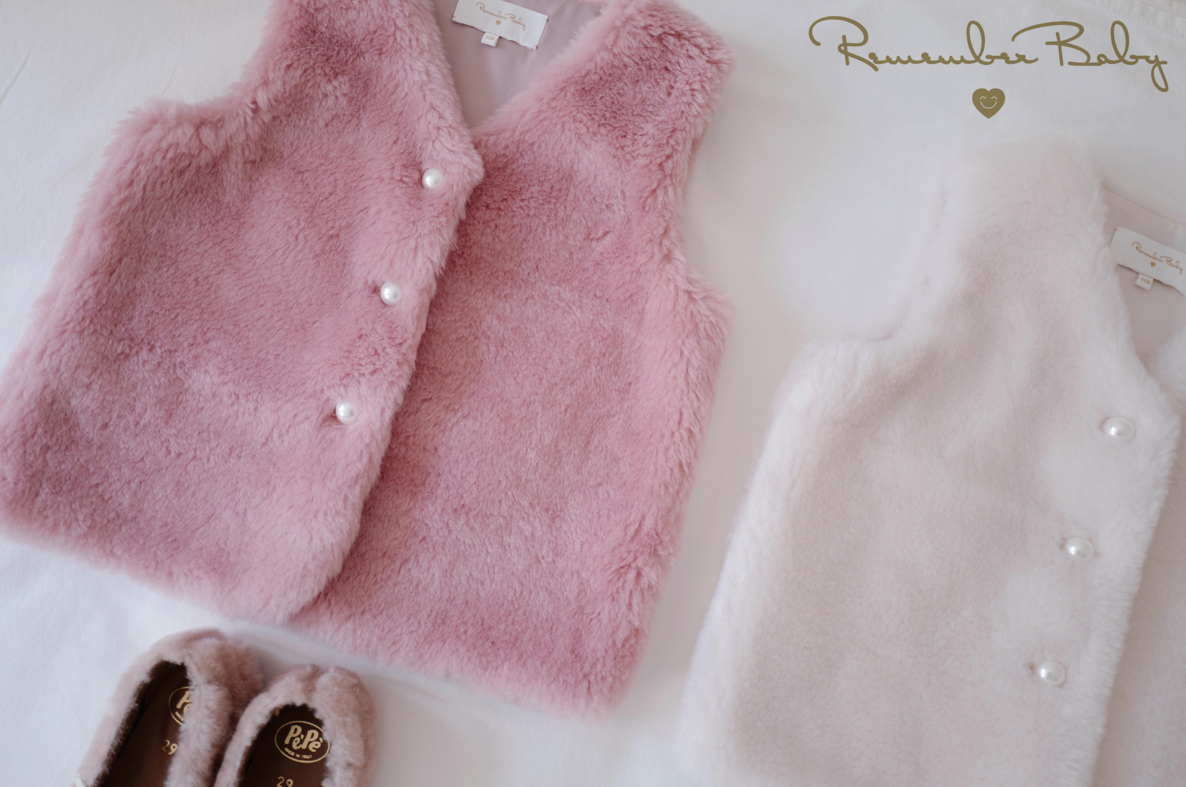 现货 / CUDDLE | 亲子款 意大利进口面料制 100%羊毛 皮草背心 芭蕾粉 / 月光白